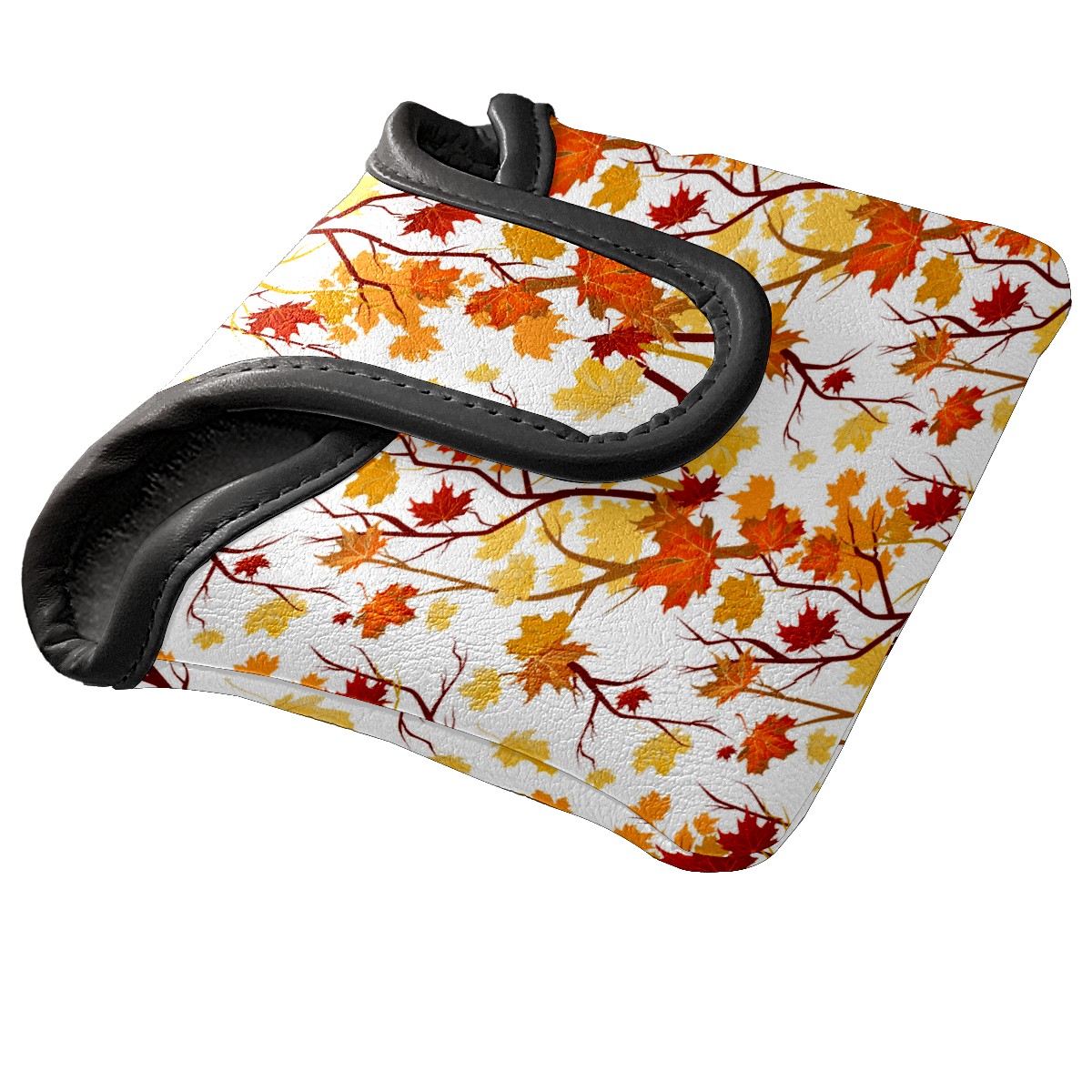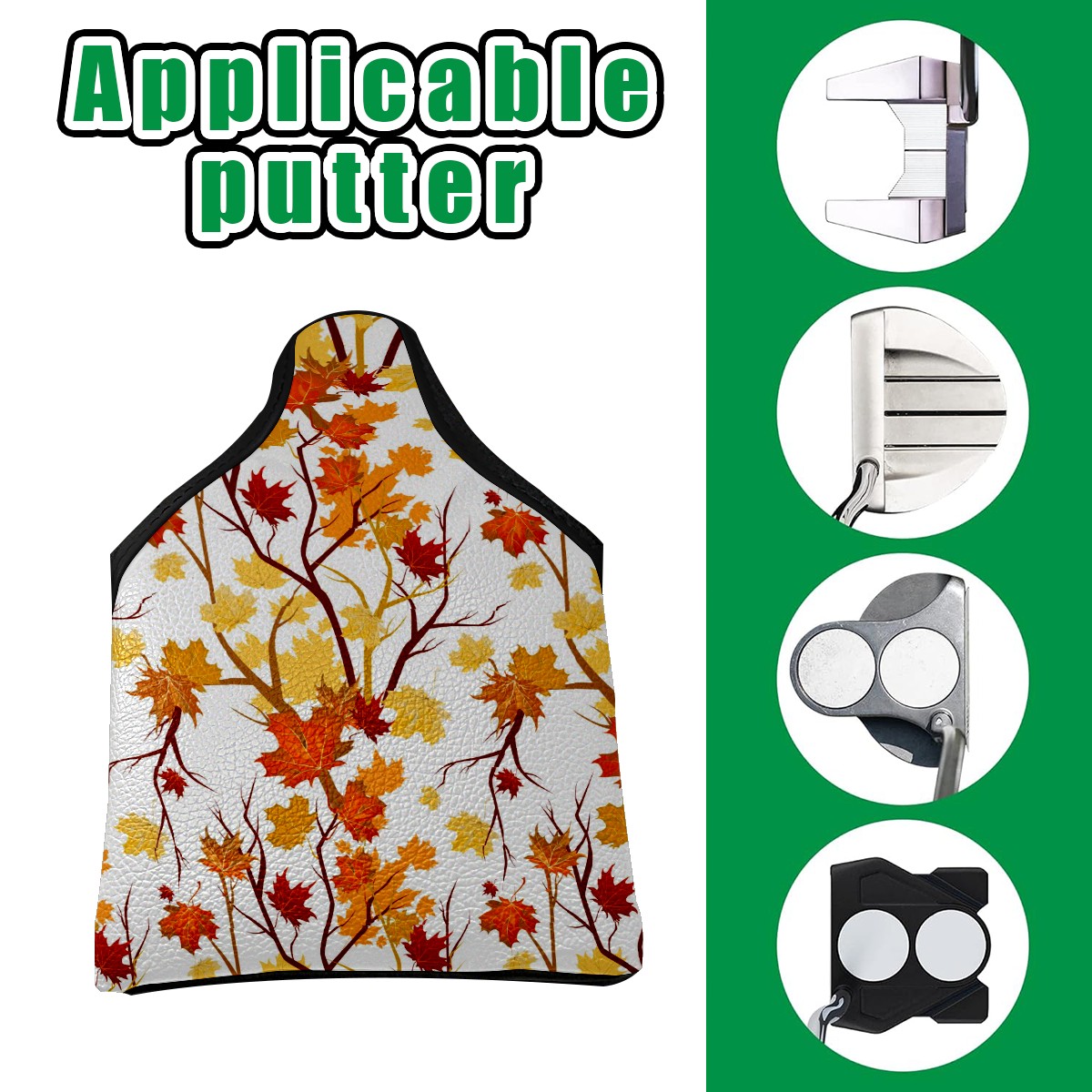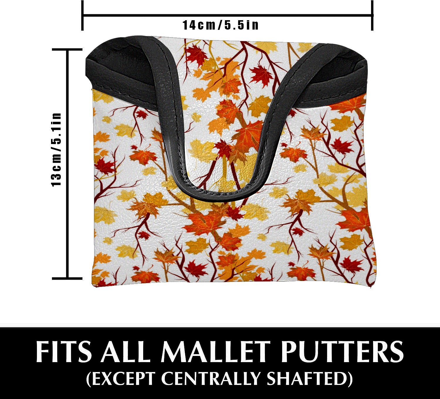 Mallet Putter Cover, PU Leather and Waterproof Golf Putter Cover, Golf Club Protective Case Fits Most Mallet Putters, Easily Slips on and Secures Autumn Maple Leaf