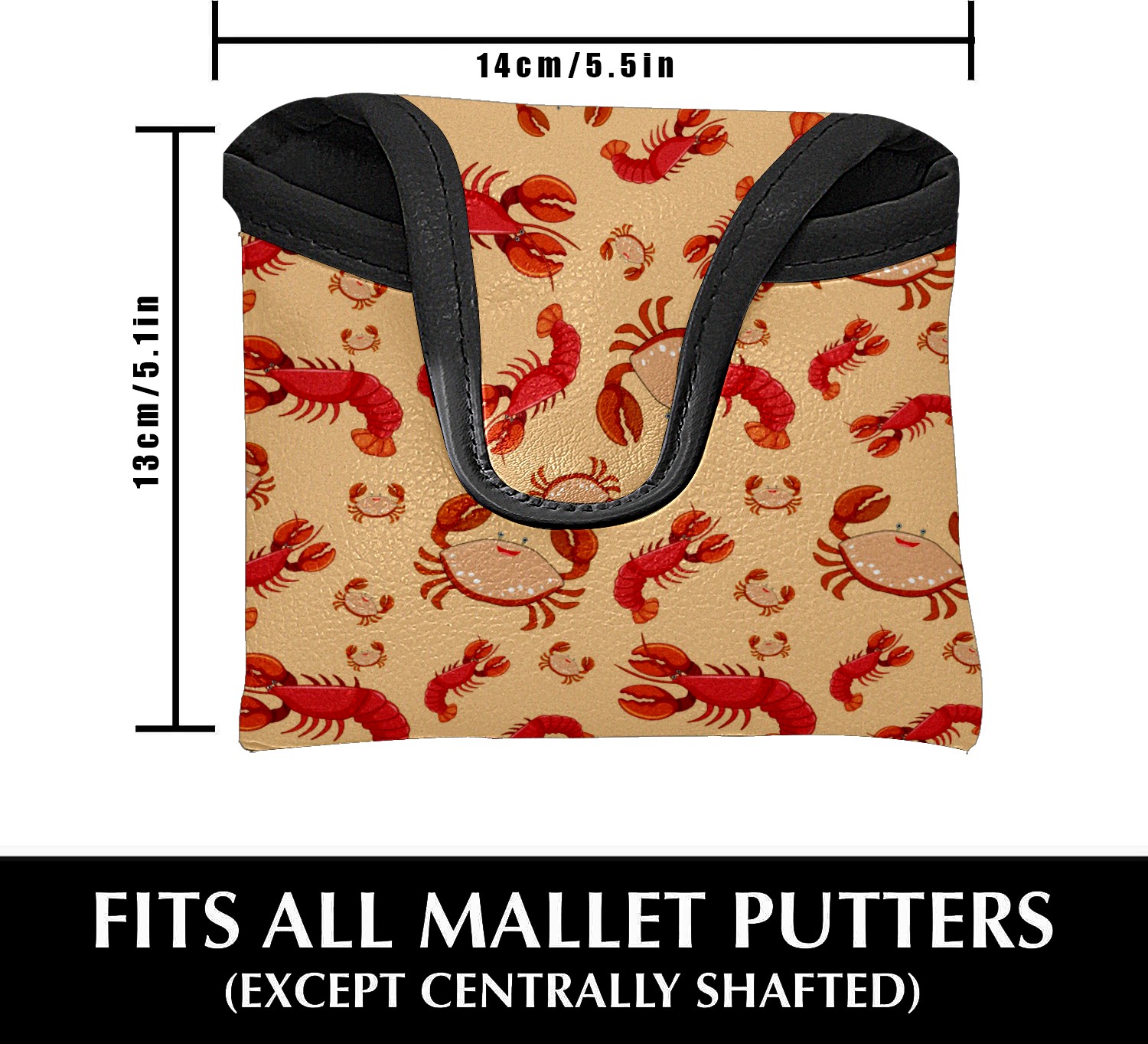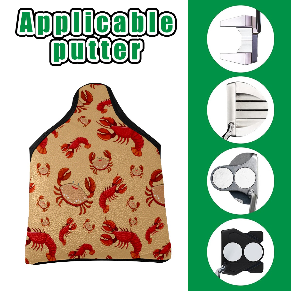 Mallet Putter Cover, PU Leather and Waterproof Golf Putter Cover, Golf Club Protective Case Fits Most Mallet Putters, Easily Slips on and Secures Seafood Lobster Crayfish Crab Pattern