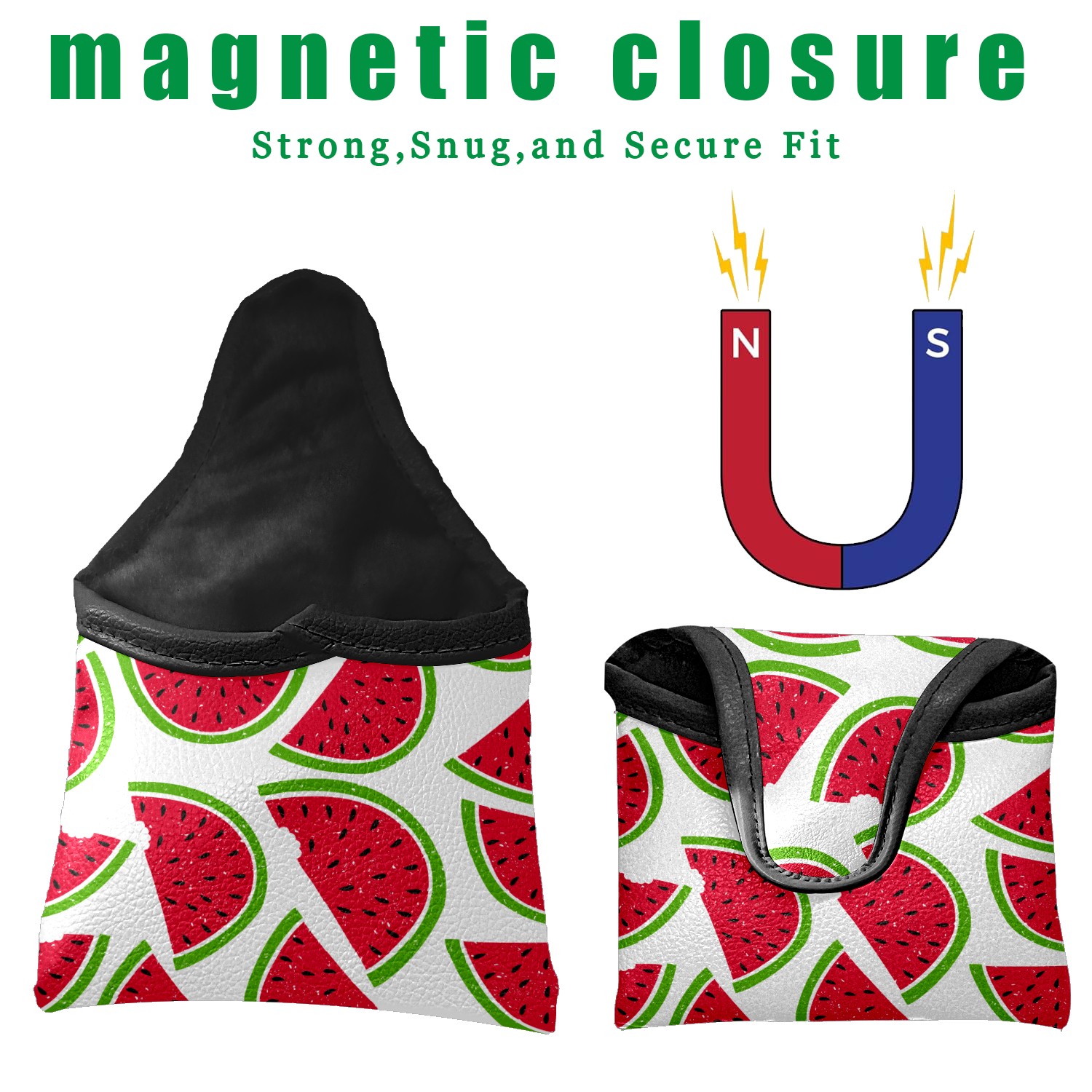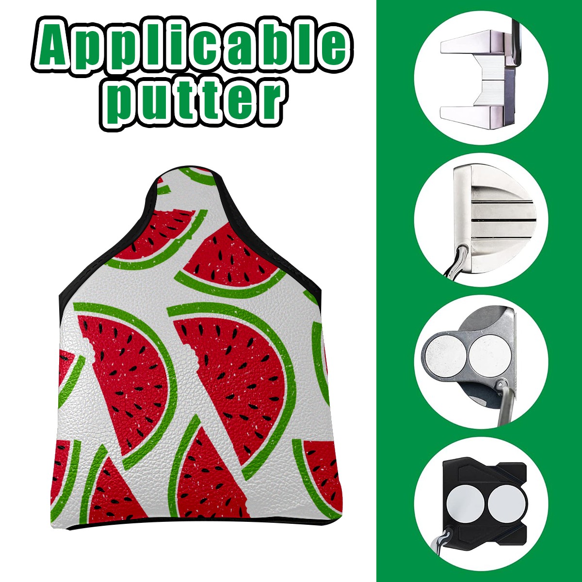Mallet Putter Cover, PU Leather and Waterproof Golf Putter Cover, Golf Club Protective Case Fits Most Mallet Putters, Easily Slips on and Secures 西瓜 かわいい