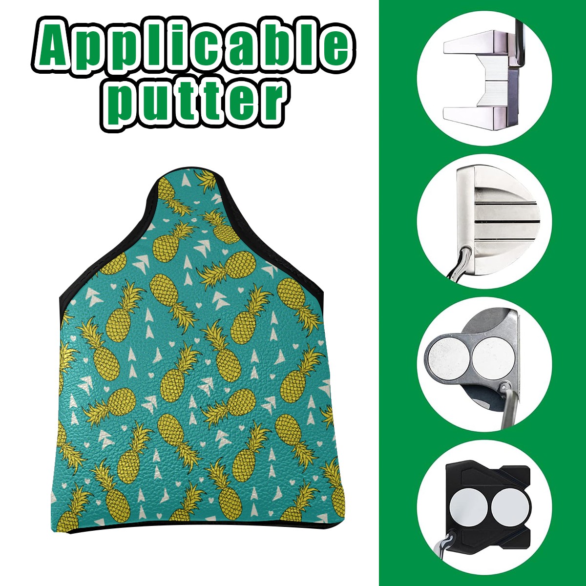 Mallet Putter Cover, PU Leather and Waterproof Golf Putter Cover, Golf Club Protective Case Fits Most Mallet Putters, Easily Slips on and Secures Fruit Pineapples Pattern
