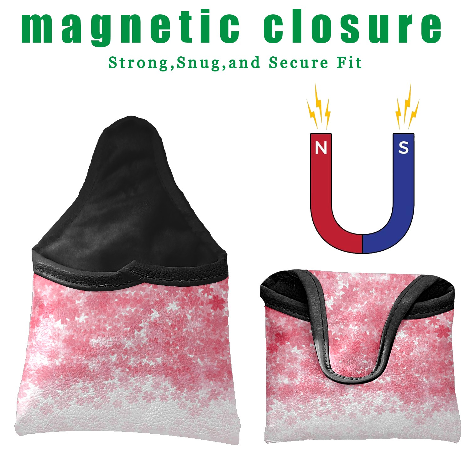 Mallet Putter Cover, PU Leather and Waterproof Golf Putter Cover, Golf Club Protective Case Fits Most Mallet Putters, Easily Slips on and Secures ピンク 花びら おしゃれ
