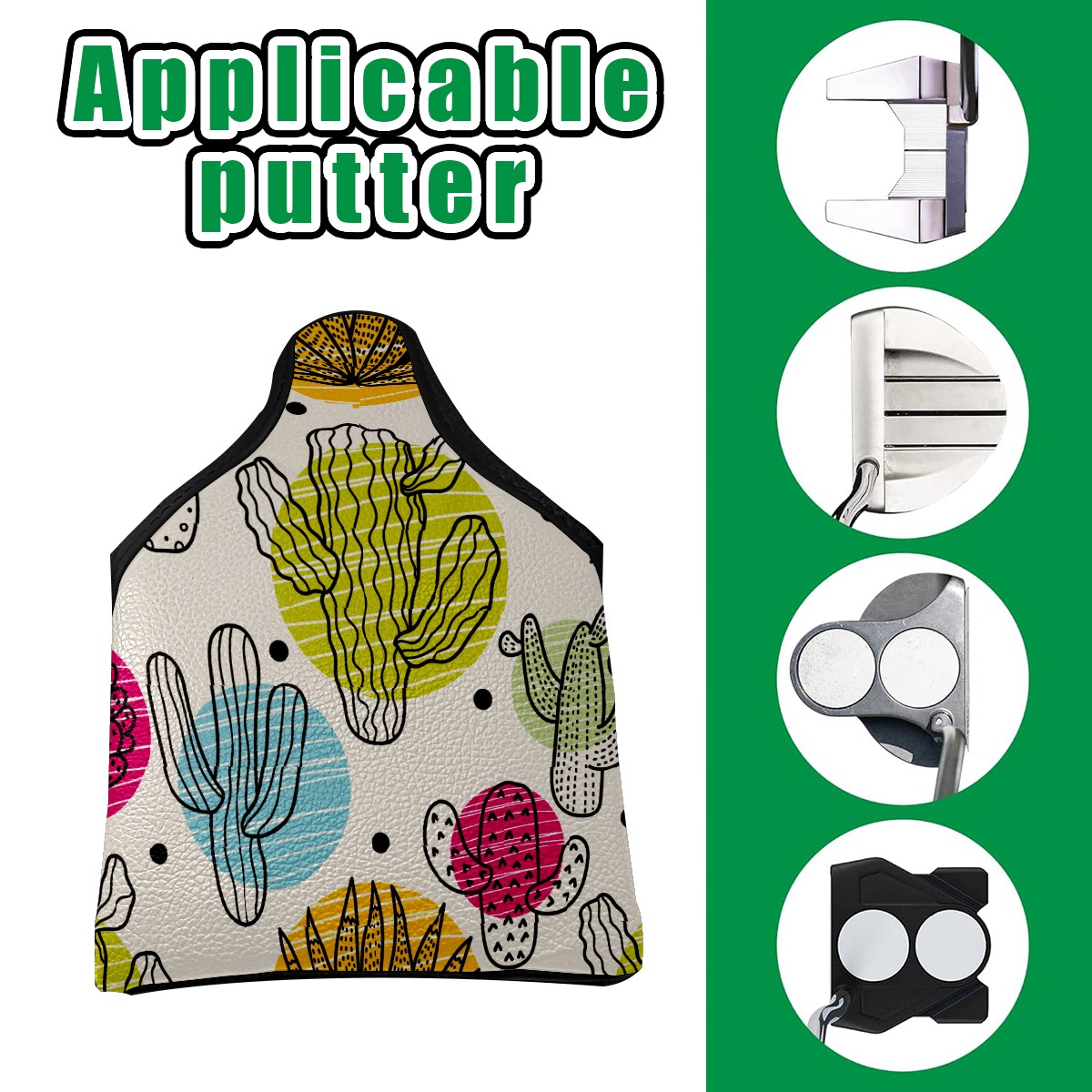Mallet Putter Cover, PU Leather and Waterproof Golf Putter Cover, Golf Club Protective Case Fits Most Mallet Putters, Easily Slips on and Secures サボテン カラー かわいい