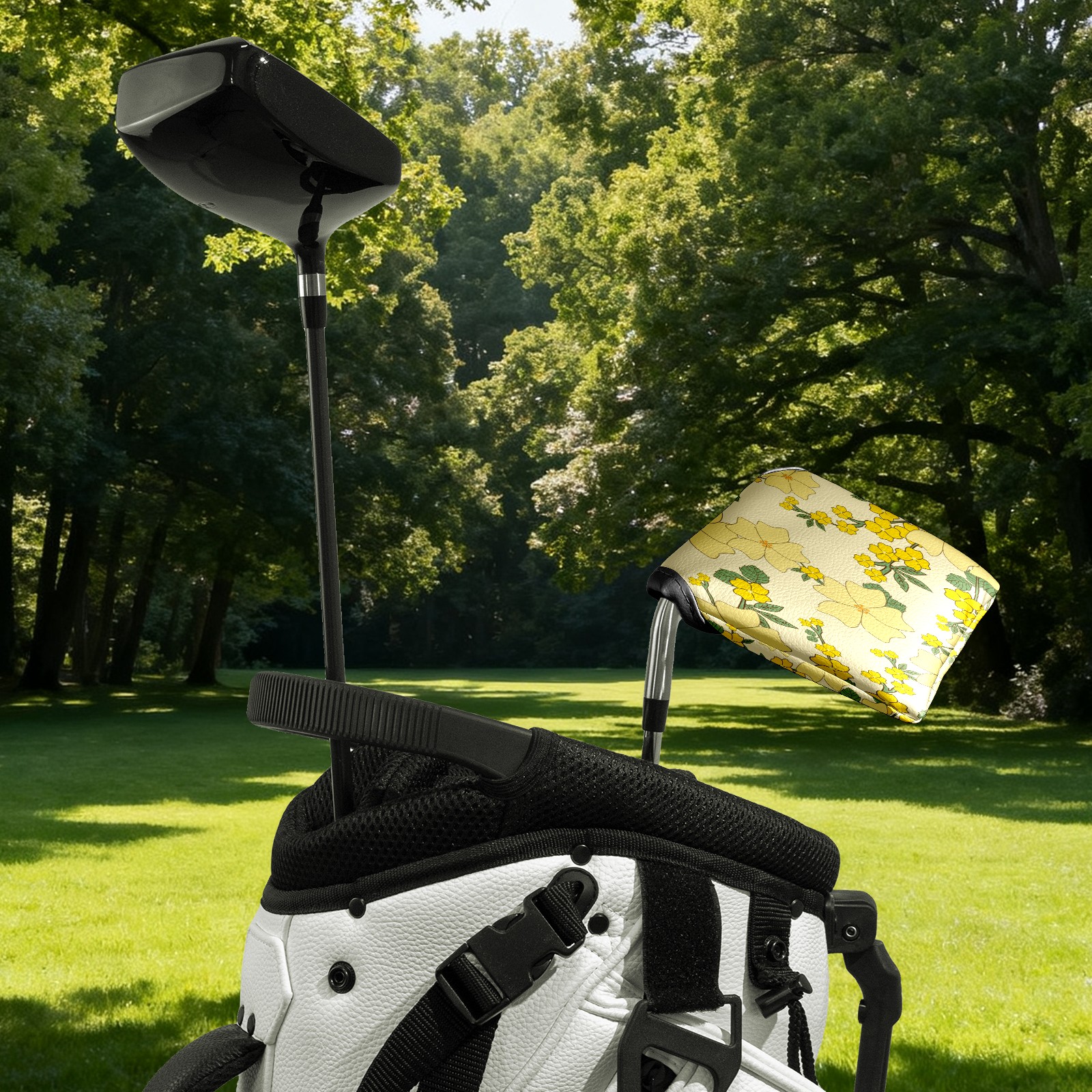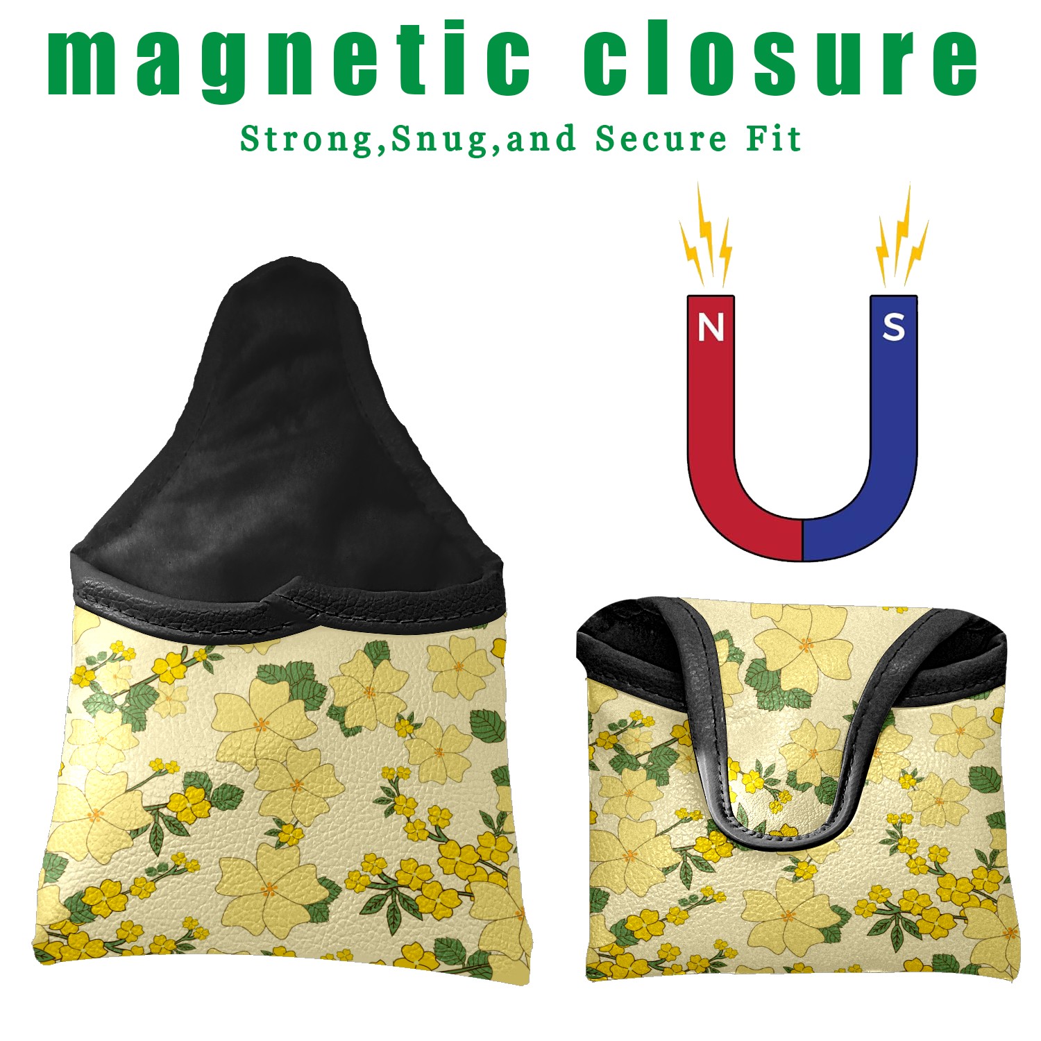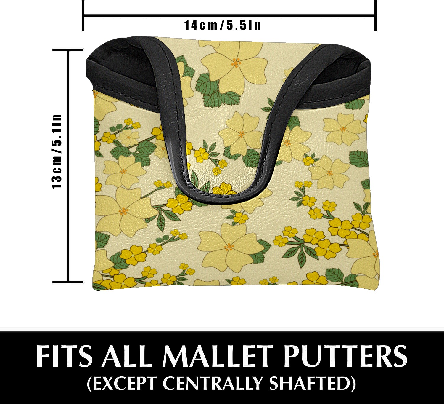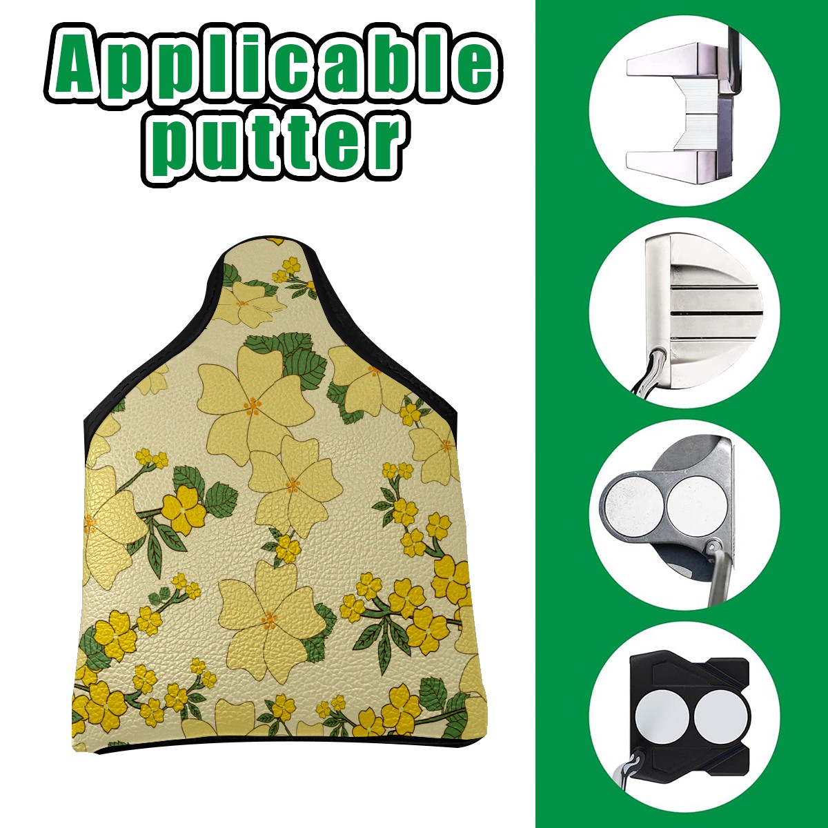 Mallet Putter Cover, PU Leather and Waterproof Golf Putter Cover, Golf Club Protective Case Fits Most Mallet Putters, Easily Slips on and Secures イエロー 花 かわいい