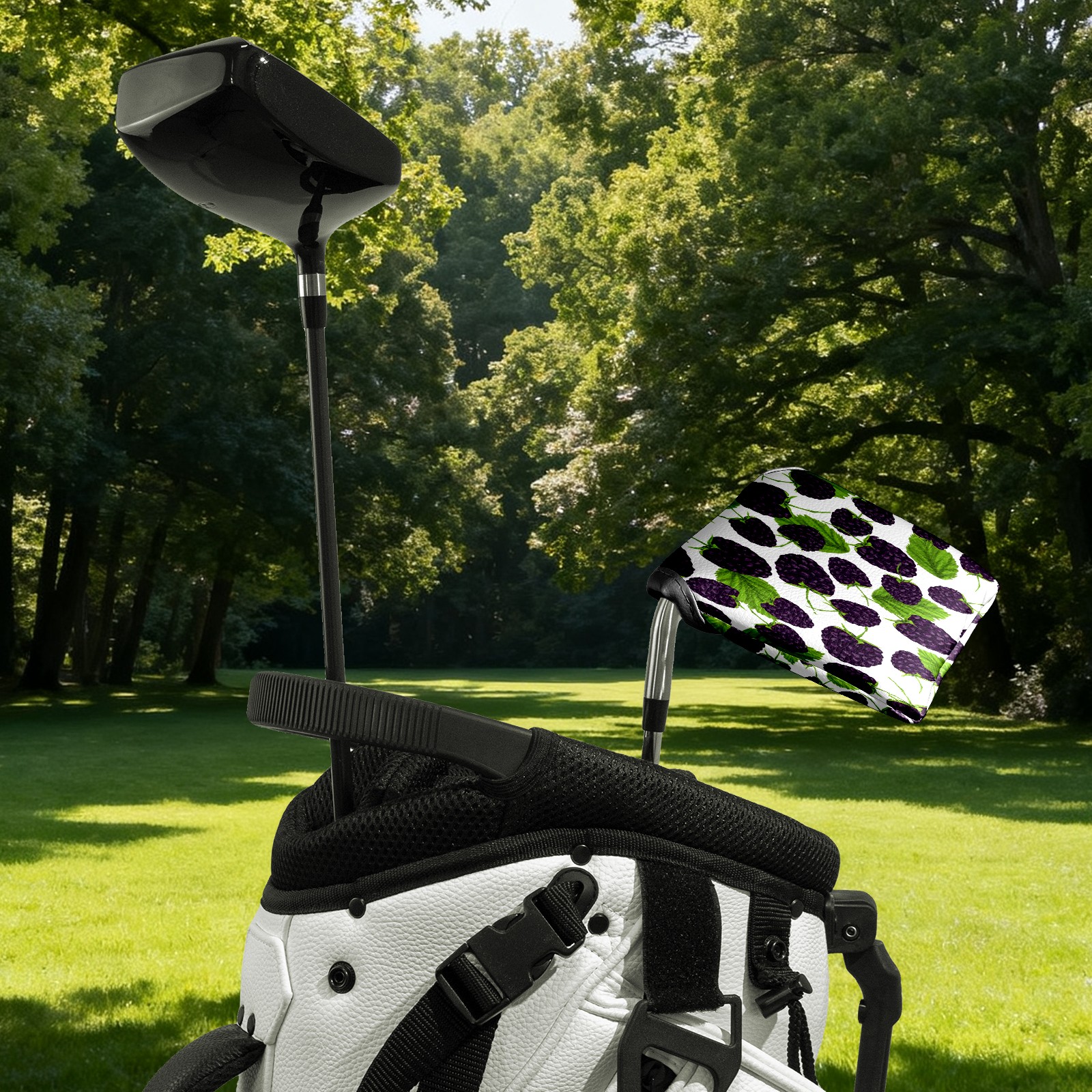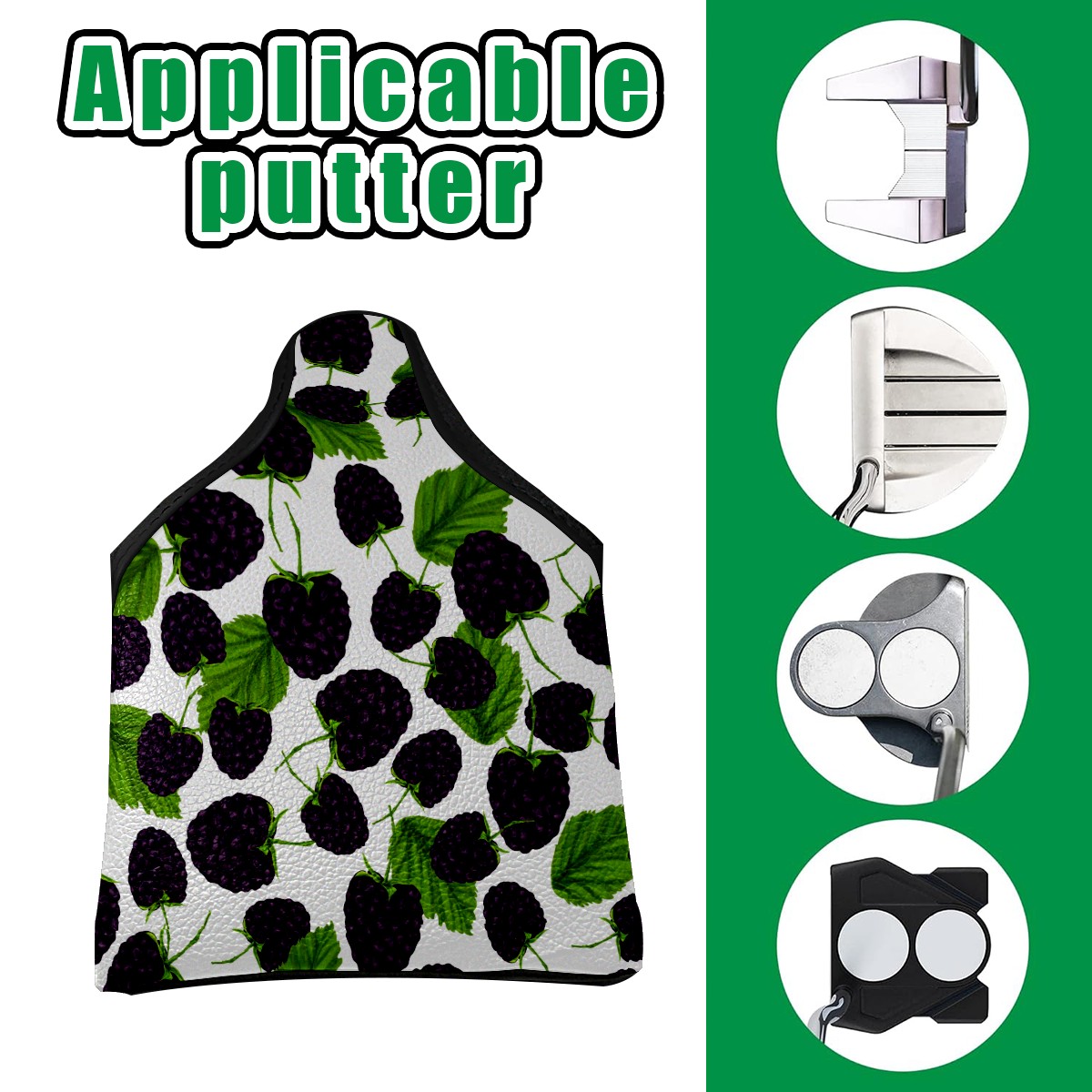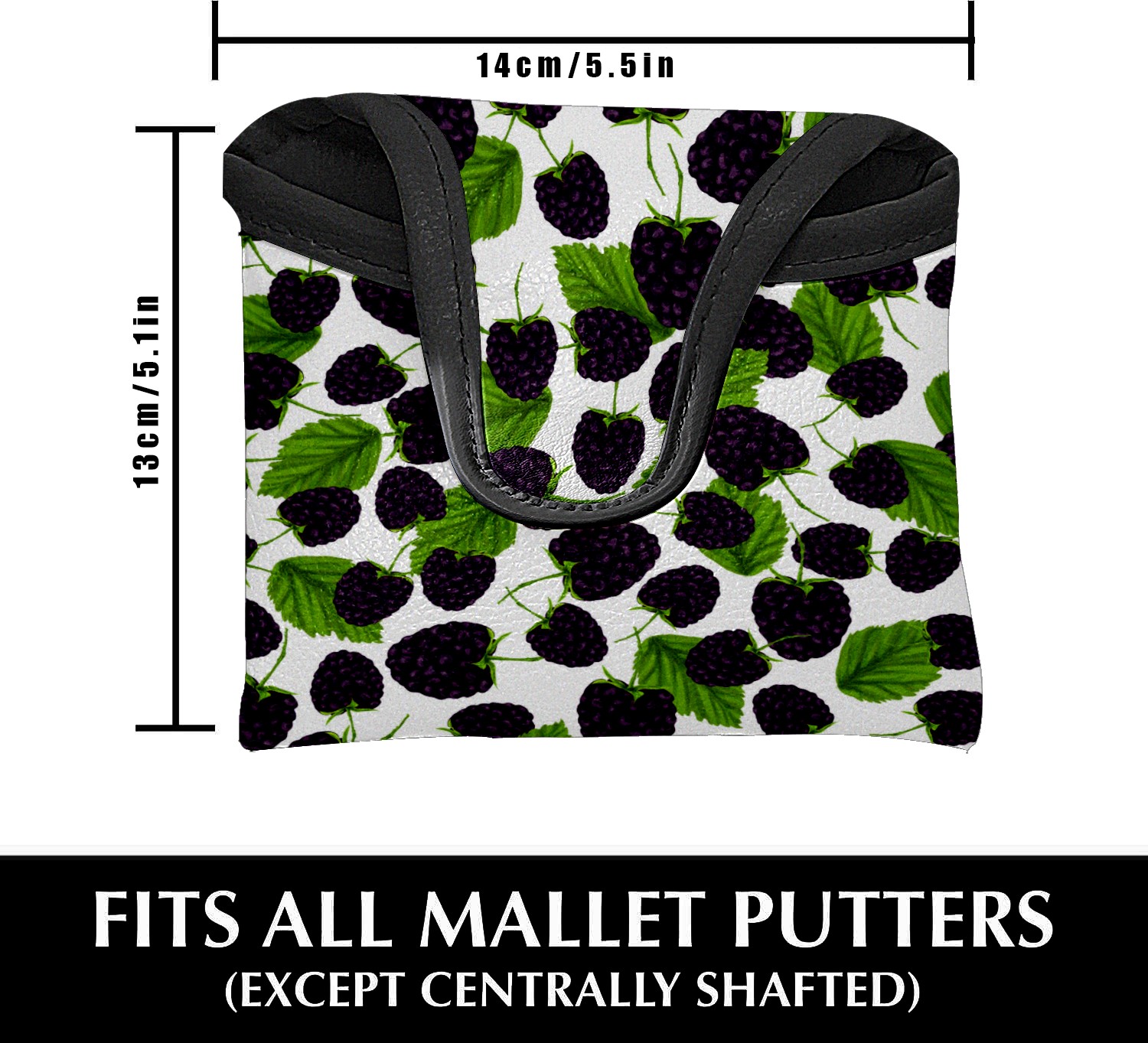 Mallet Putter Cover, PU Leather and Waterproof Golf Putter Cover, Golf Club Protective Case Fits Most Mallet Putters, Easily Slips on and Secures Blackberry Seamless-Pattern