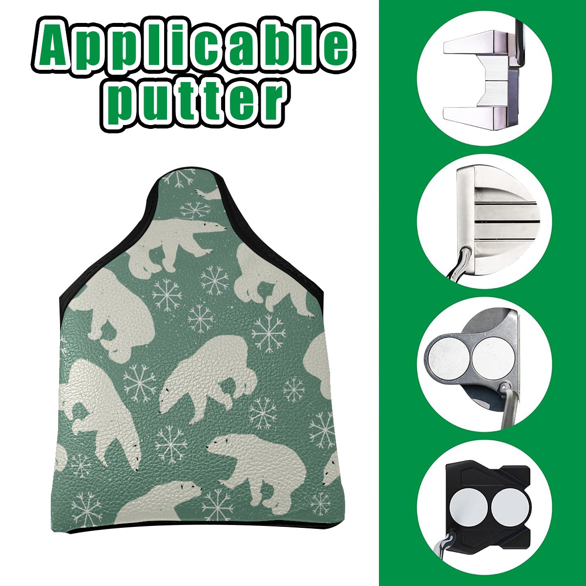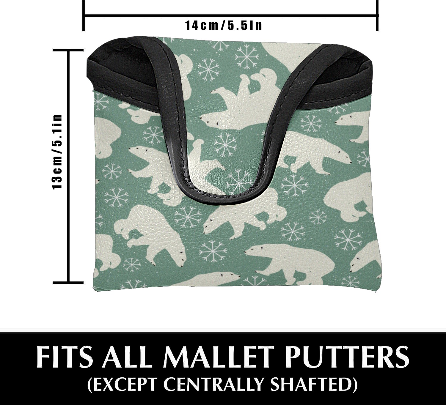 Mallet Putter Cover, PU Leather and Waterproof Golf Putter Cover, Golf Club Protective Case Fits Most Mallet Putters, Easily Slips on and Secures Polar Bear Snowfaker Pattern