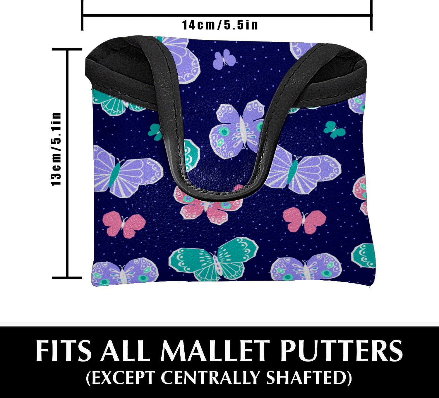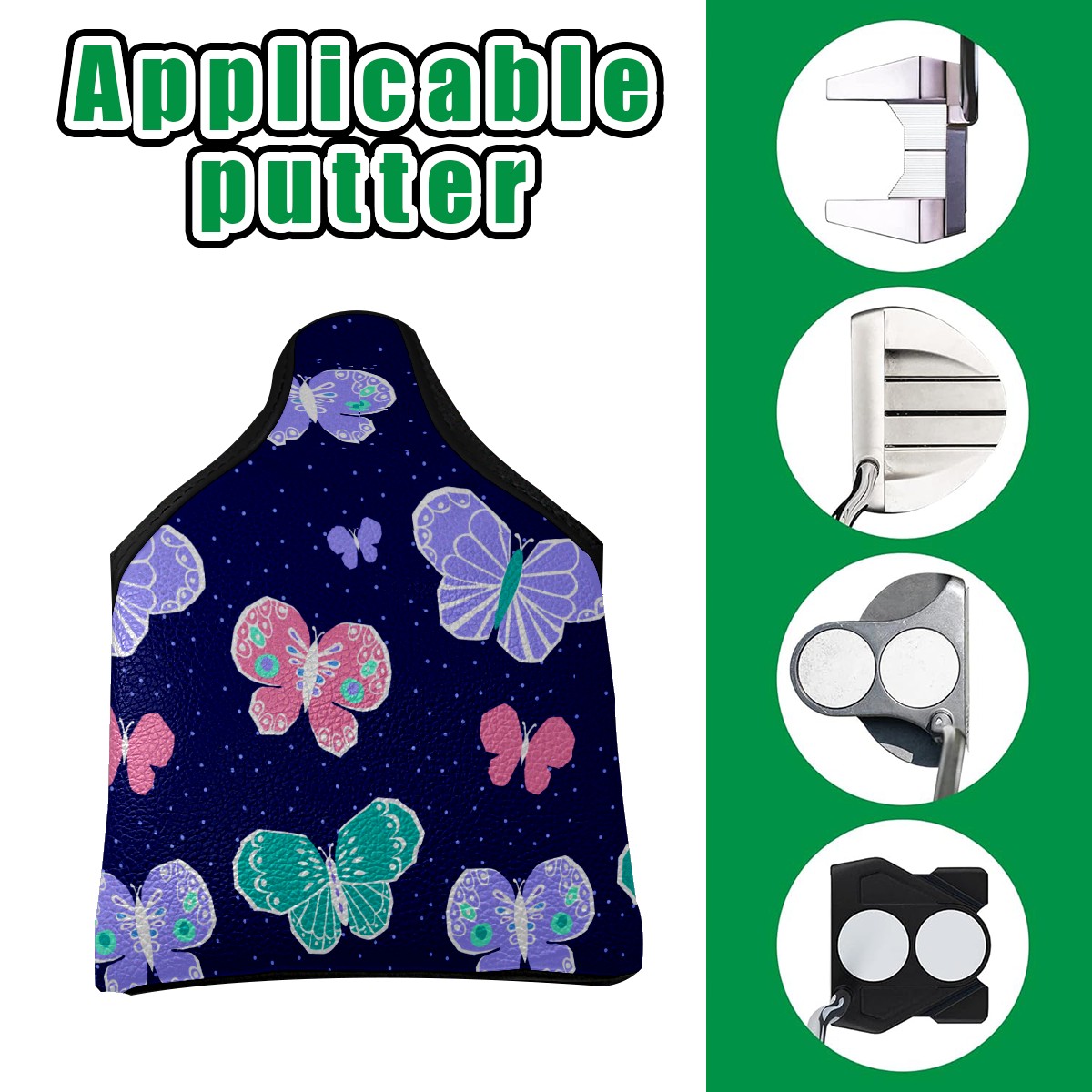 Mallet Putter Cover, PU Leather and Waterproof Golf Putter Cover, Golf Club Protective Case Fits Most Mallet Putters, Easily Slips on and Secures Hand Drawn Pastel Purple Pink Butterfly