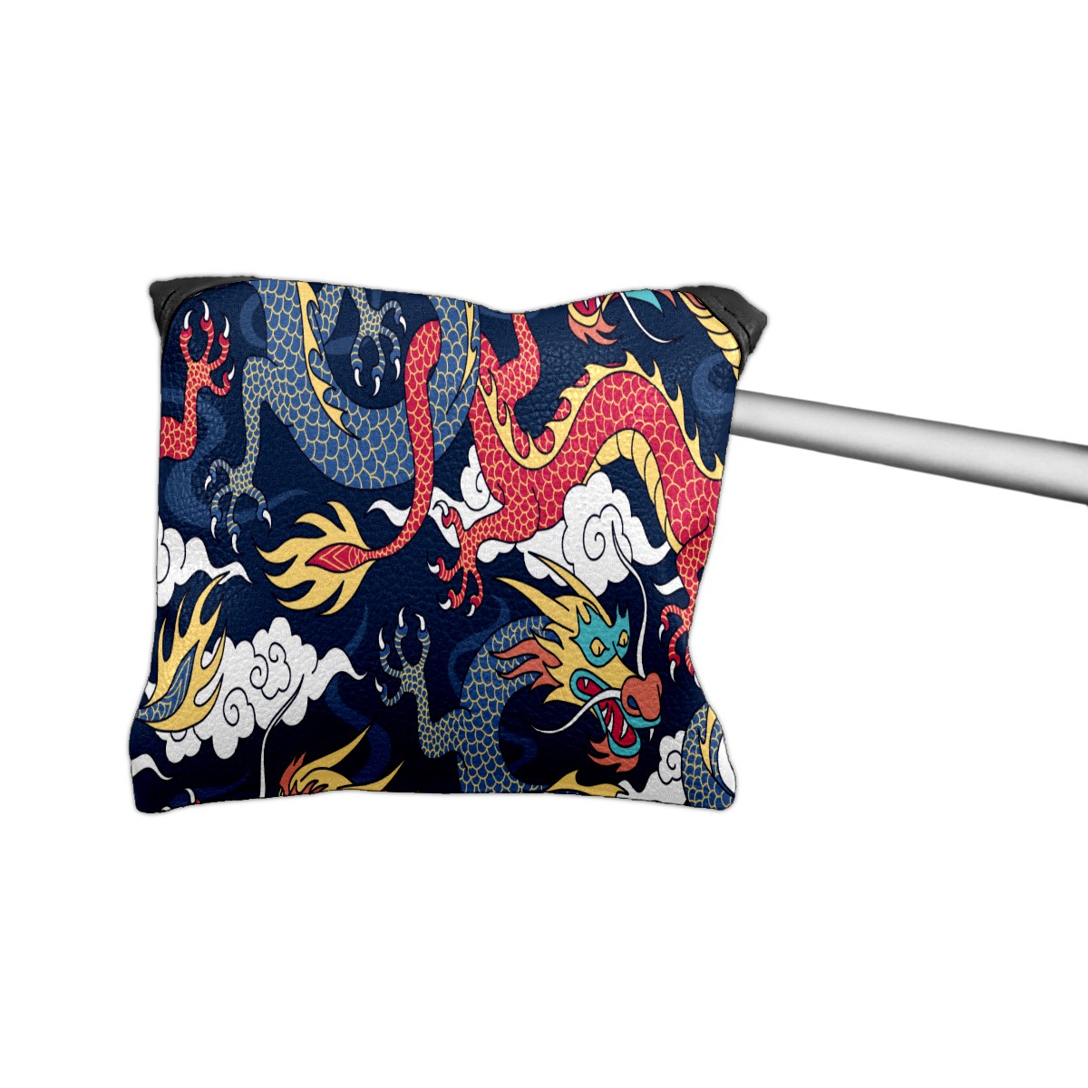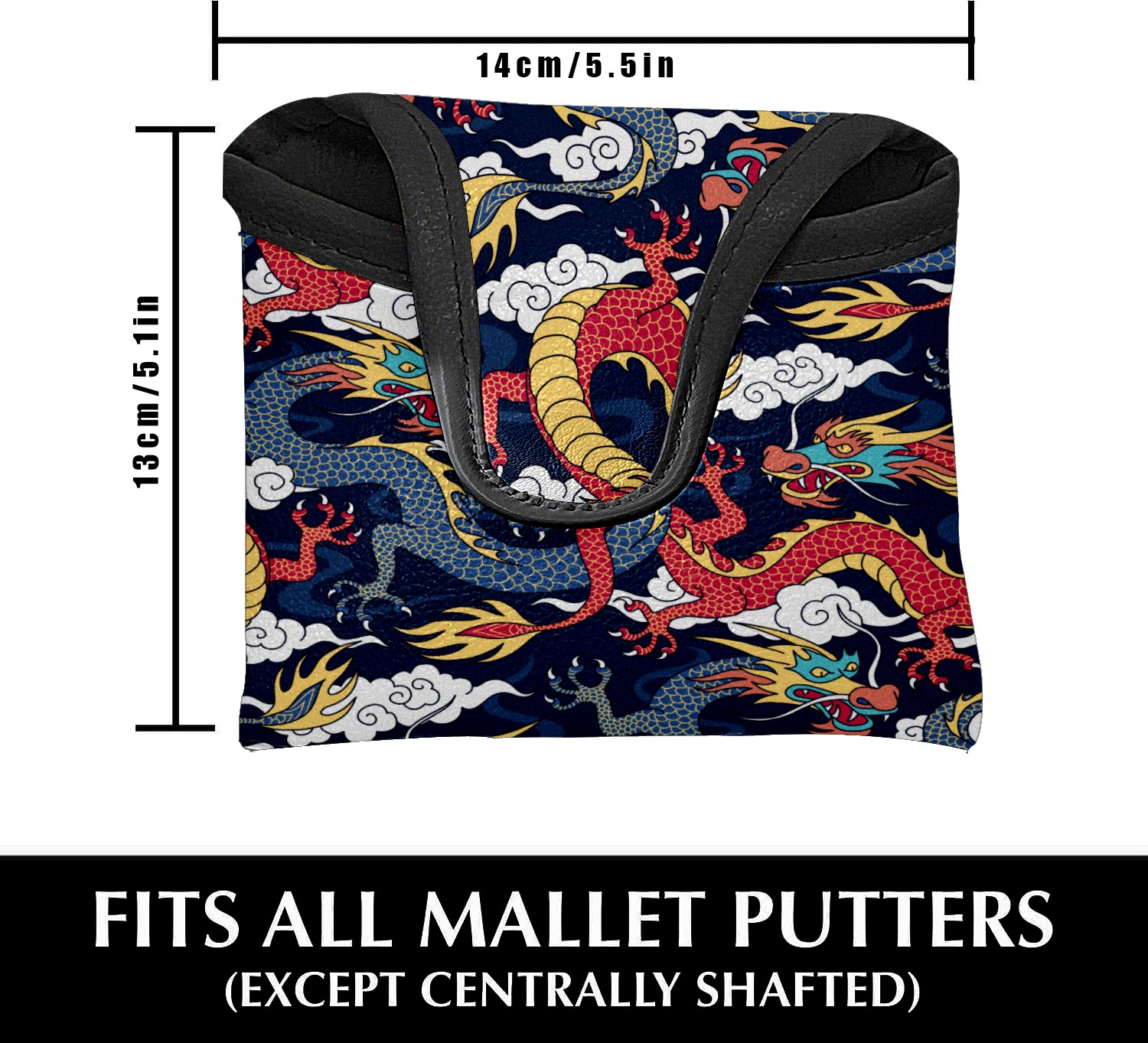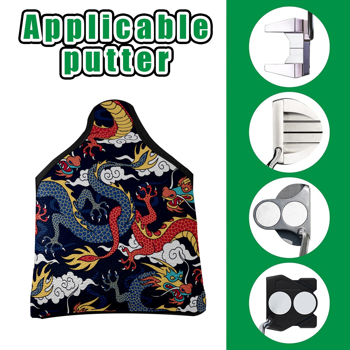 Mallet Putter Cover, PU Leather and Waterproof Golf Putter Cover, Golf Club Protective Case Fits Most Mallet Putters, Easily Slips on and Secures Traditional Chinese Dragon Pattern