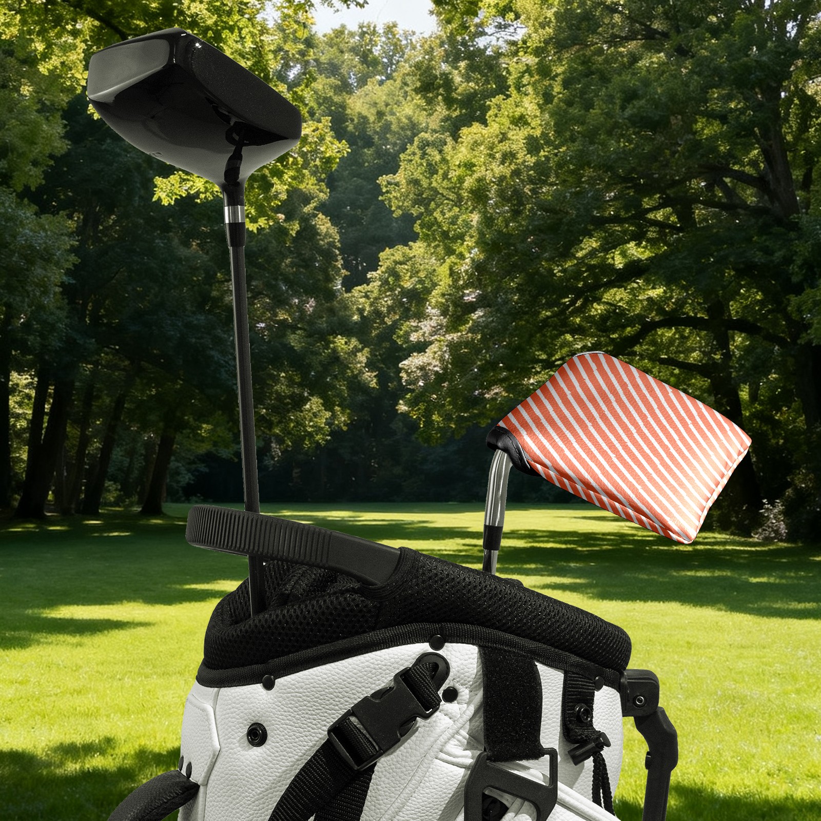 Mallet Putter Cover, PU Leather and Waterproof Golf Putter Cover, Golf Club Protective Case Fits Most Mallet Putters, Easily Slips on and Secures Pastel Pink Stripe Twill Pattern