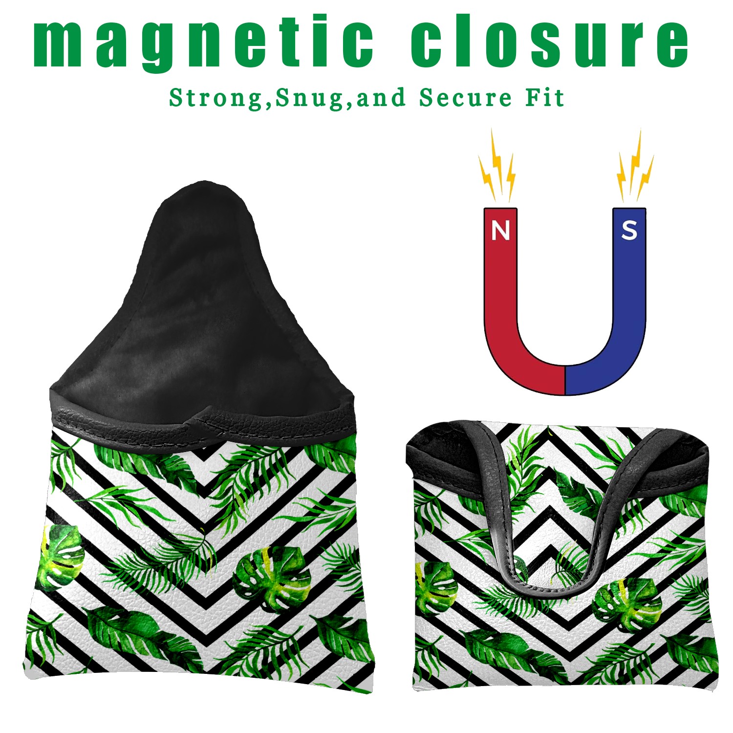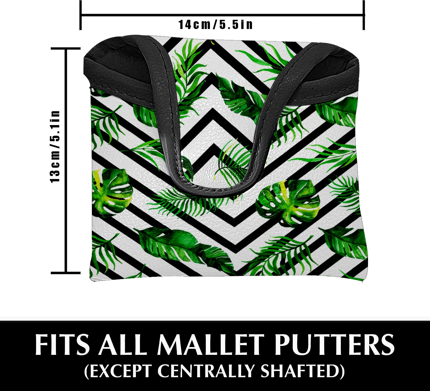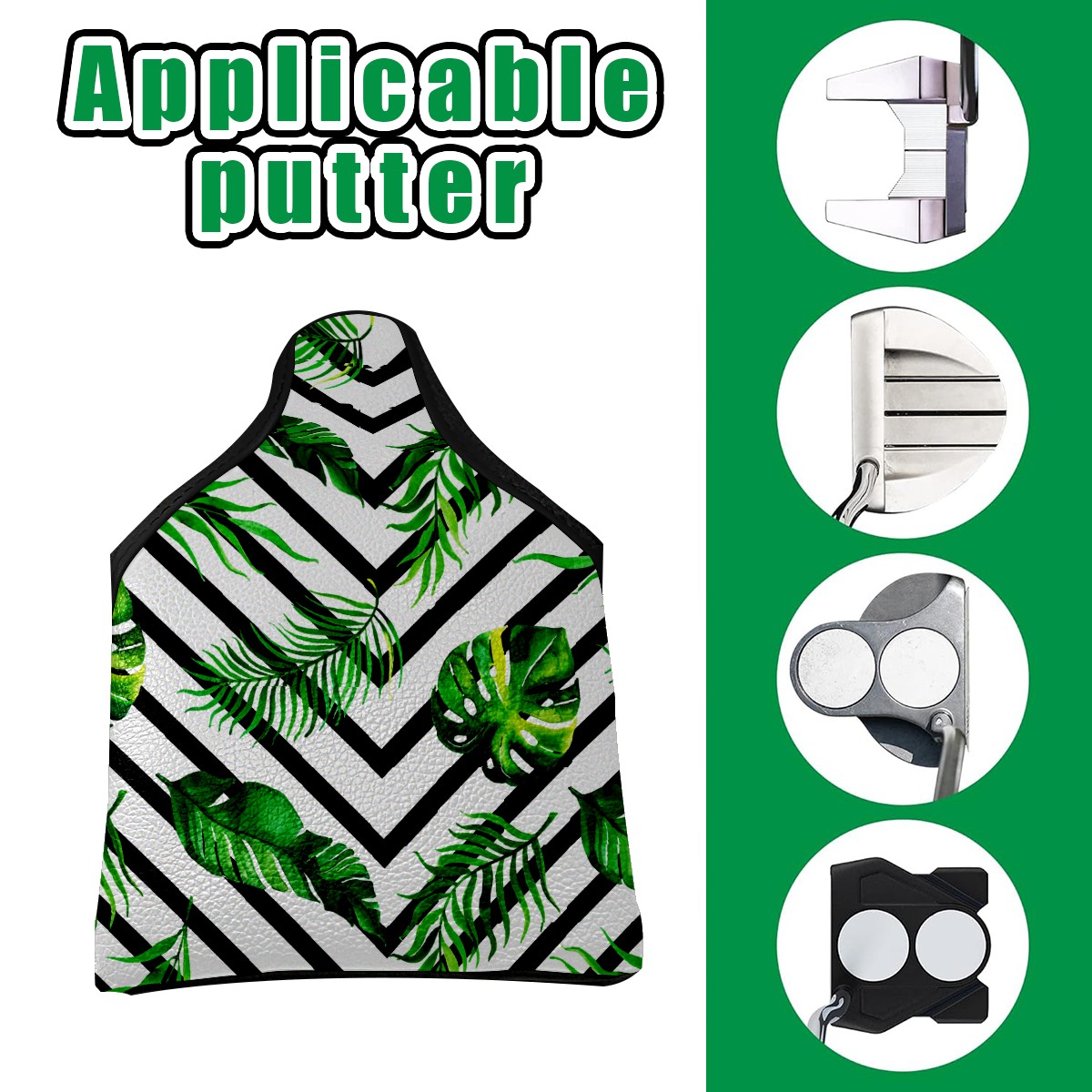Mallet Putter Cover, PU Leather and Waterproof Golf Putter Cover, Golf Club Protective Case Fits Most Mallet Putters, Easily Slips on and Secures Watercolor Tropical Leaves