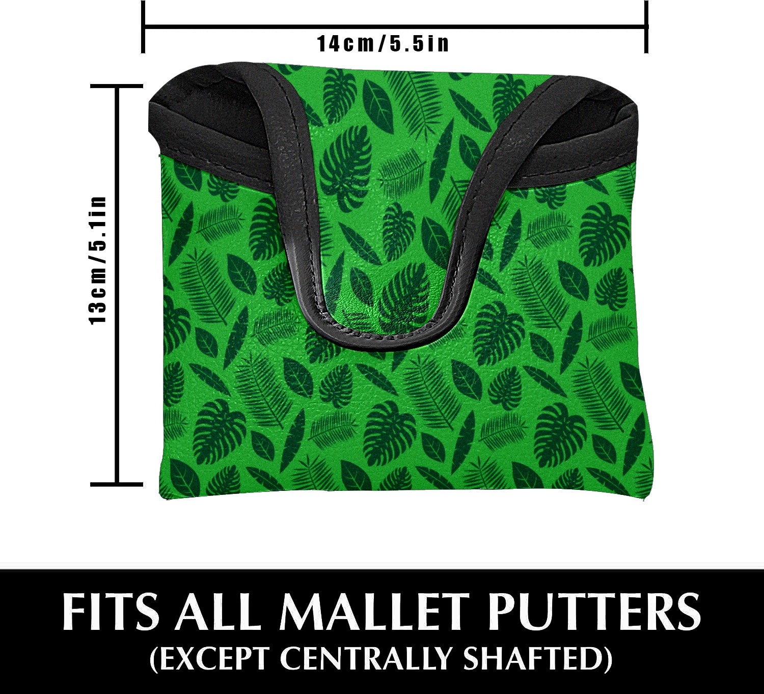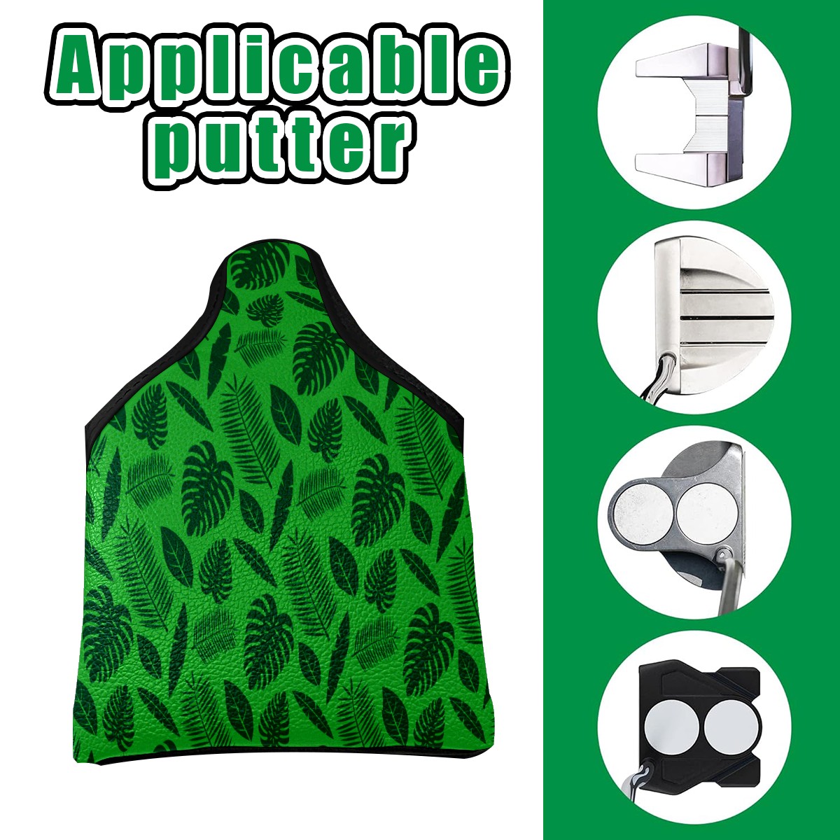 Mallet Putter Cover, PU Leather and Waterproof Golf Putter Cover, Golf Club Protective Case Fits Most Mallet Putters, Easily Slips on and Secures Various Green Leaves Pattern