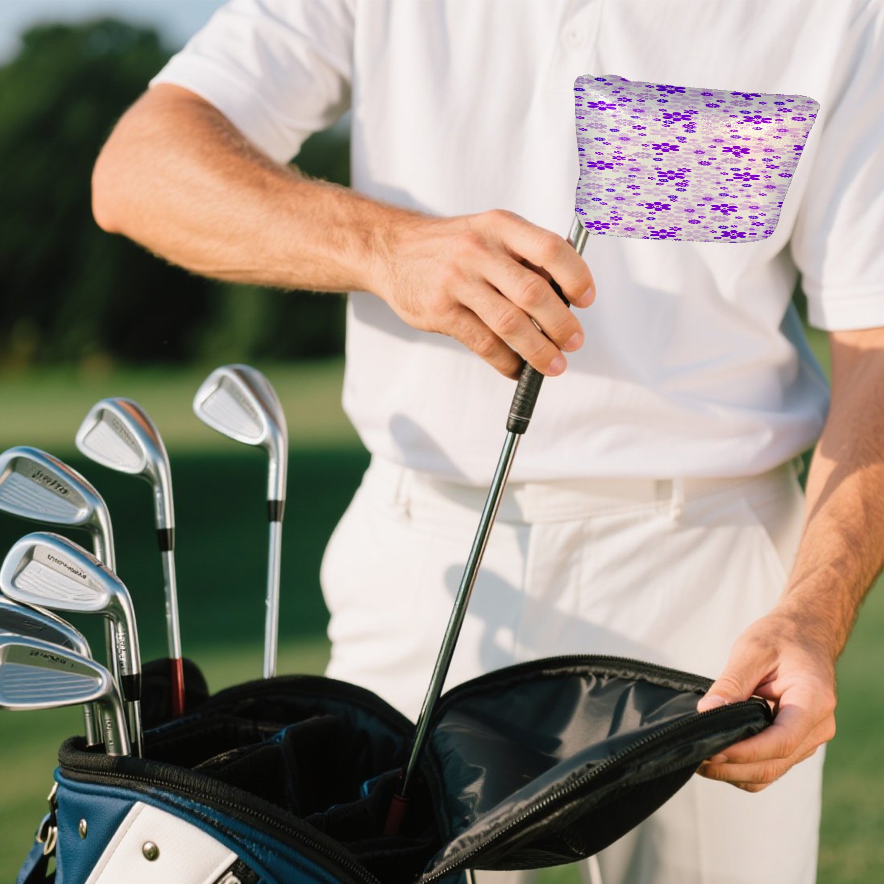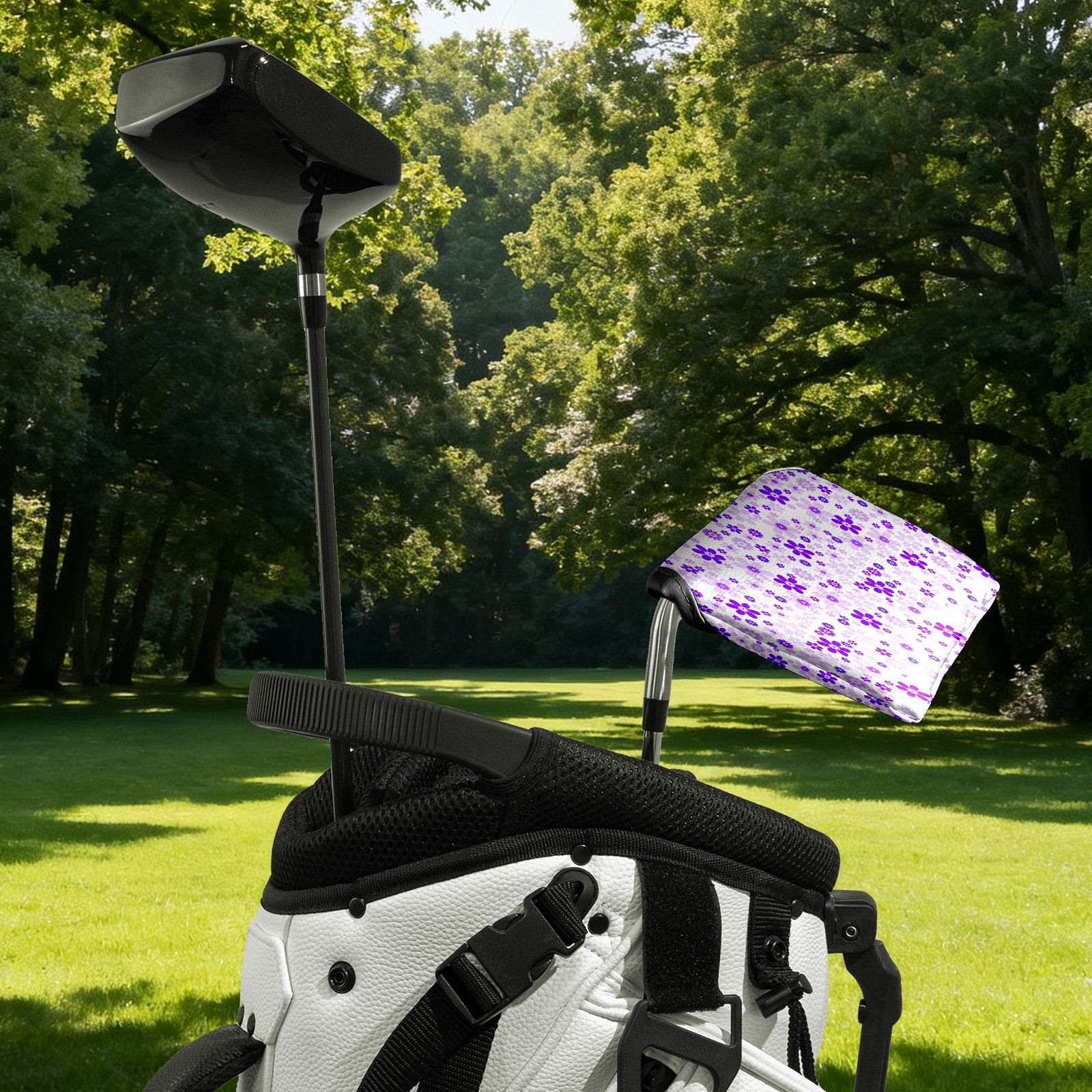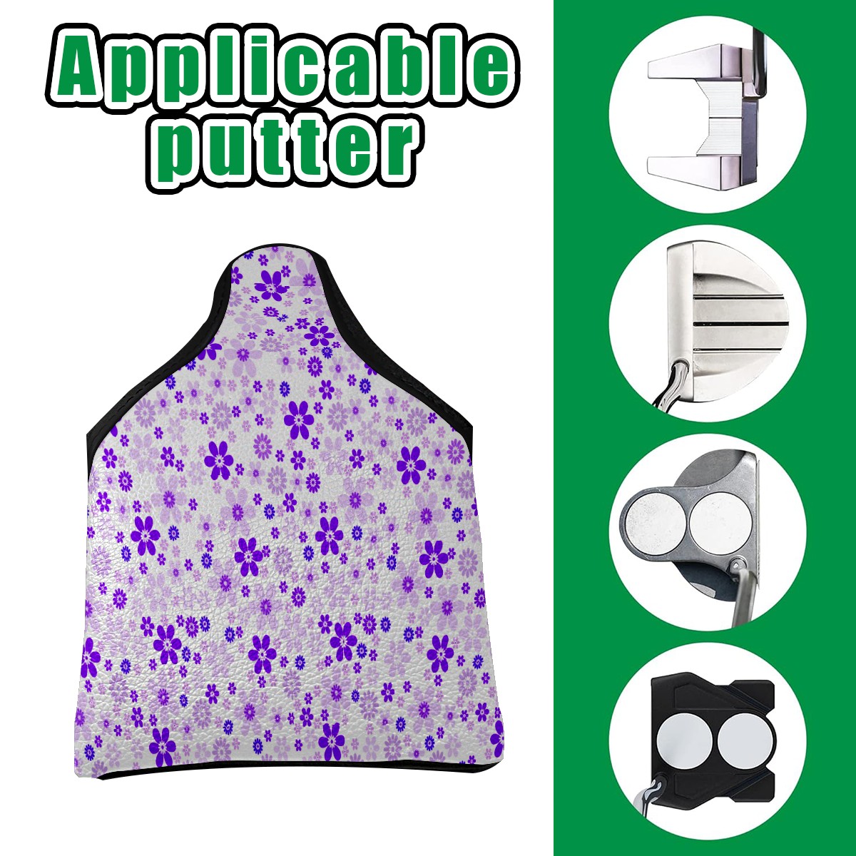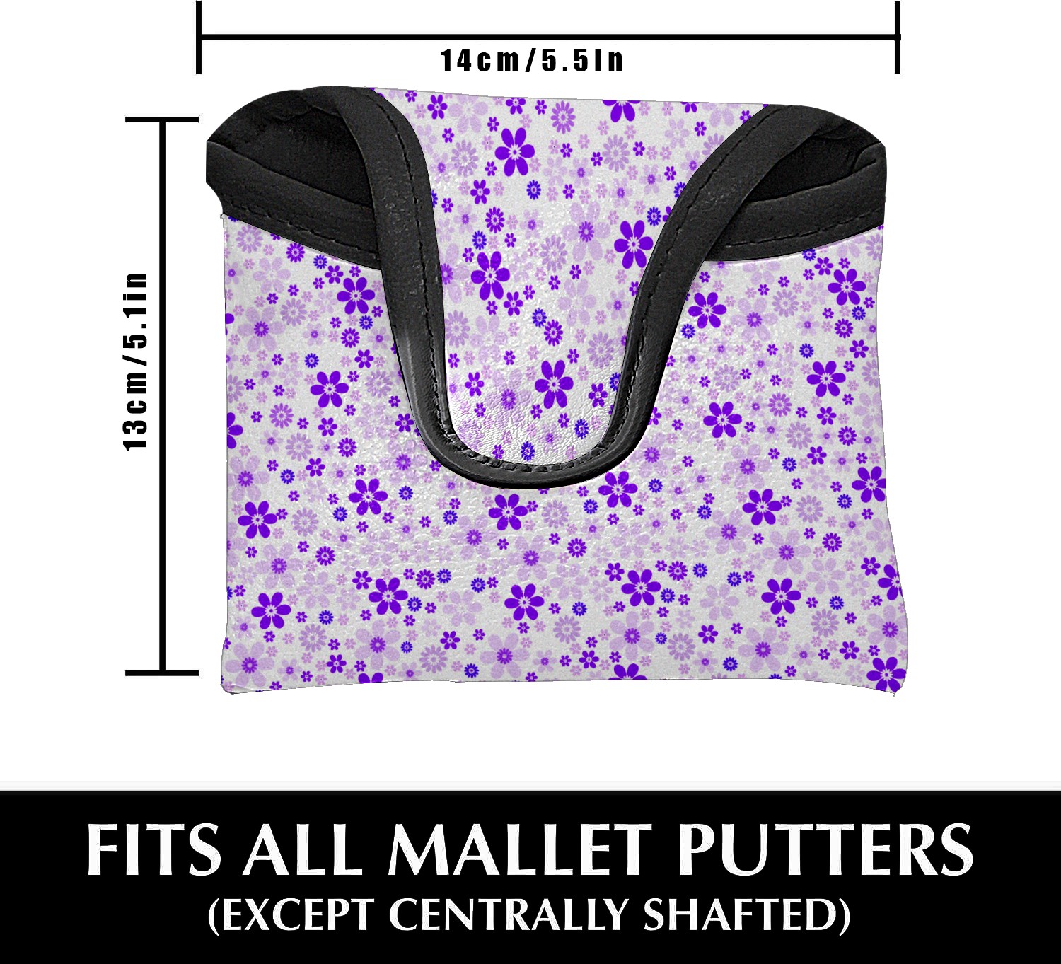 Mallet Putter Cover, PU Leather and Waterproof Golf Putter Cover, Golf Club Protective Case Fits Most Mallet Putters, Easily Slips on and Secures Purple Sweet Flower Floral
