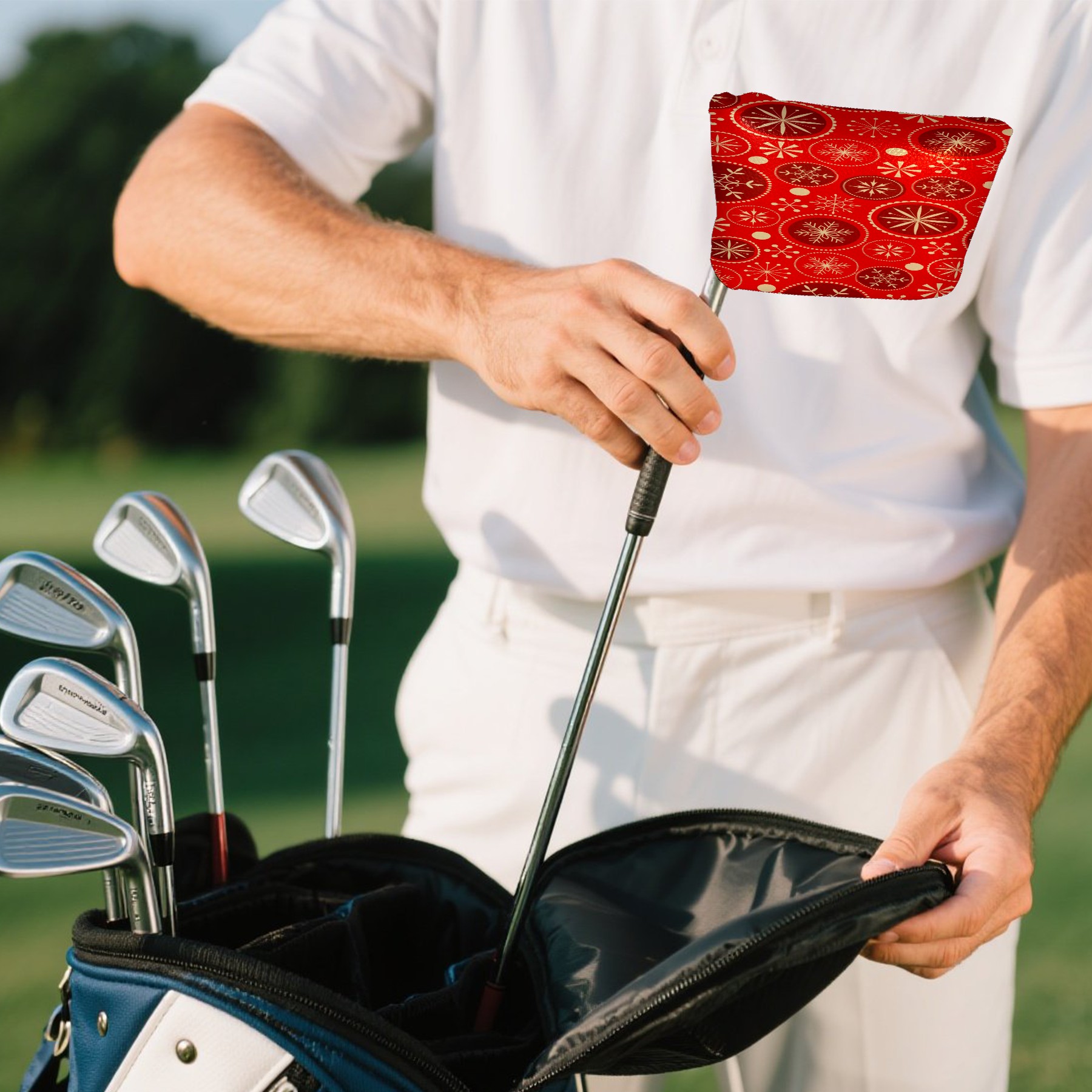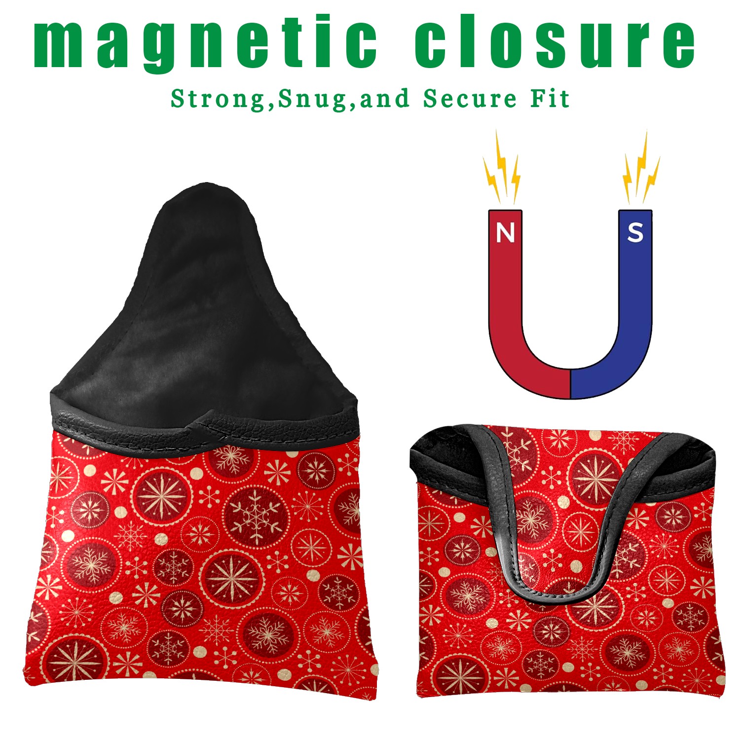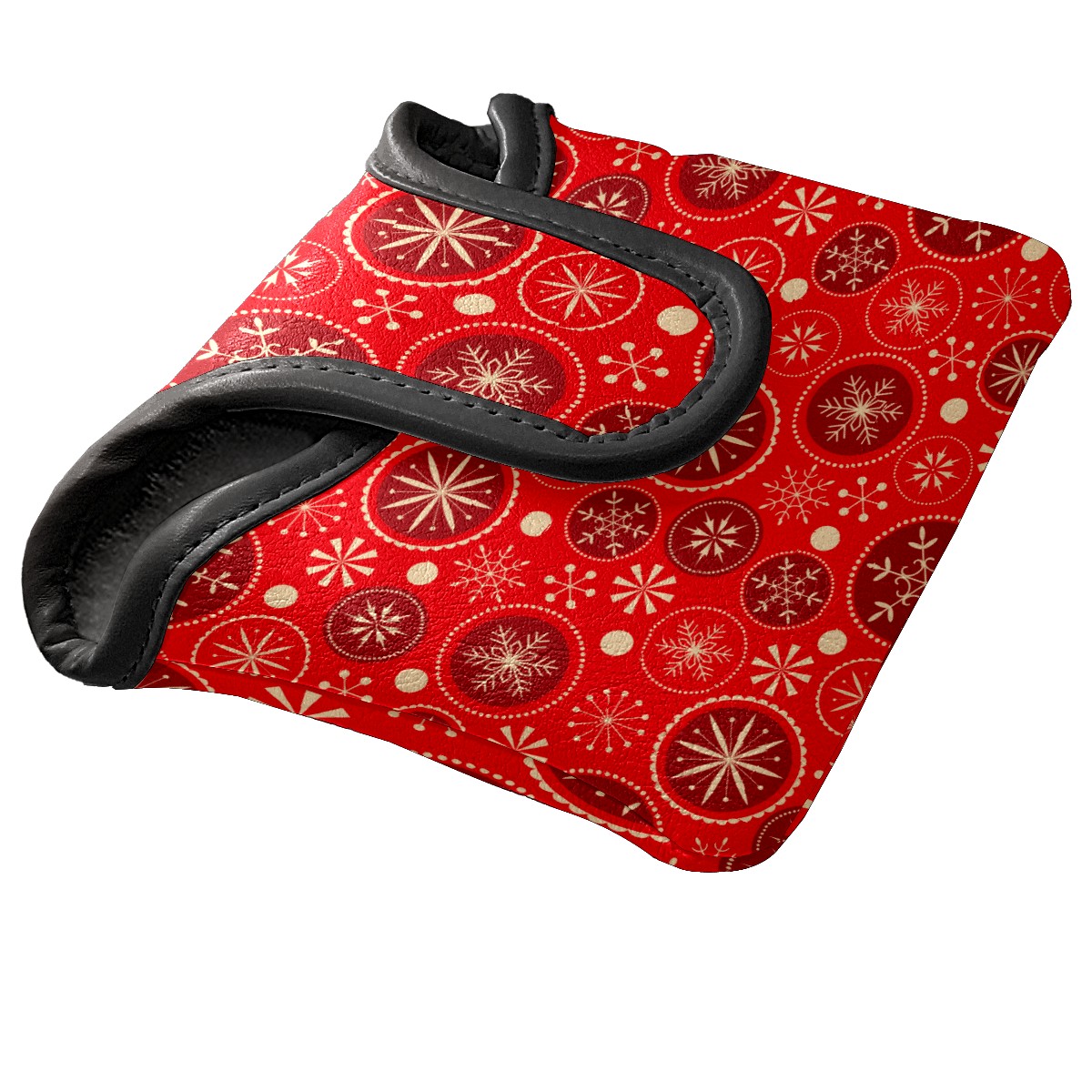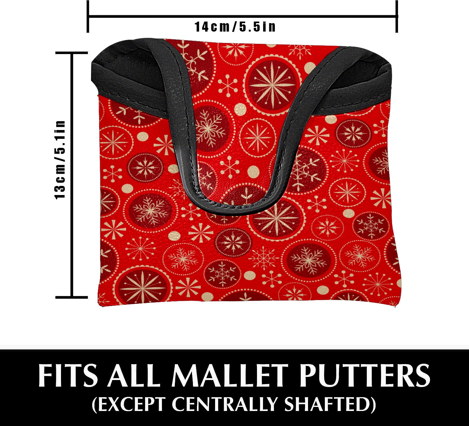 Mallet Putter Cover, PU Leather and Waterproof Golf Putter Cover, Golf Club Protective Case Fits Most Mallet Putters, Easily Slips on and Secures Red Christmas Snowflake
