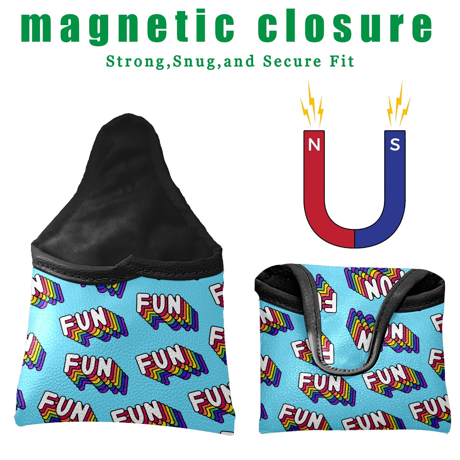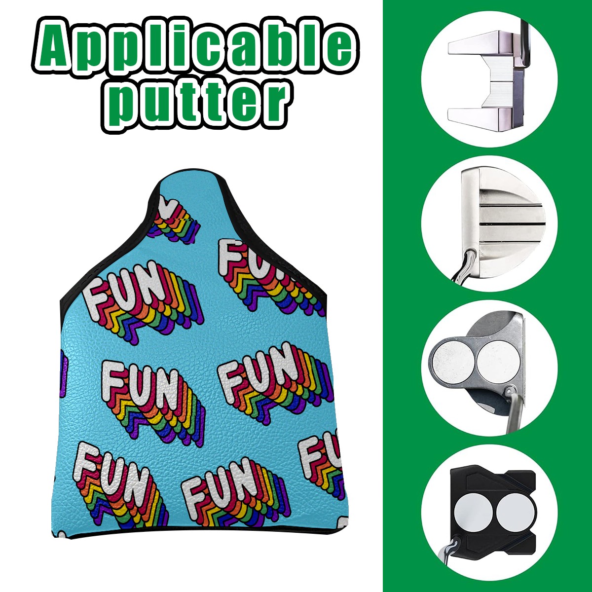 Mallet Putter Cover, PU Leather and Waterproof Golf Putter Cover, Golf Club Protective Case Fits Most Mallet Putters, Easily Slips on and Secures Fun Background