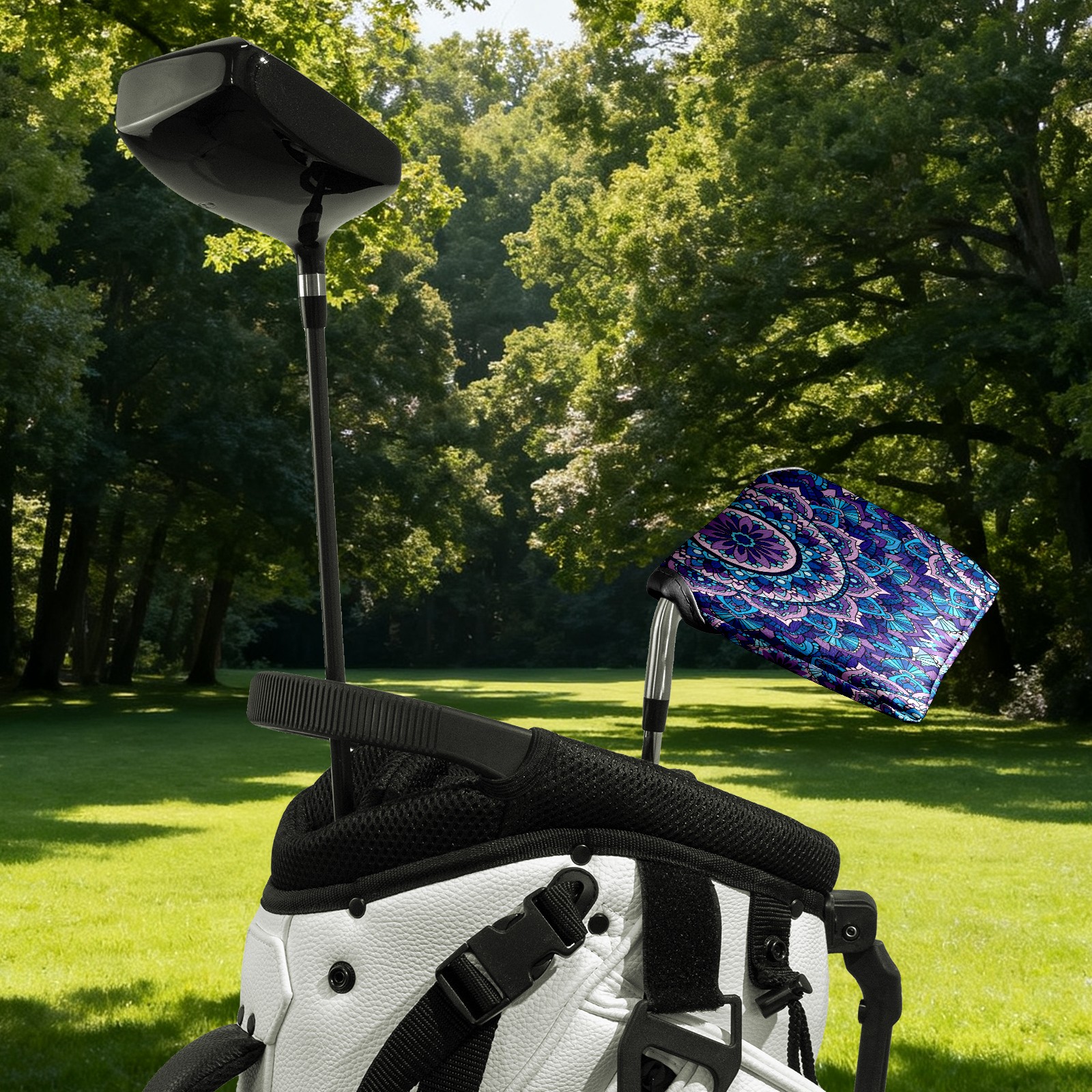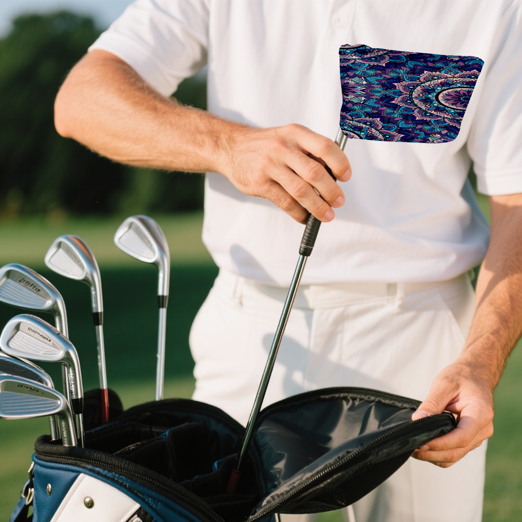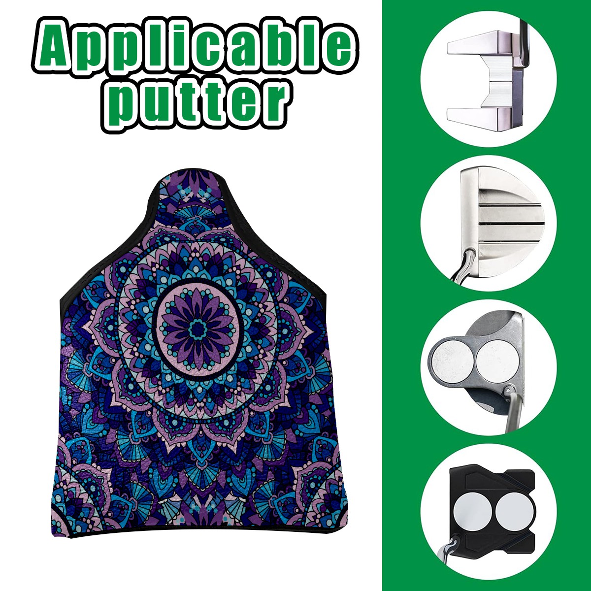 Mallet Putter Cover, PU Leather and Waterproof Golf Putter Cover, Golf Club Protective Case Fits Most Mallet Putters, Easily Slips on and Secures Bohemia Flower Geometry Pattern