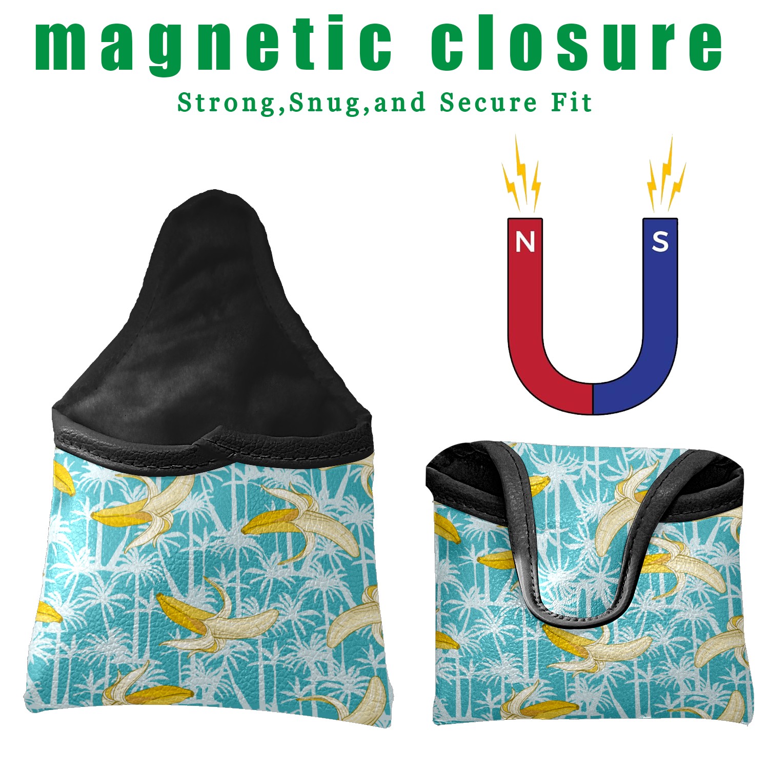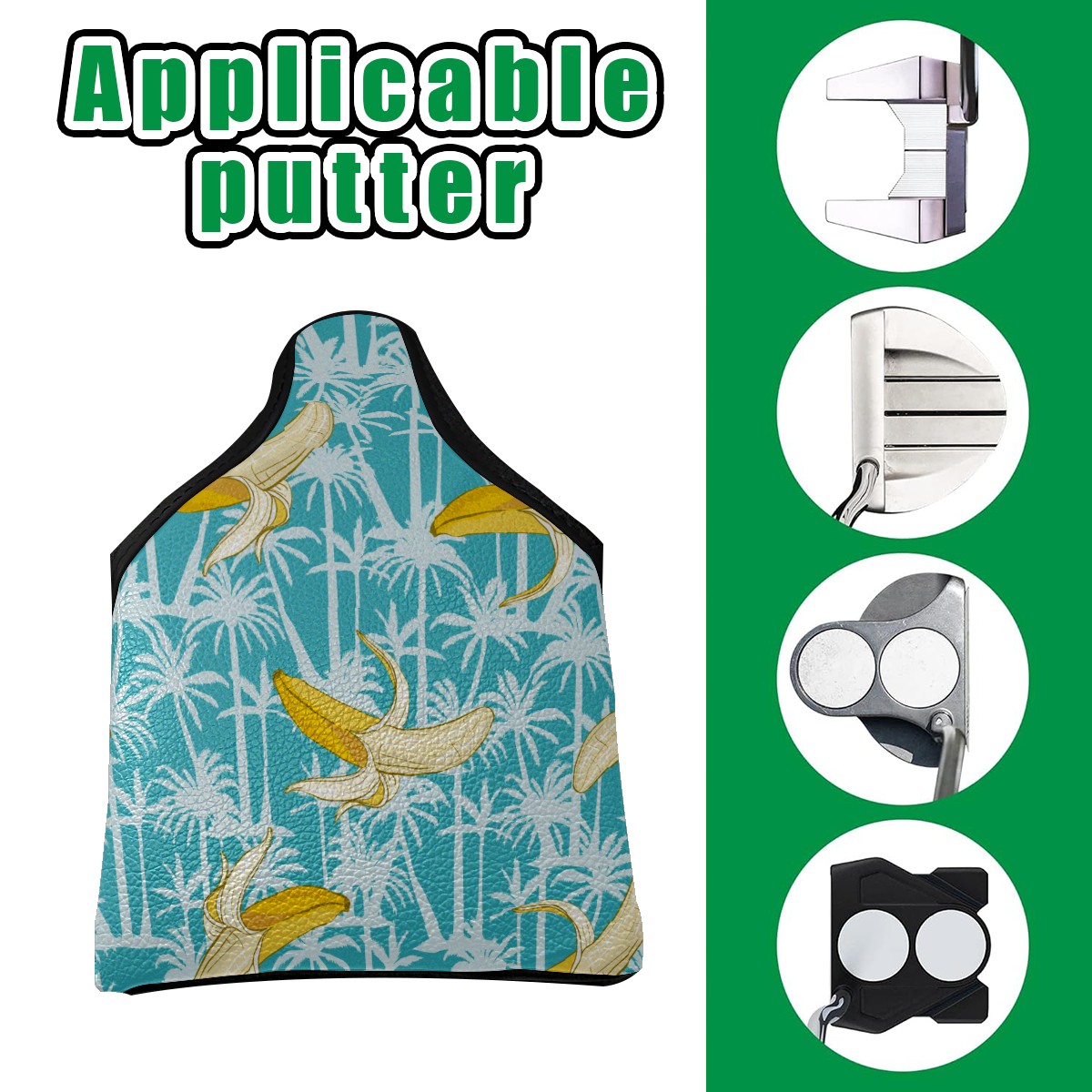 Mallet Putter Cover, PU Leather and Waterproof Golf Putter Cover, Golf Club Protective Case Fits Most Mallet Putters, Easily Slips on and Secures Banana Pattern