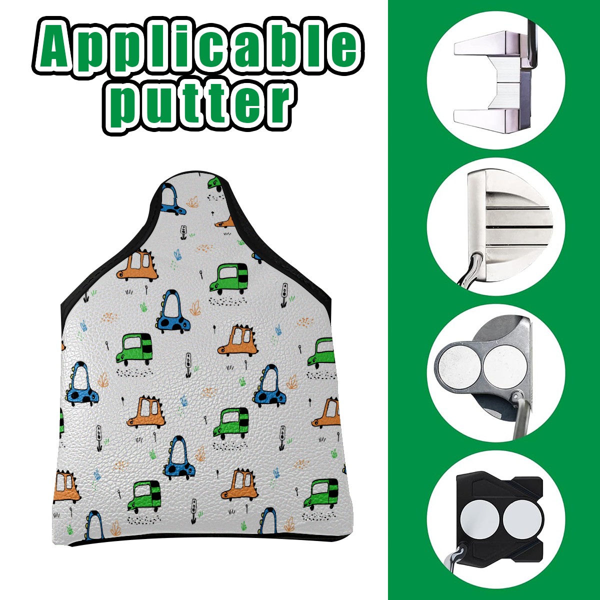 Mallet Putter Cover, PU Leather and Waterproof Golf Putter Cover, Golf Club Protective Case Fits Most Mallet Putters, Easily Slips on and Secures 車柄 かわいい アニメ