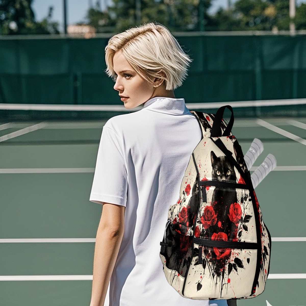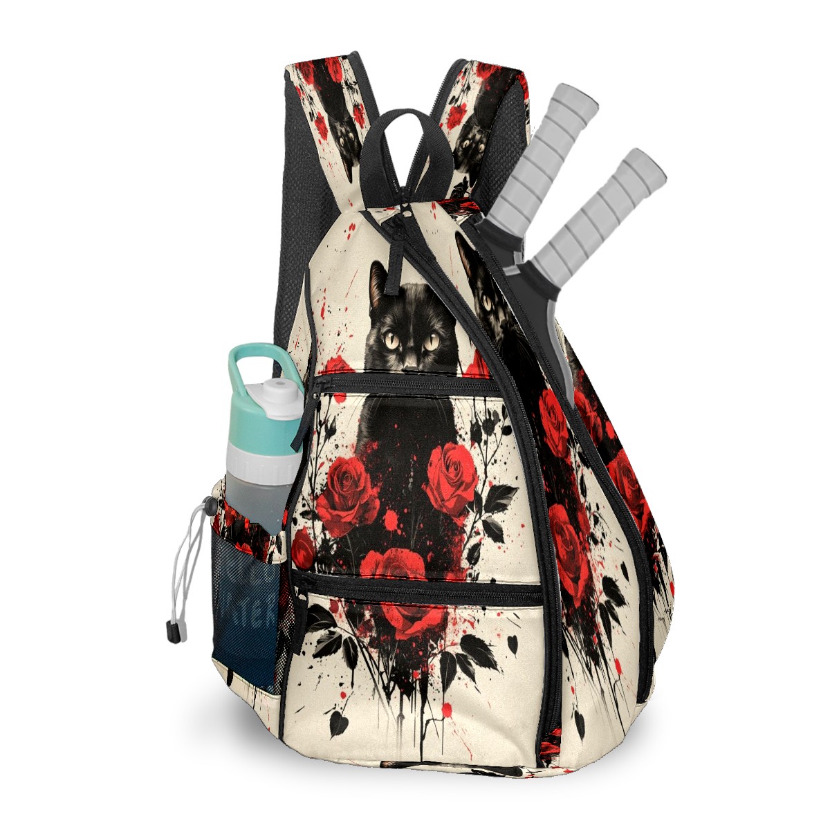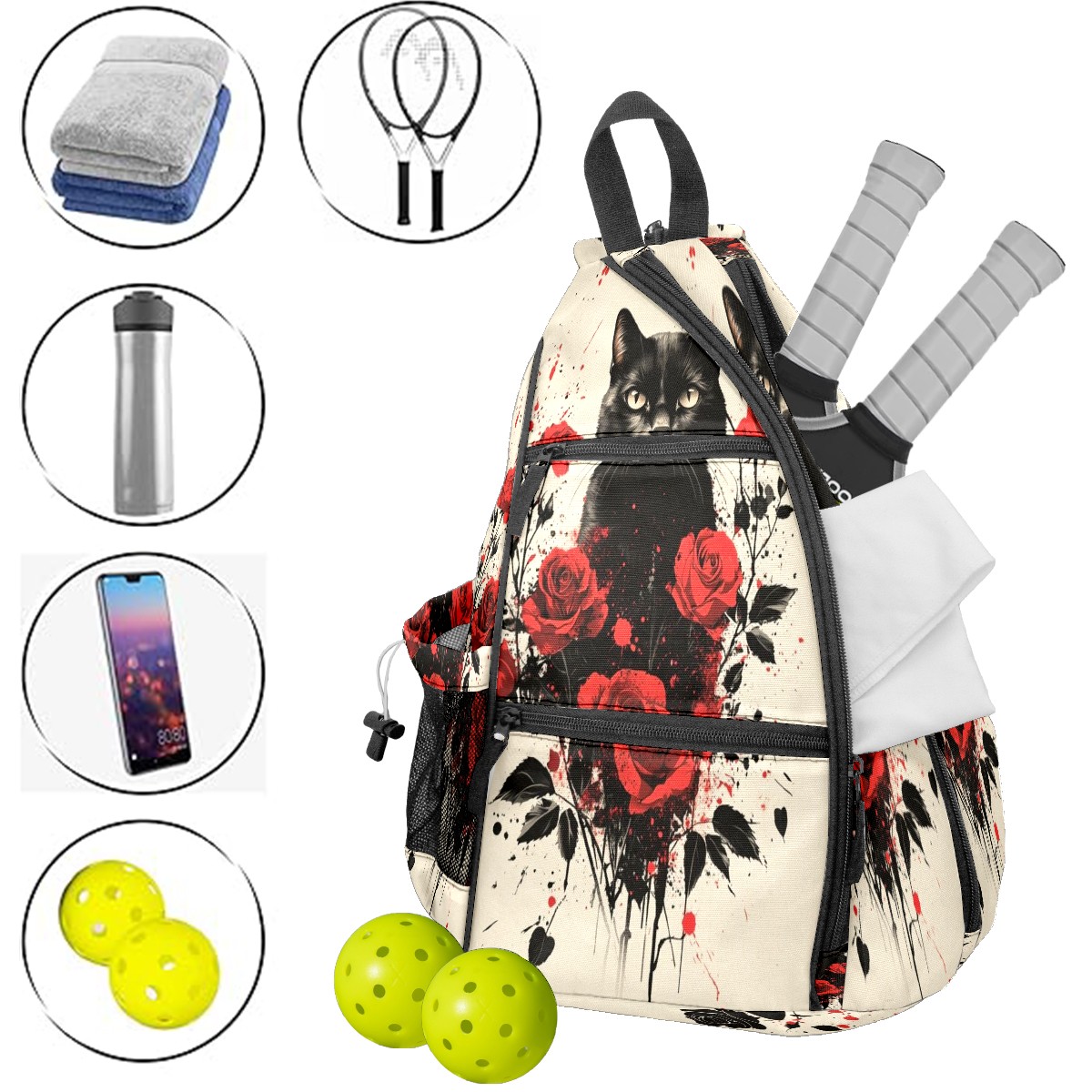 Pickleball Bag,Adjustable Shoulder Bag,Waterproof and Large Capacity,Pickleball Backpack for Men and Women Rose Cat