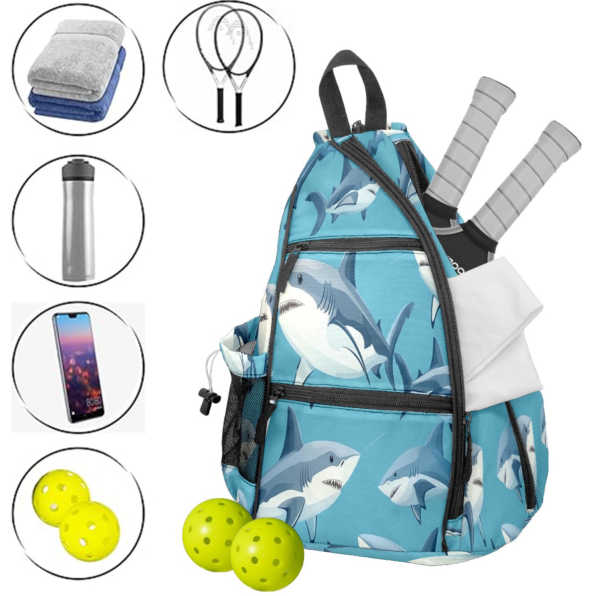 Pickleball Bag,Adjustable Shoulder Bag,Waterproof and Large Capacity,Pickleball Backpack for Men and Women Ocean Pattern
