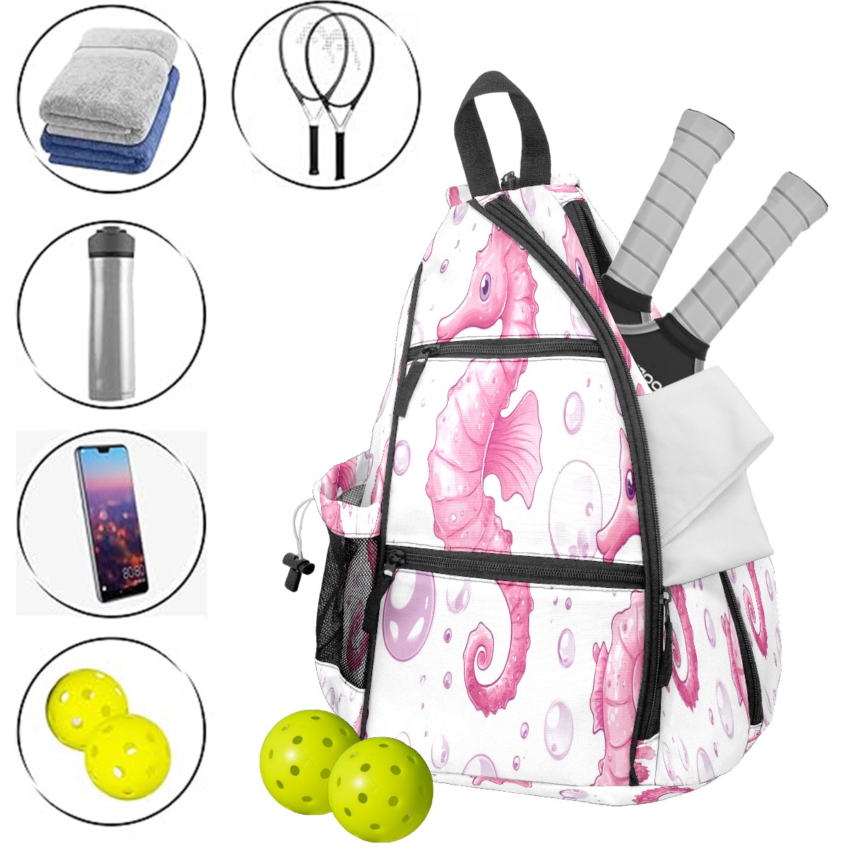 Pickleball Bag,Adjustable Shoulder Bag,Waterproof and Large Capacity,Pickleball Backpack for Men and Women Seahorse Pattern