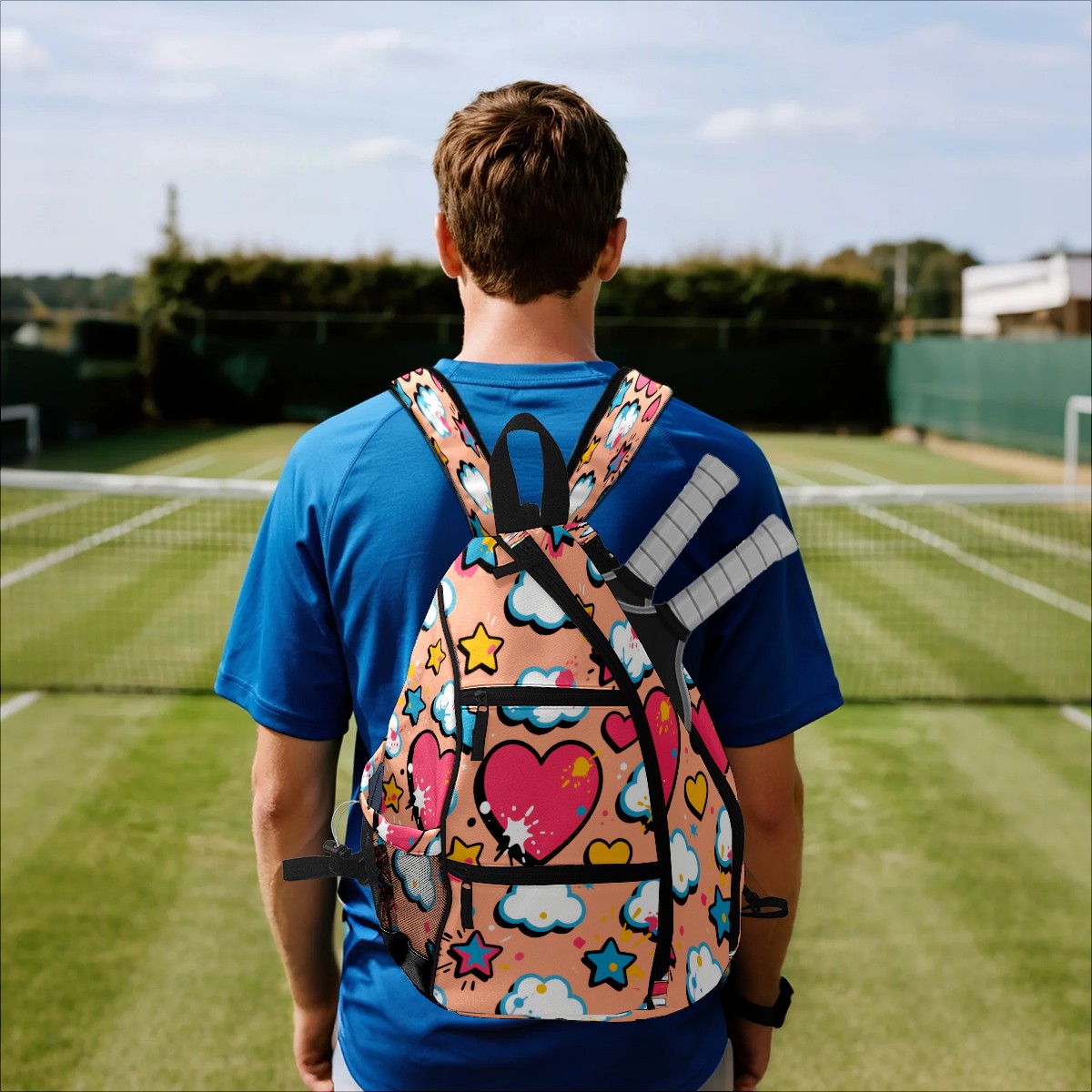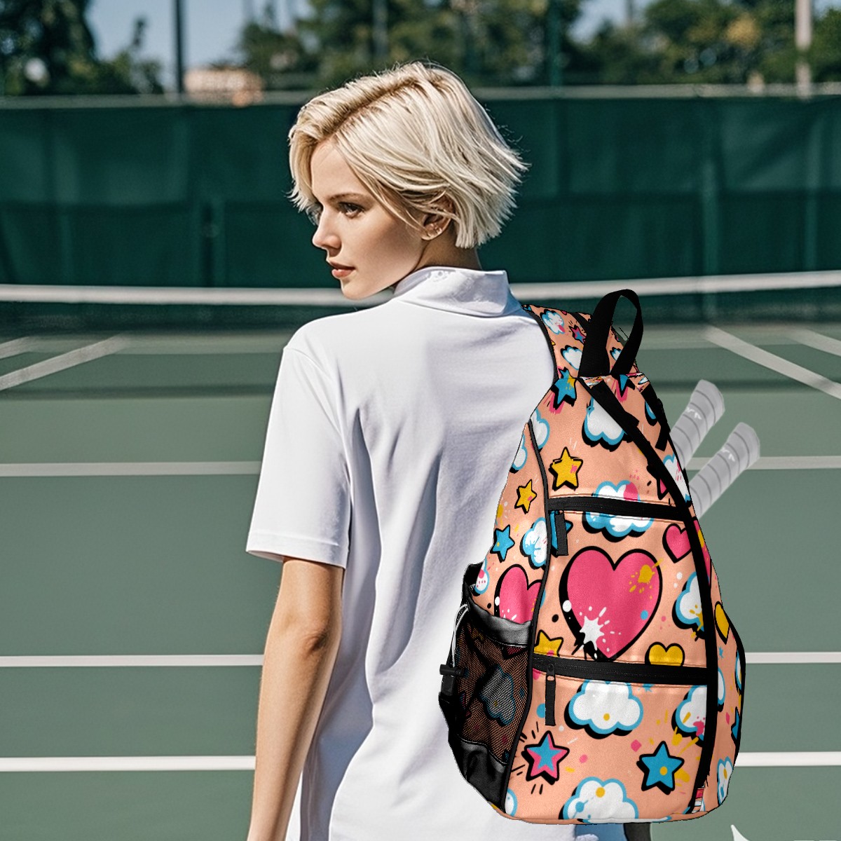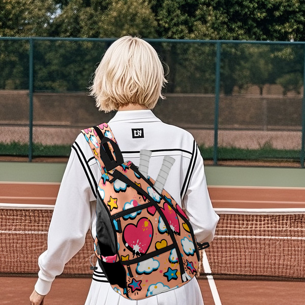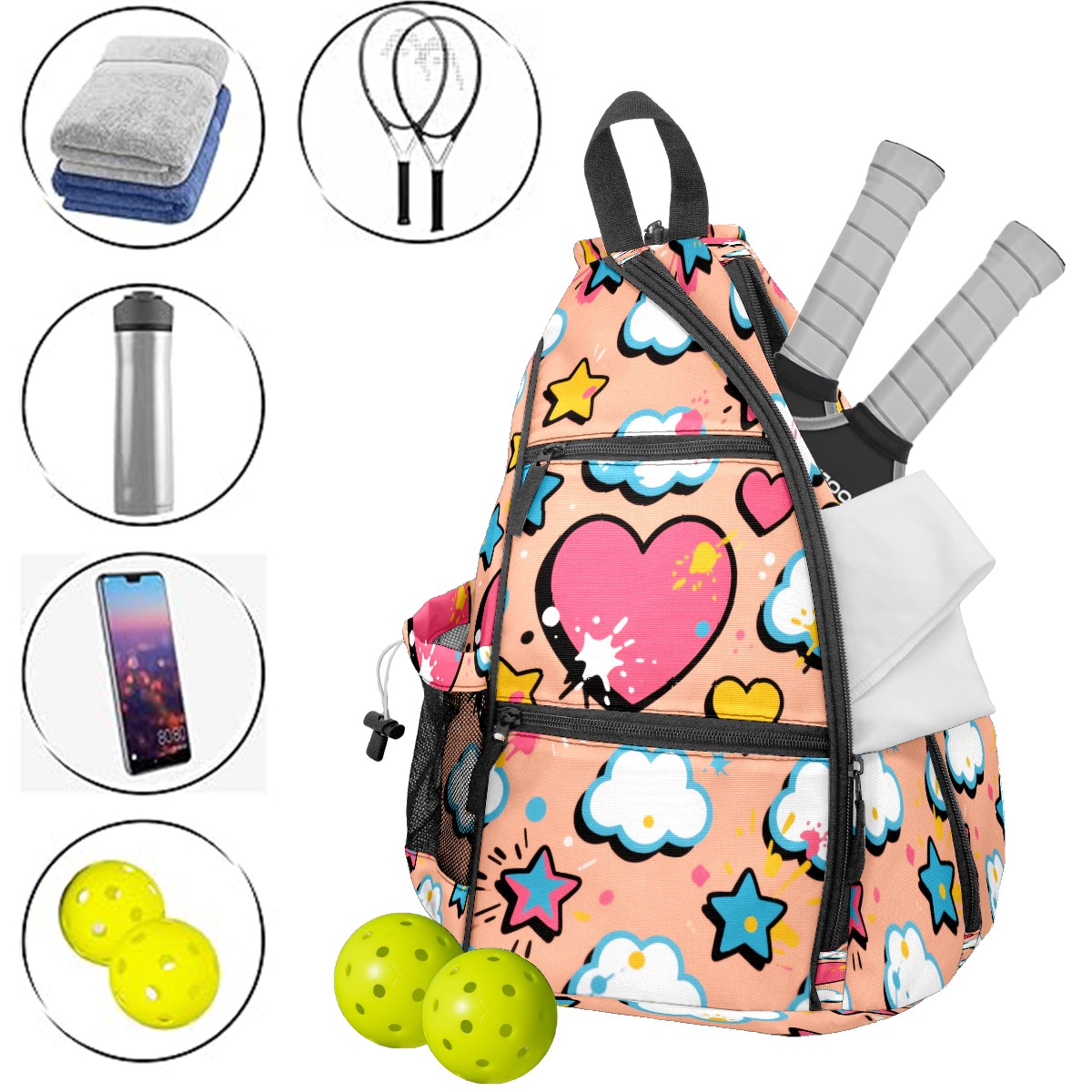 Pickleball Bag,Adjustable Shoulder Bag,Waterproof and Large Capacity,Pickleball Backpack for Men and Women Love white cloud pattern