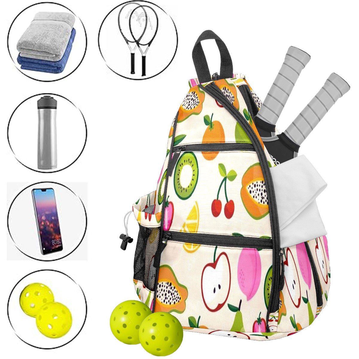 Pickleball Bag,Adjustable Shoulder Bag,Waterproof and Large Capacity,Pickleball Backpack for Men and Women Fruit Pattern