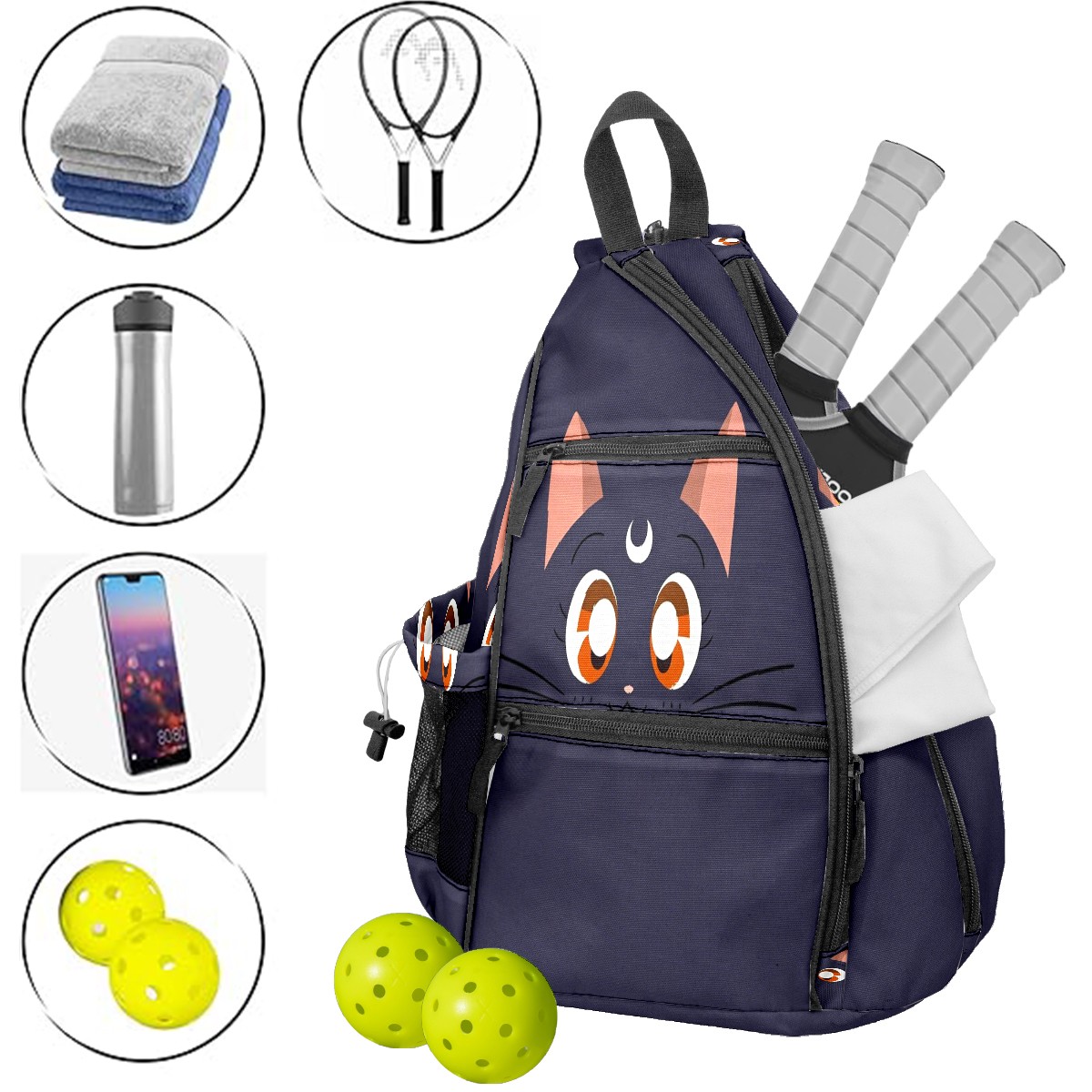 Pickleball Bag,Adjustable Shoulder Bag,Waterproof and Large Capacity,Pickleball Backpack for Men and Women Cat Eyes