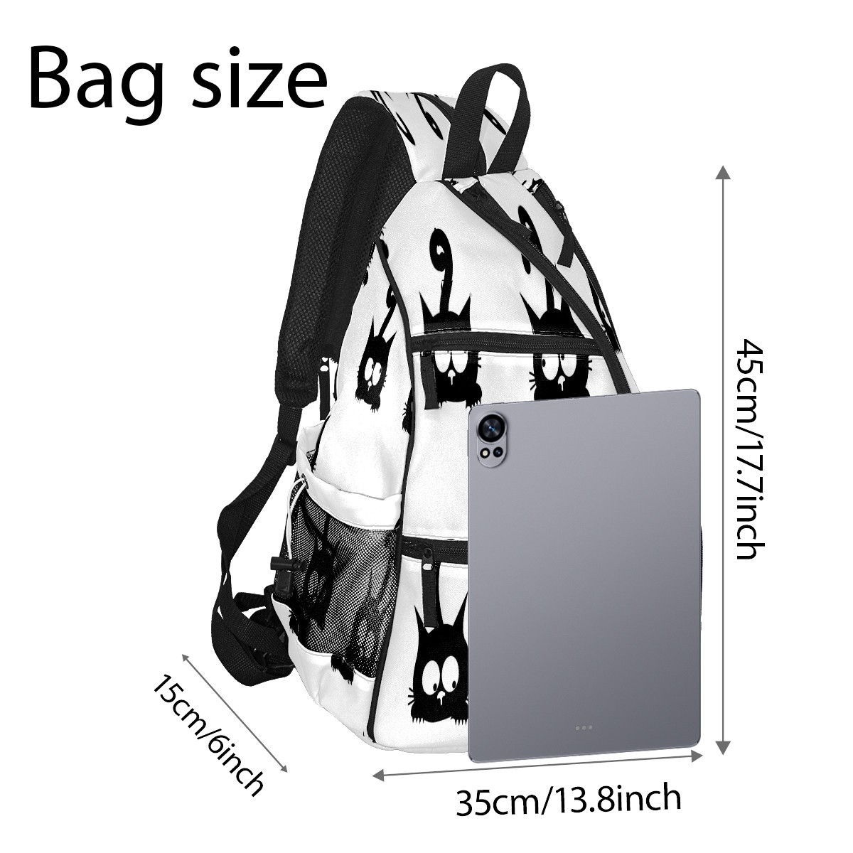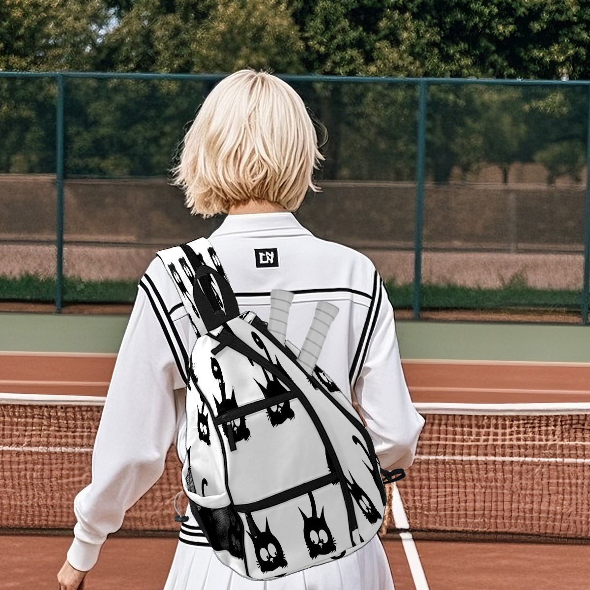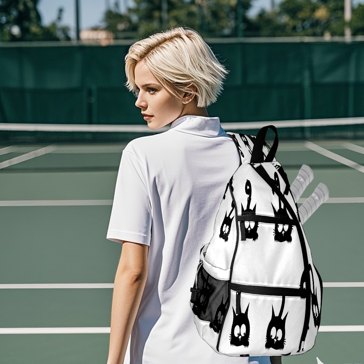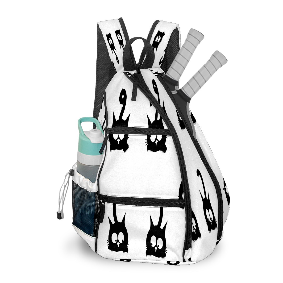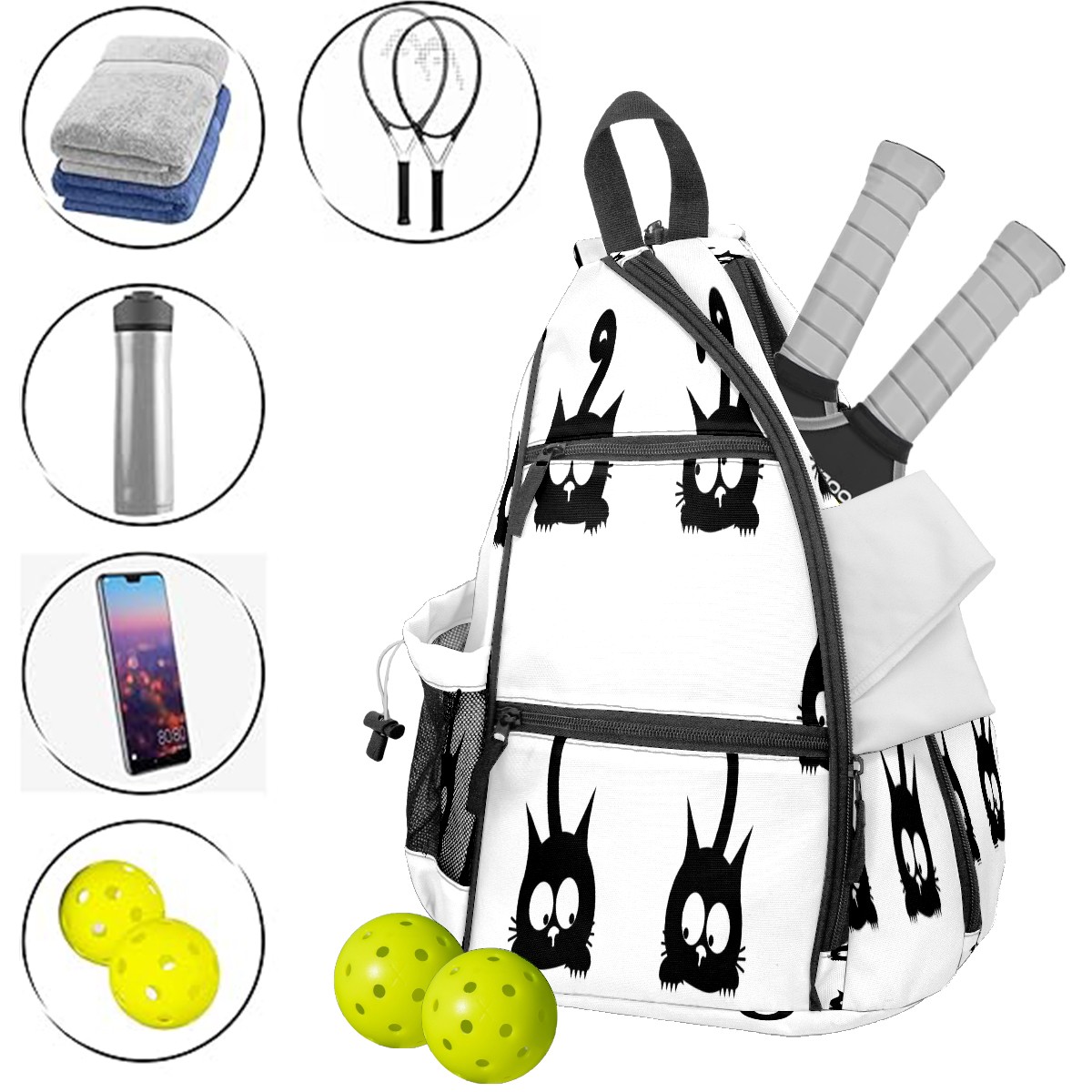 Pickleball Bag,Adjustable Shoulder Bag,Waterproof and Large Capacity,Pickleball Backpack for Men and Women Black and White Kitten