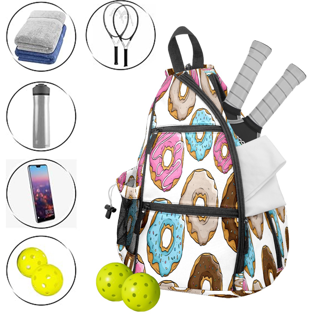 Pickleball Bag,Adjustable Shoulder Bag,Waterproof and Large Capacity,Pickleball Backpack for Men and Women Food Pattern