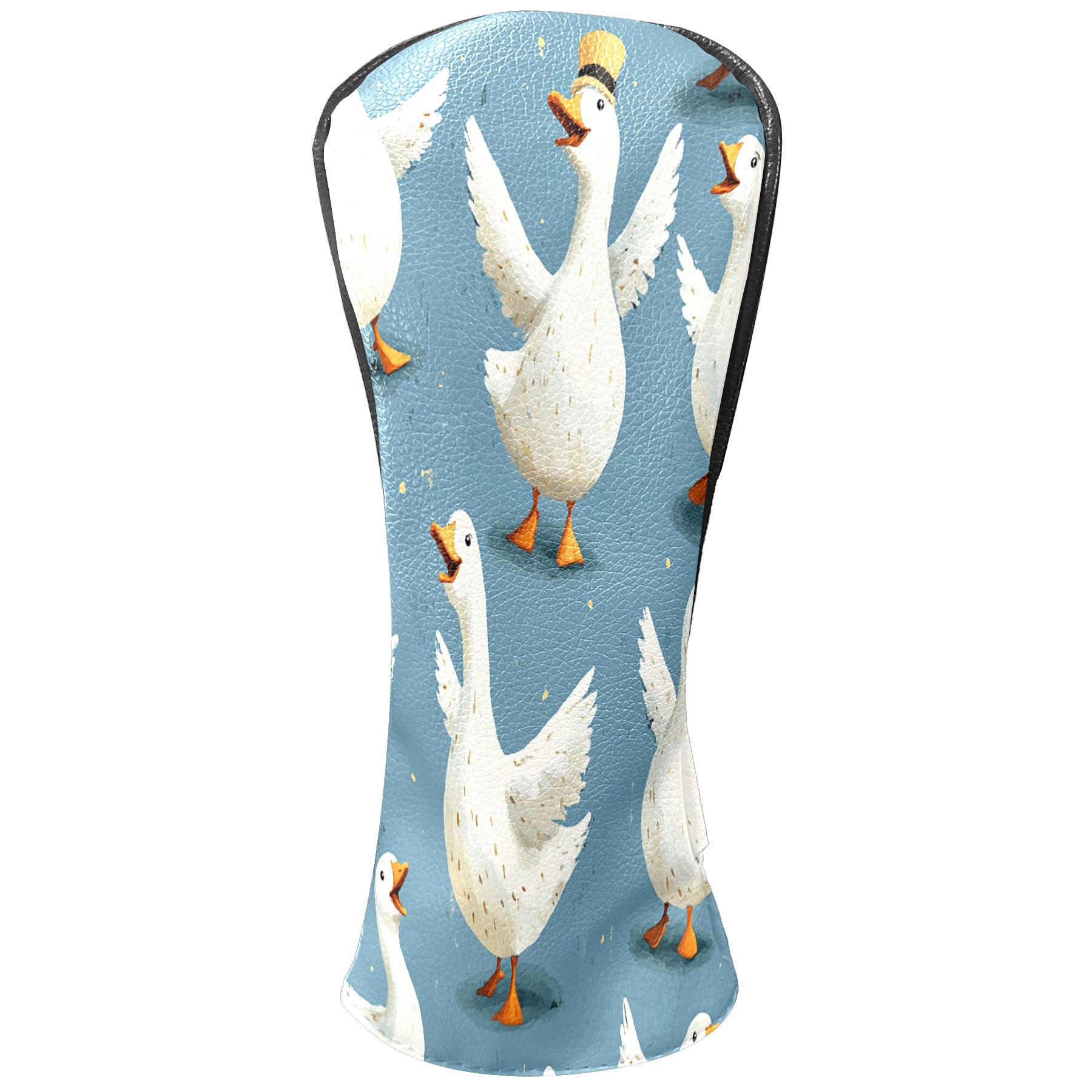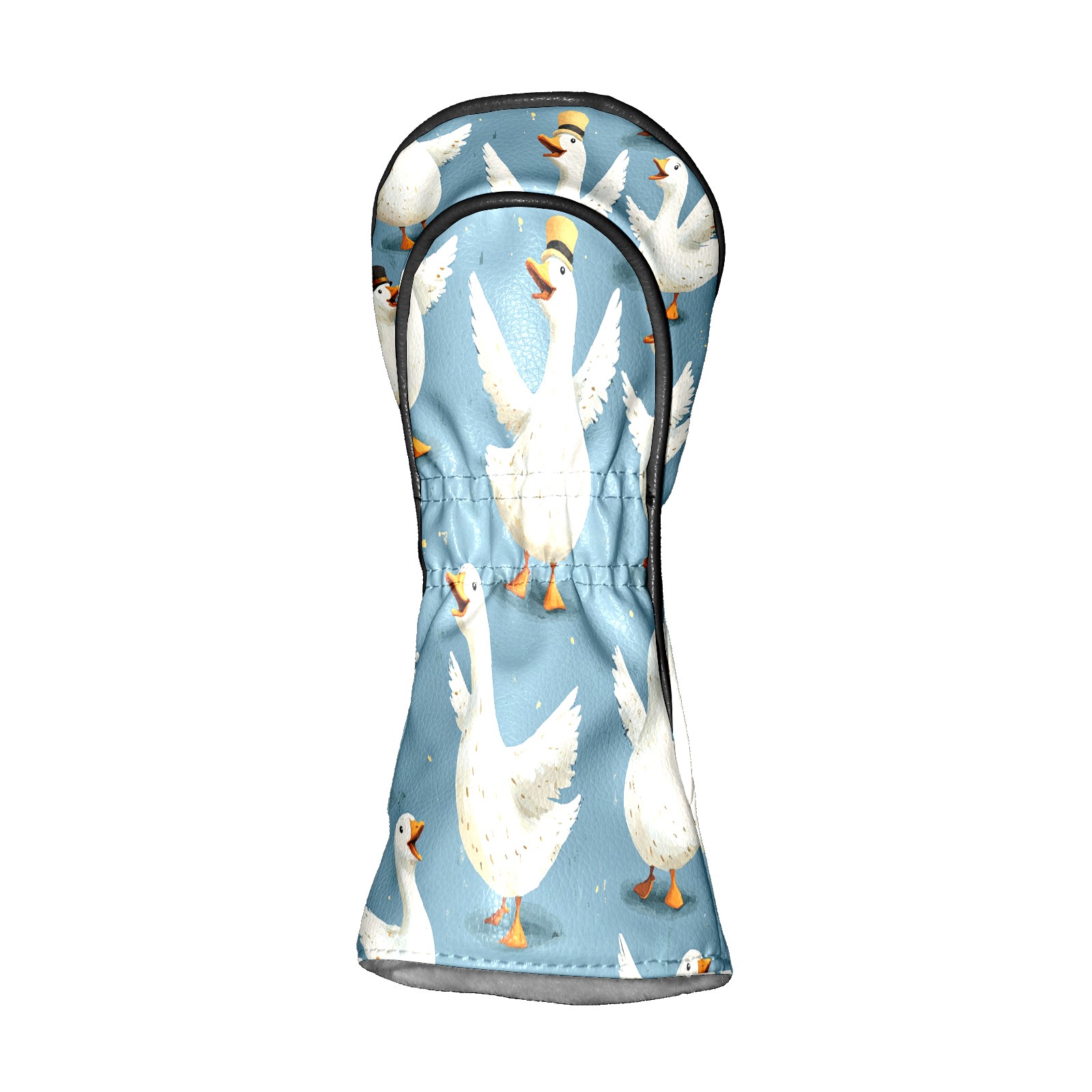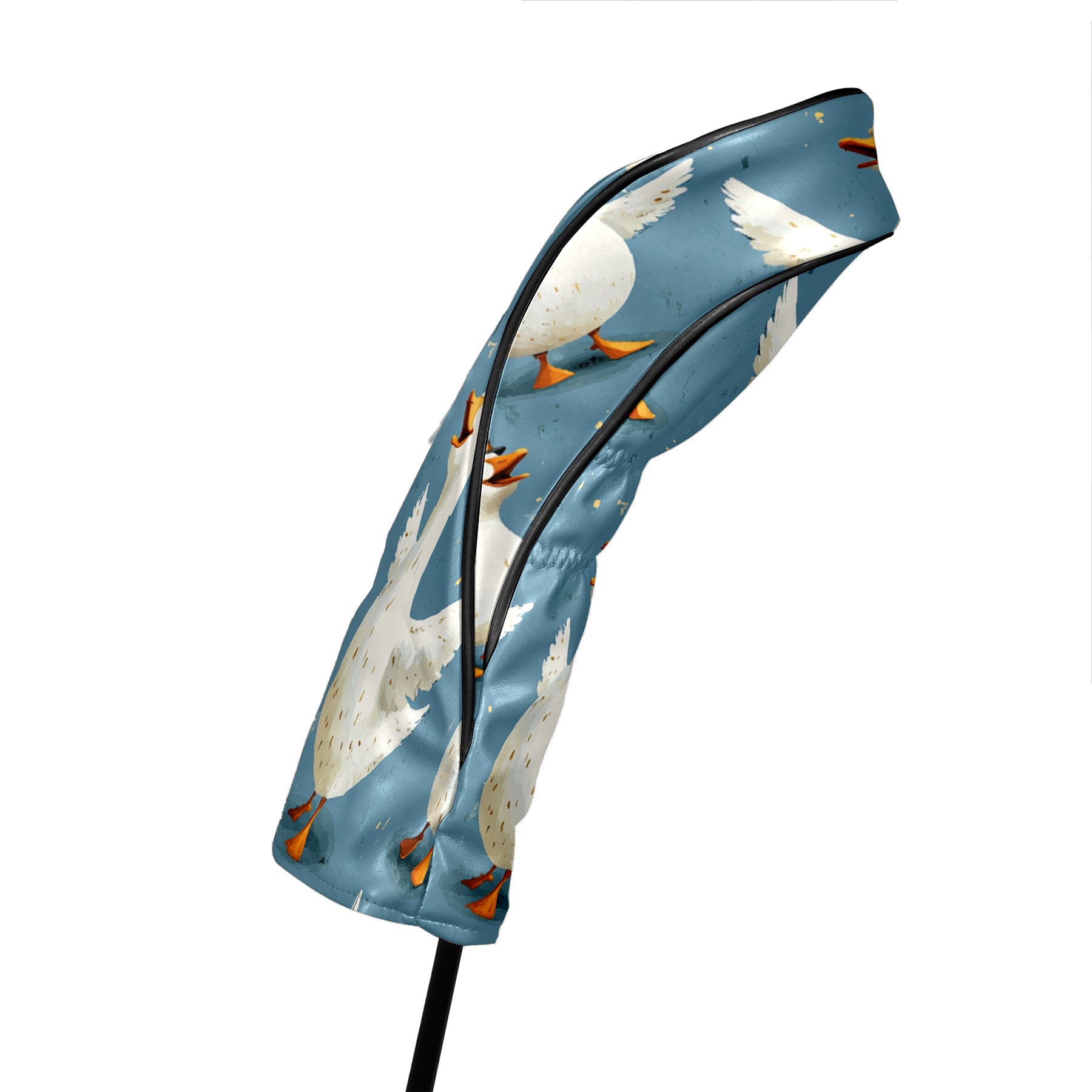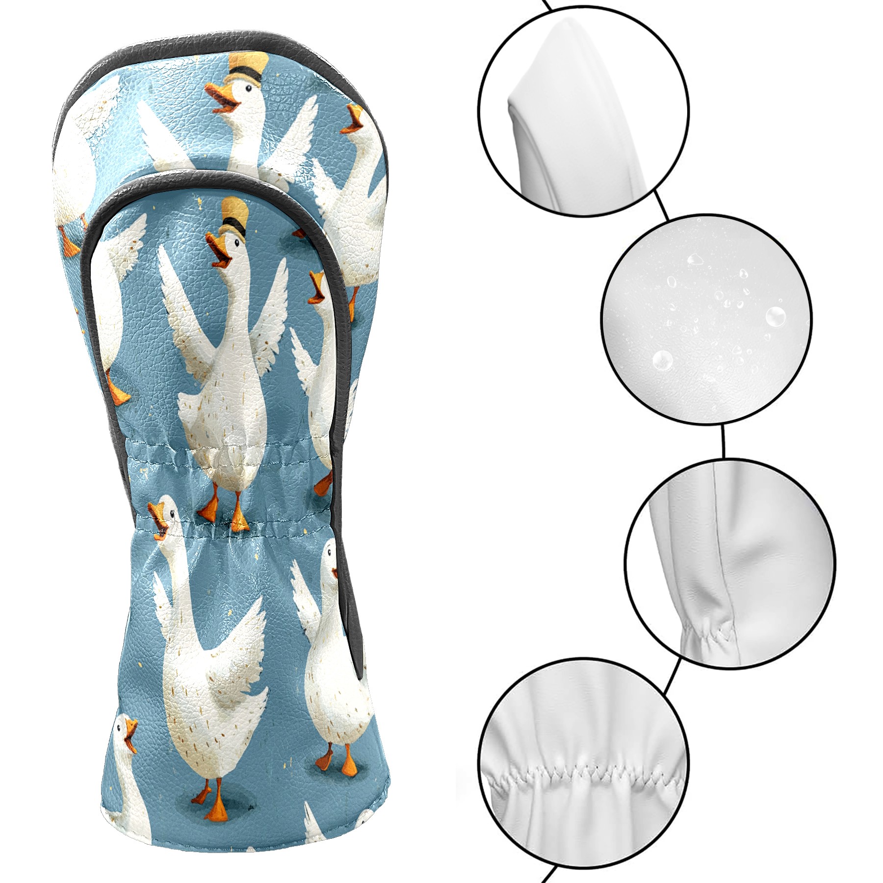 Golf Club Head Covers Blue Background Silly Geese Design for Driver & Hybrid, Waterproof PU Leather with Plush Velvet Lining, Scratch Protection & Secure Fit, Ideal Golf Gift for Men Women