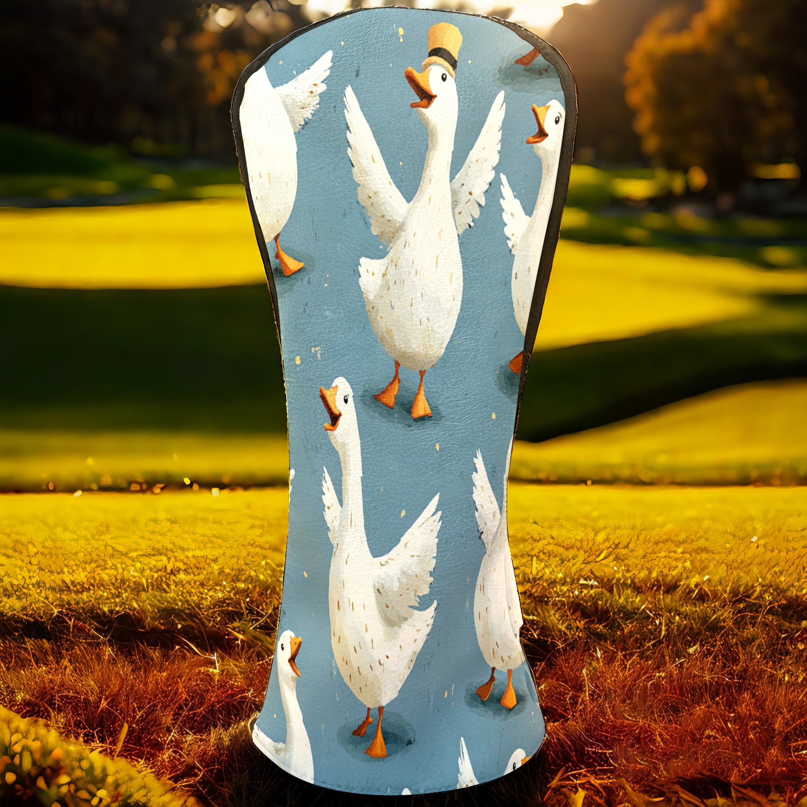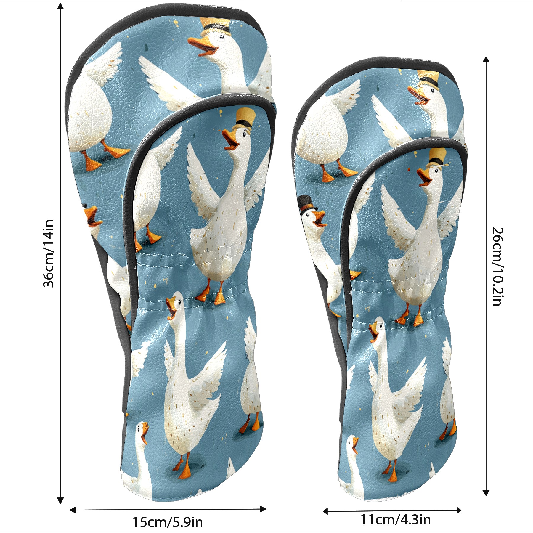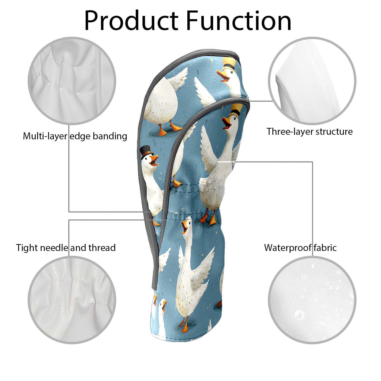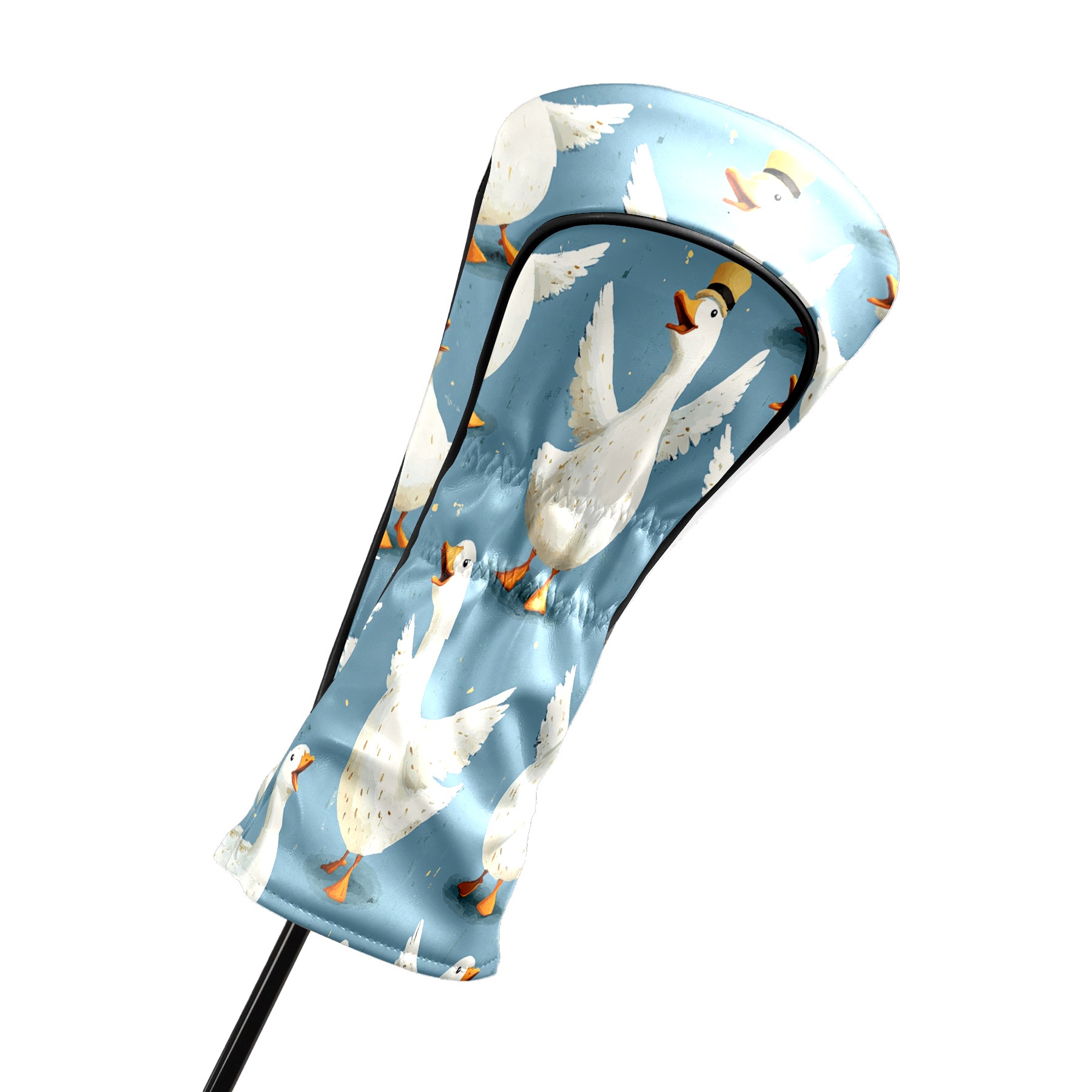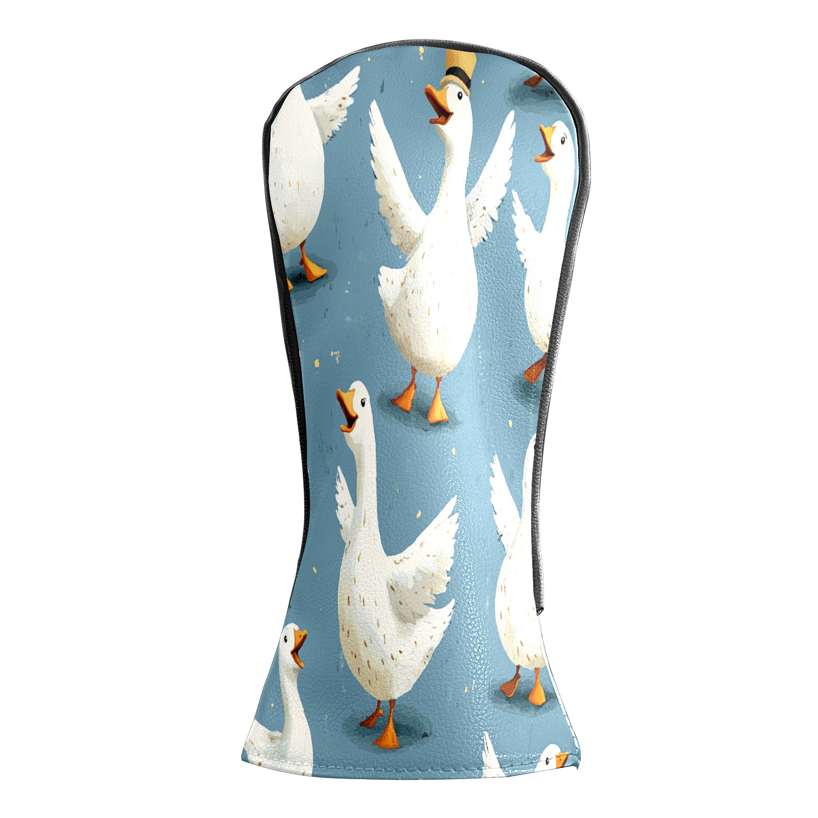 Golf Club Head Covers Blue Background Silly Geese Design for Driver & Hybrid, Waterproof PU Leather with Plush Velvet Lining, Scratch Protection & Secure Fit, Ideal Golf Gift for Men Women