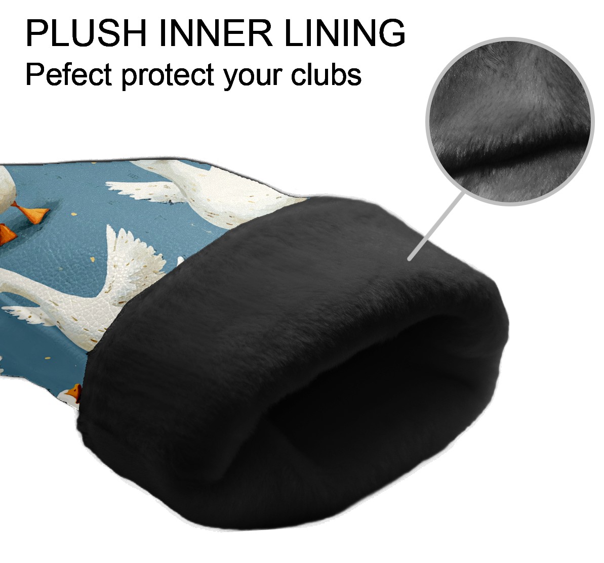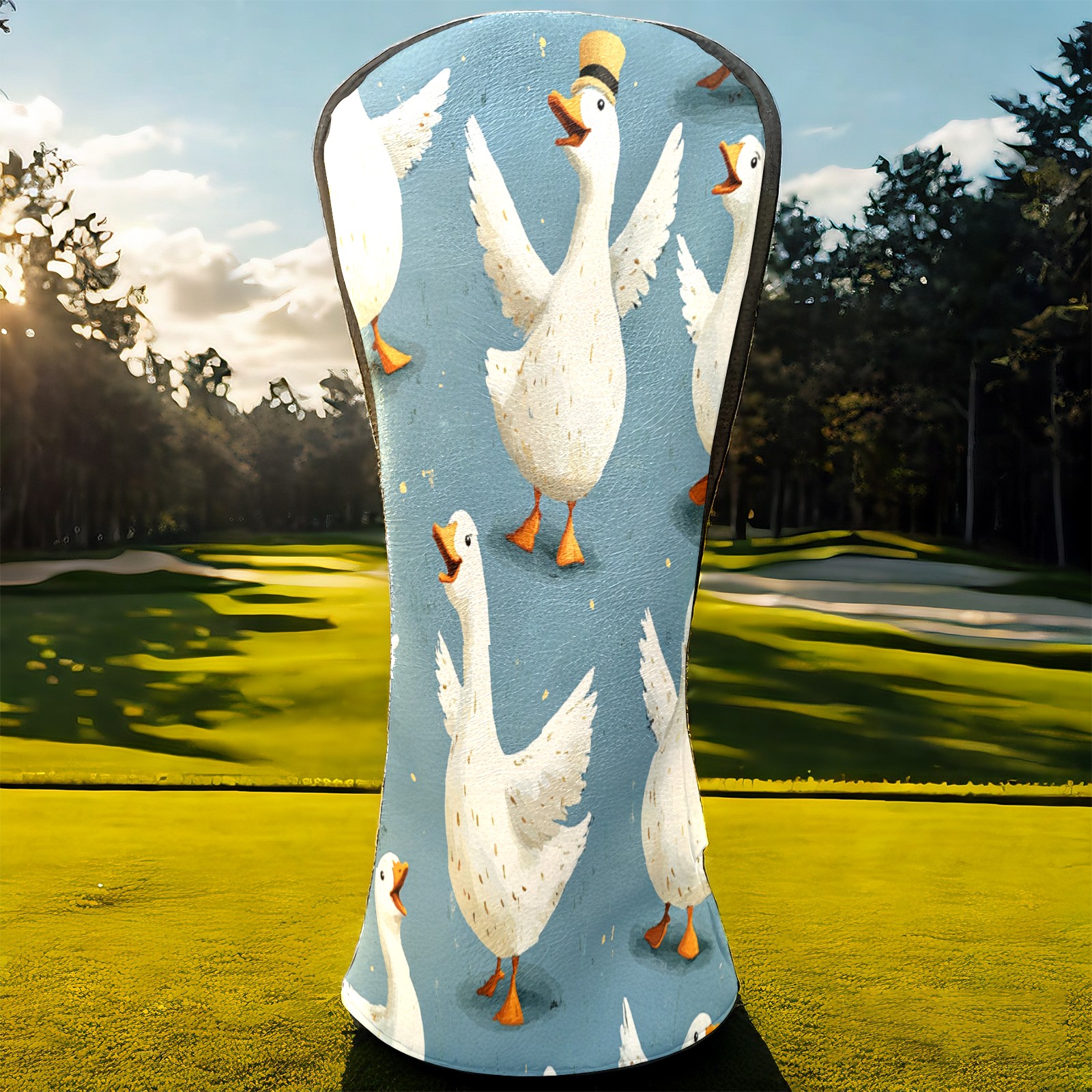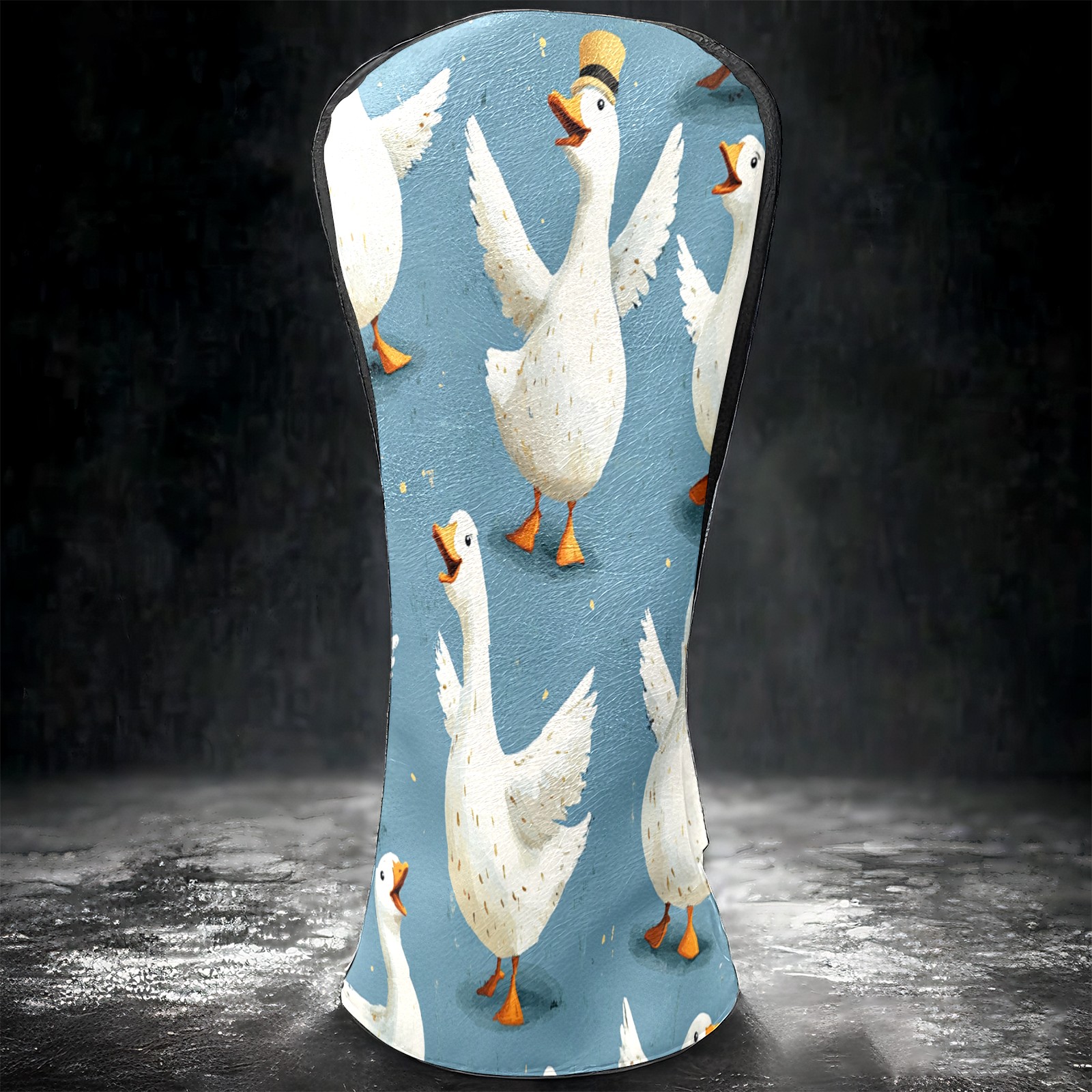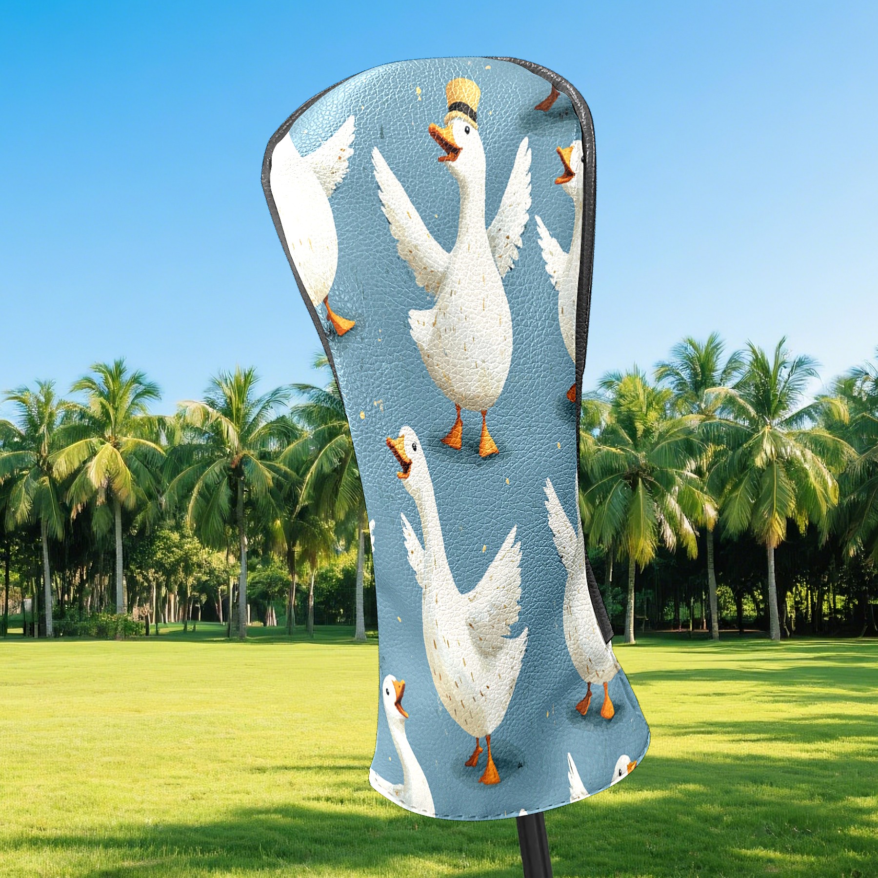 Golf Club Head Covers Blue Background Silly Geese Design for Driver & Hybrid, Waterproof PU Leather with Plush Velvet Lining, Scratch Protection & Secure Fit, Ideal Golf Gift for Men Women
