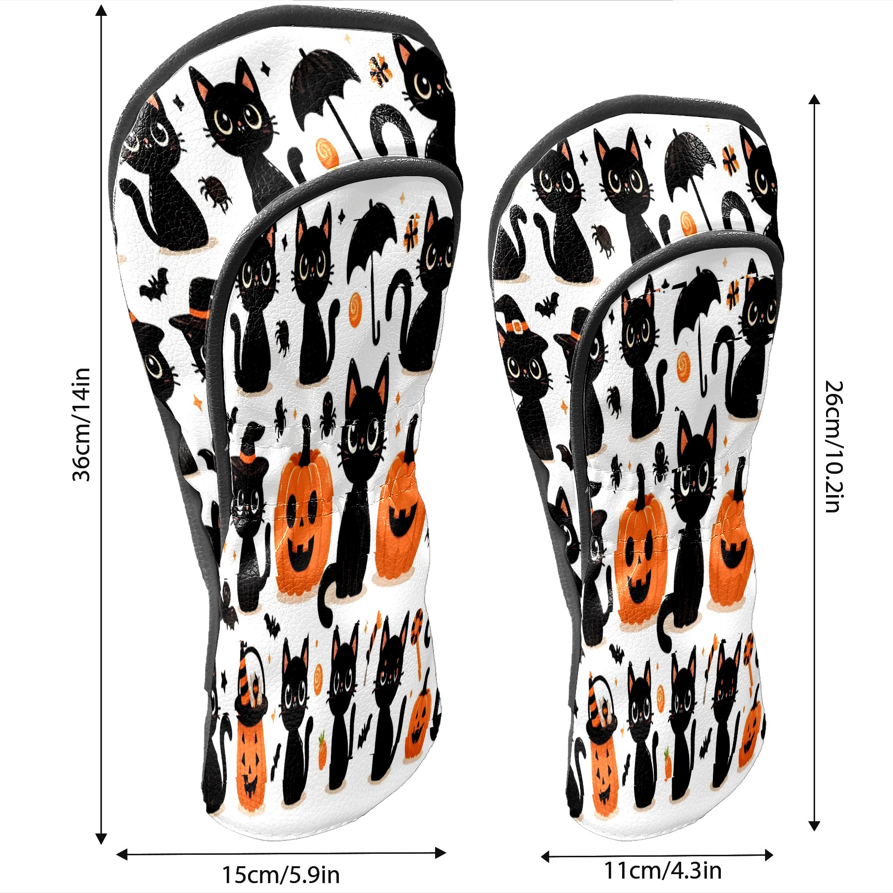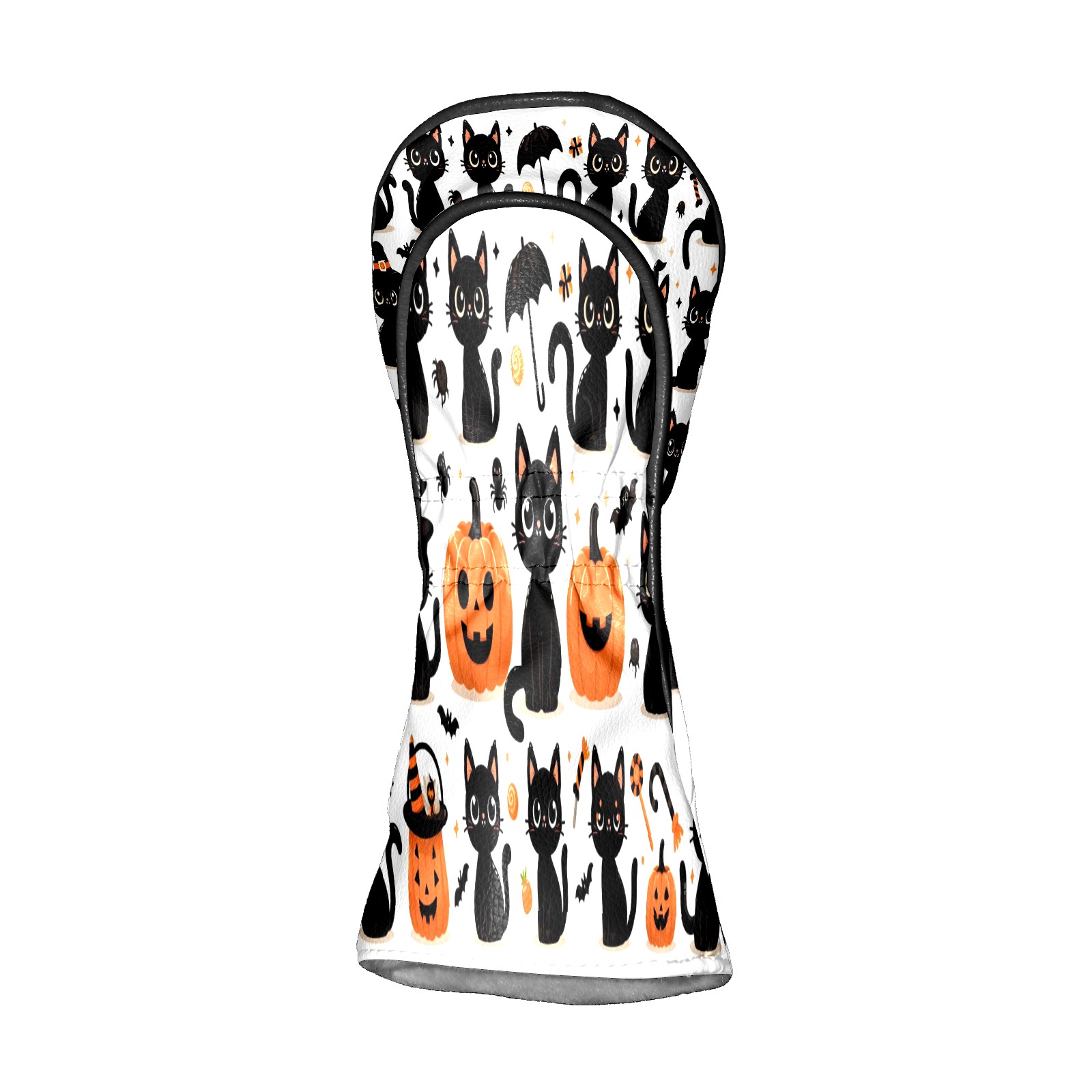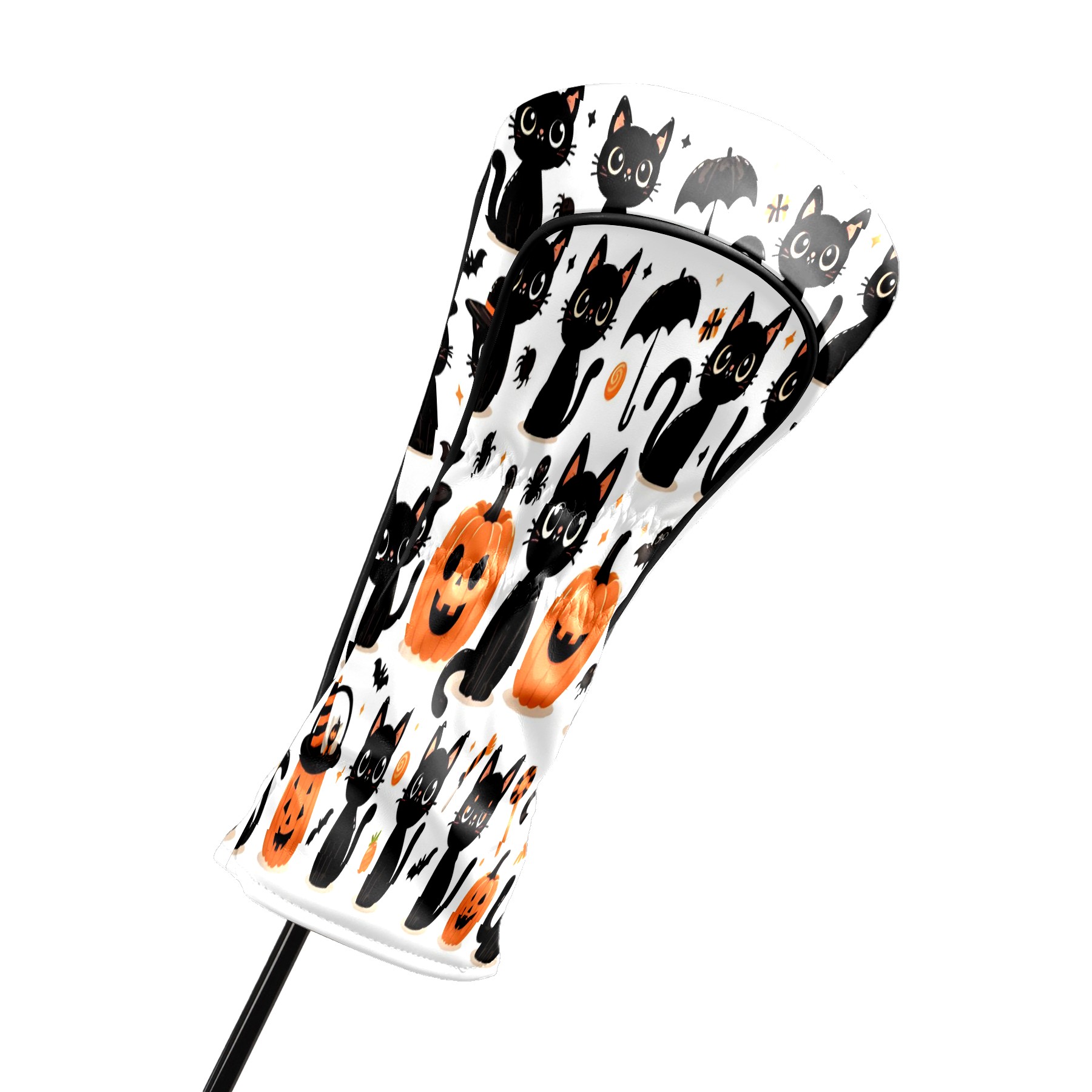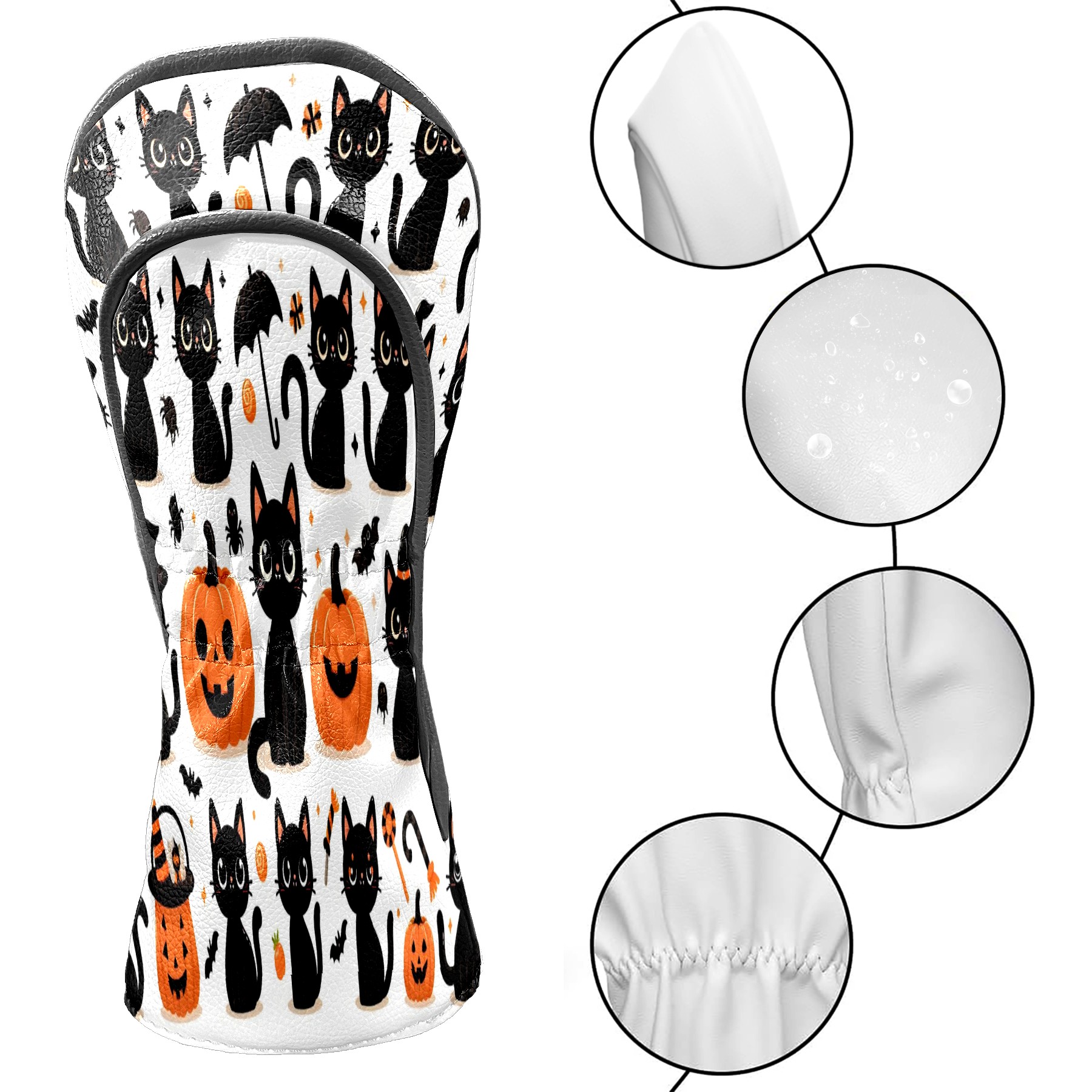 Golf Club Head Covers Halloween Black Cats Pumpkins Horizontal Design for Driver & Hybrid, Waterproof PU Leather with Plush Velvet Lining, Scratch Protection & Secure Fit, Ideal Golf Gift for Men Women