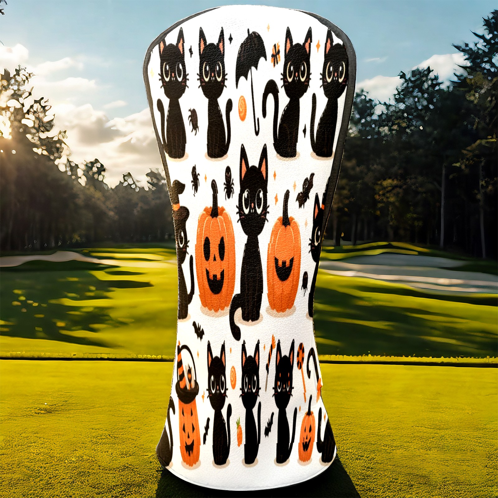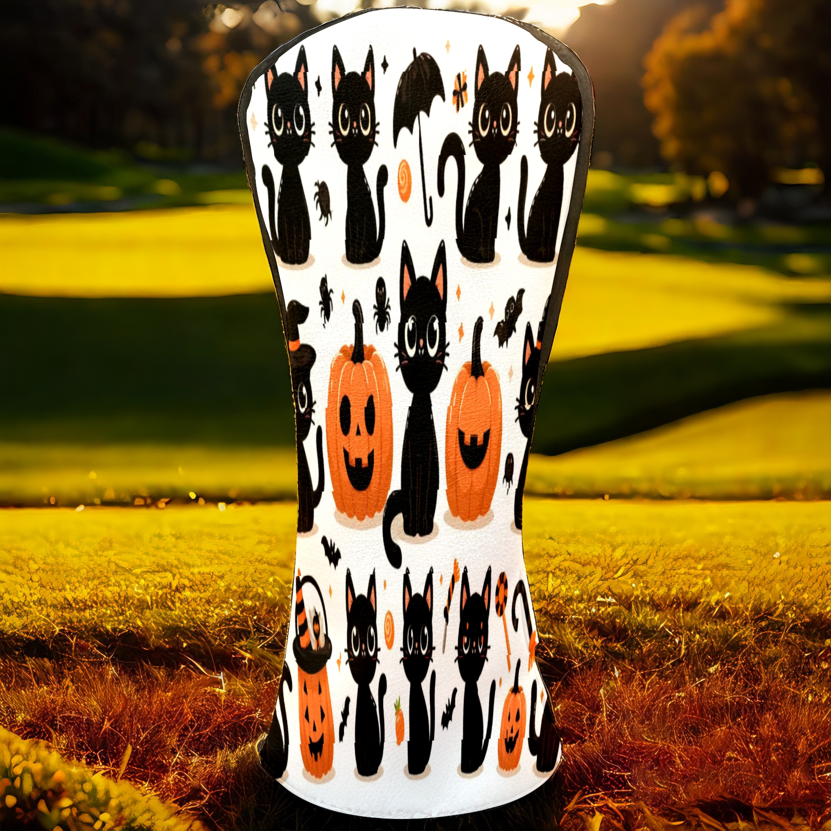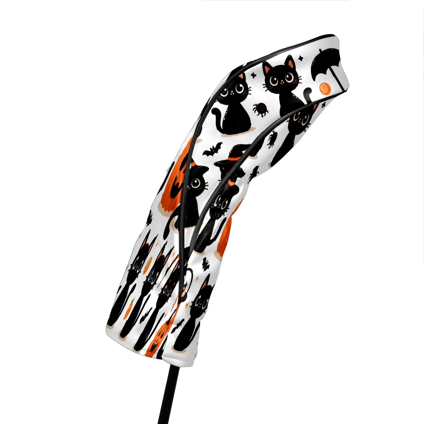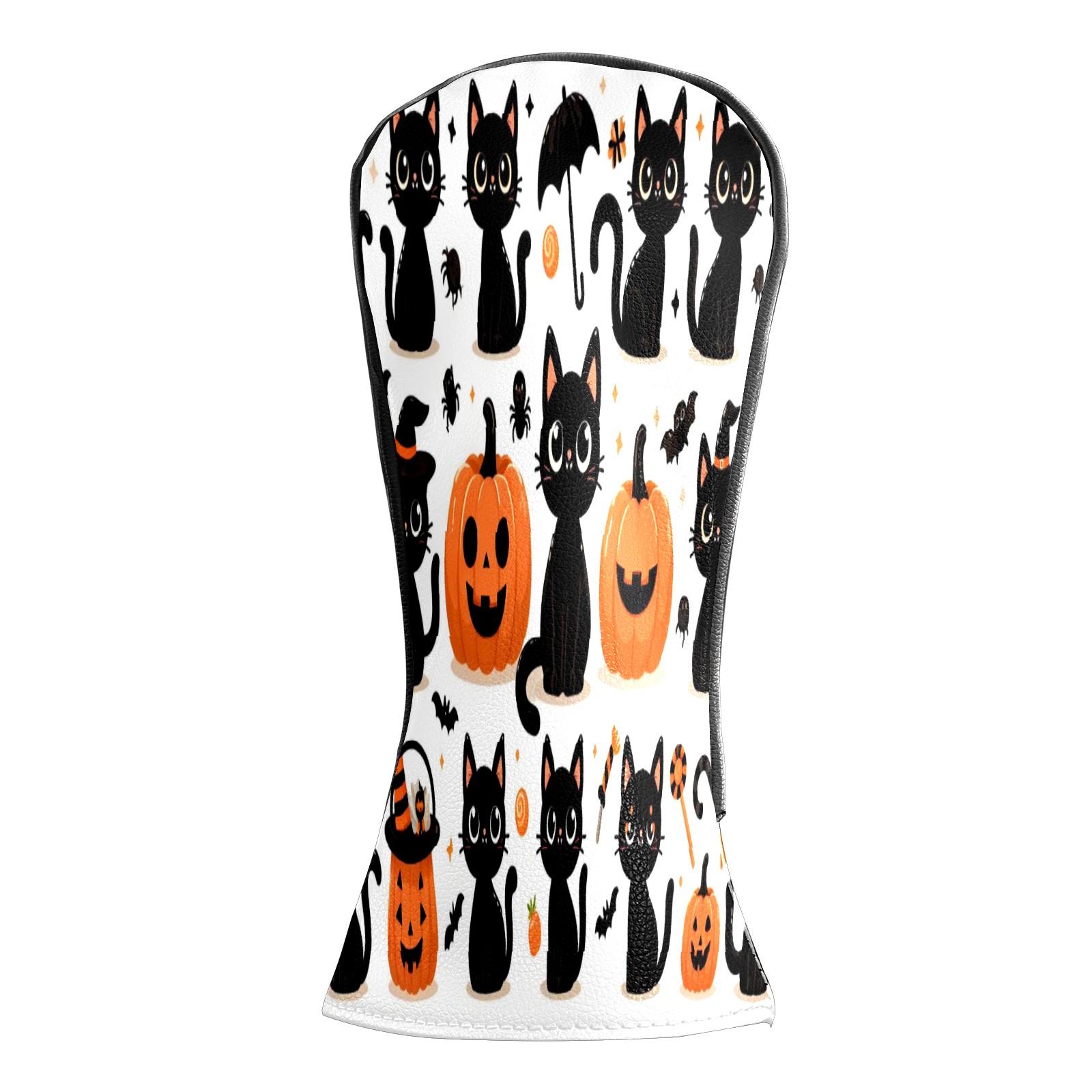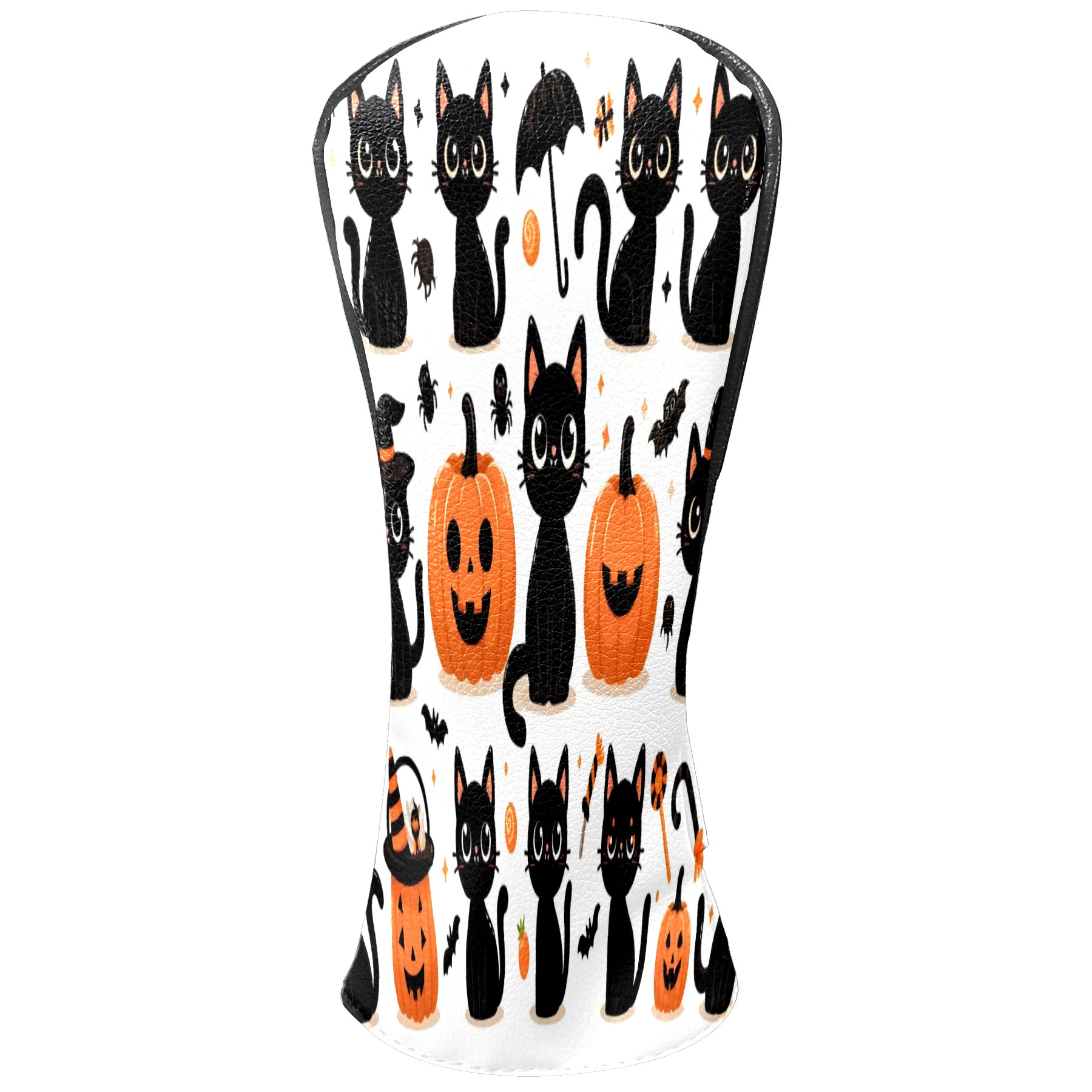 Golf Club Head Covers Halloween Black Cats Pumpkins Horizontal Design for Driver & Hybrid, Waterproof PU Leather with Plush Velvet Lining, Scratch Protection & Secure Fit, Ideal Golf Gift for Men Women