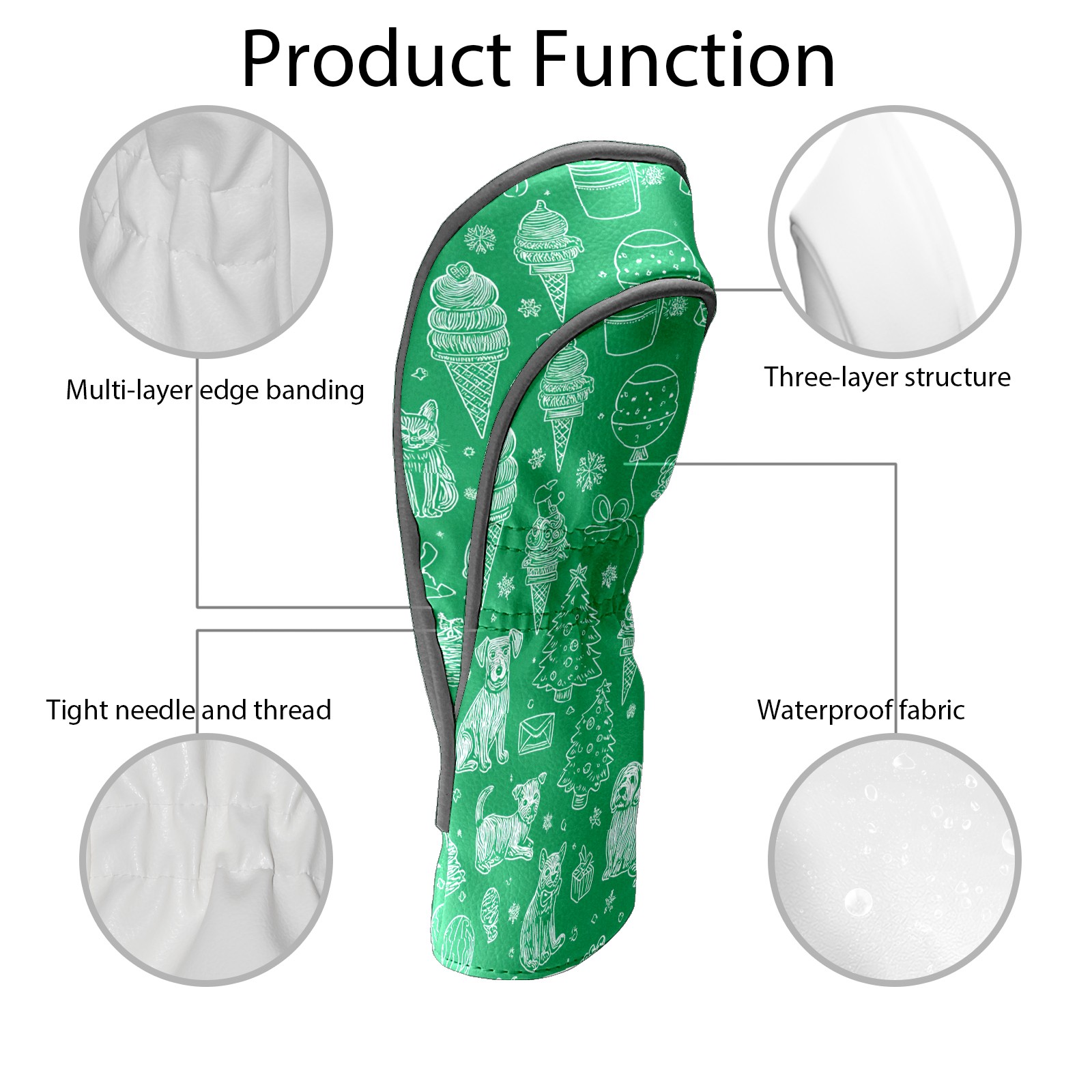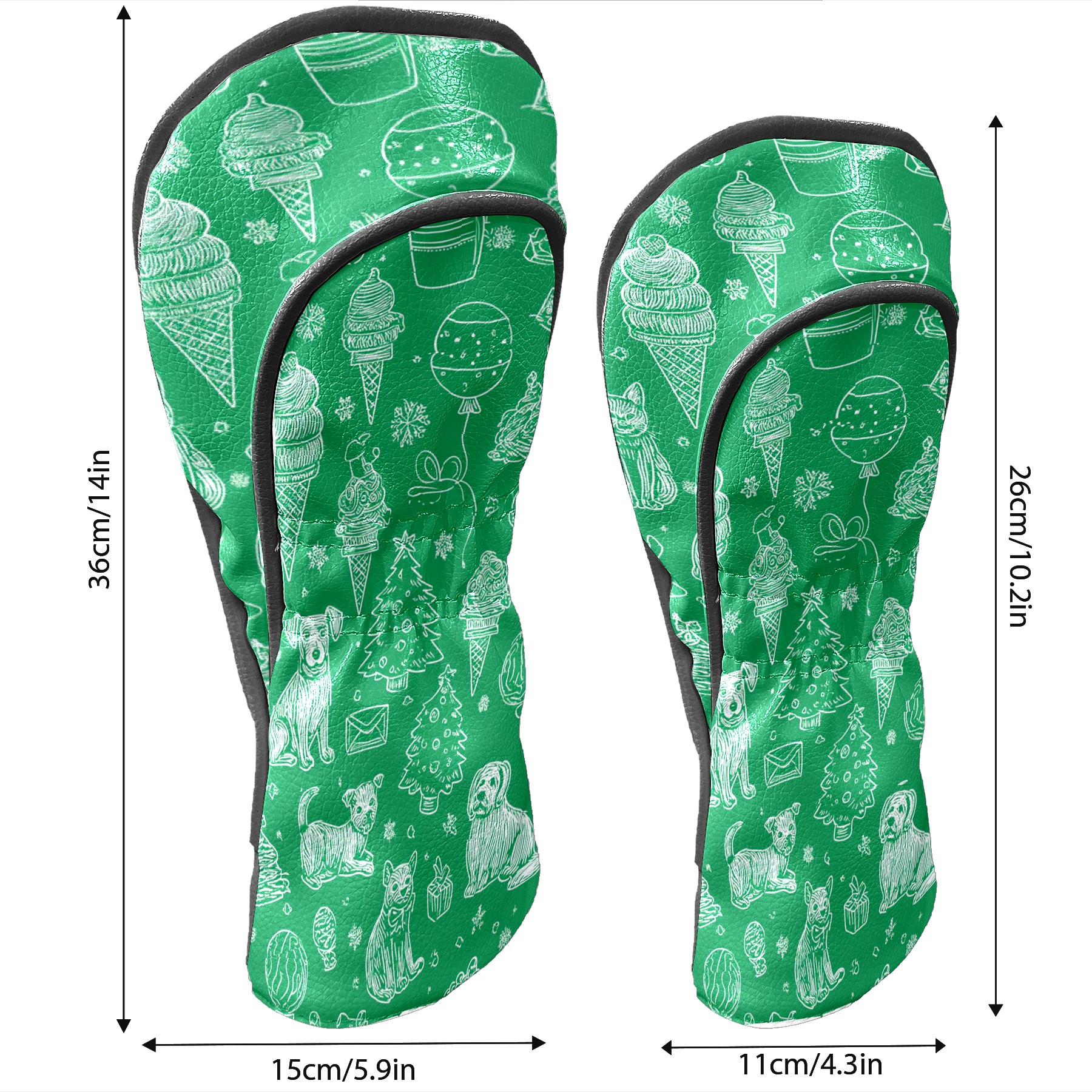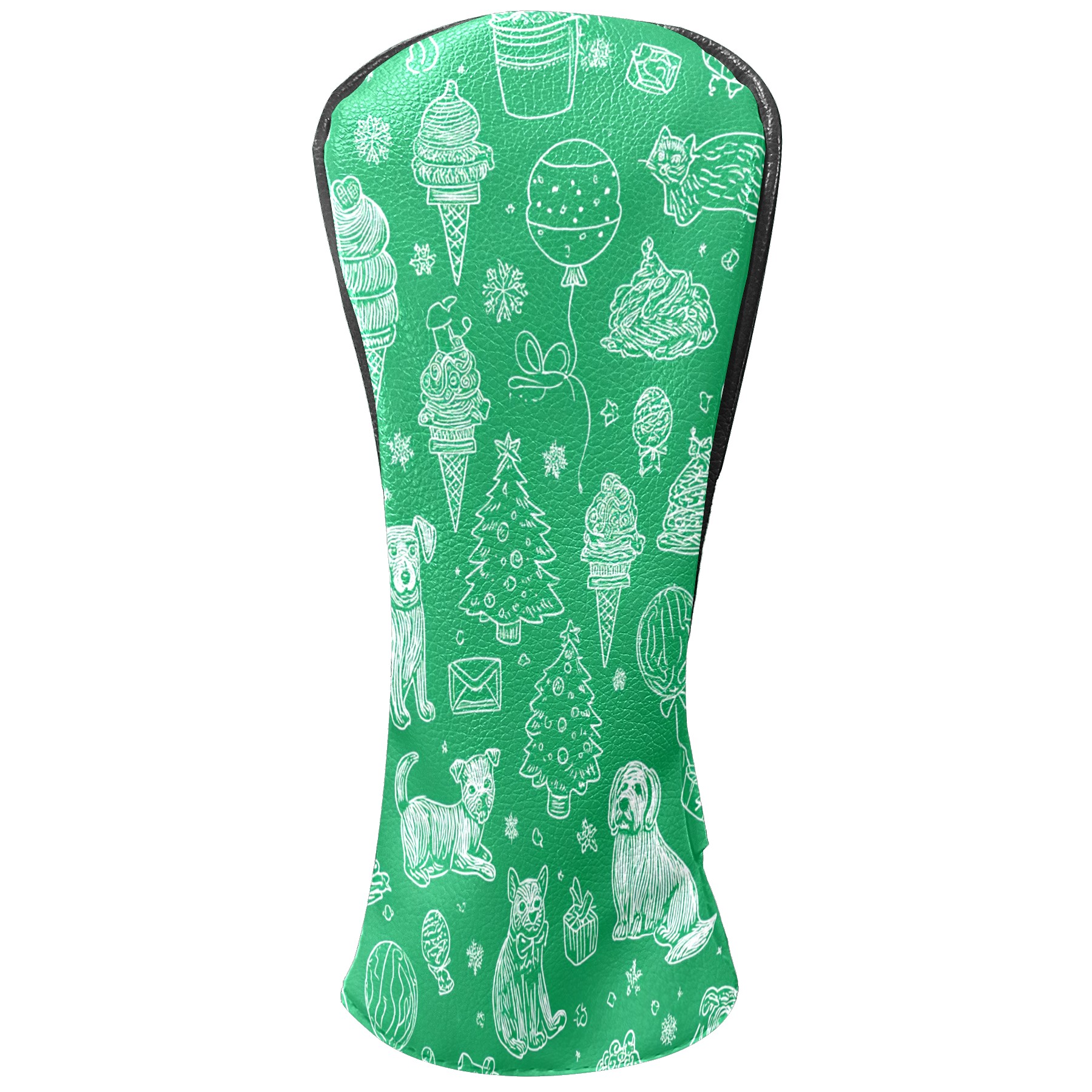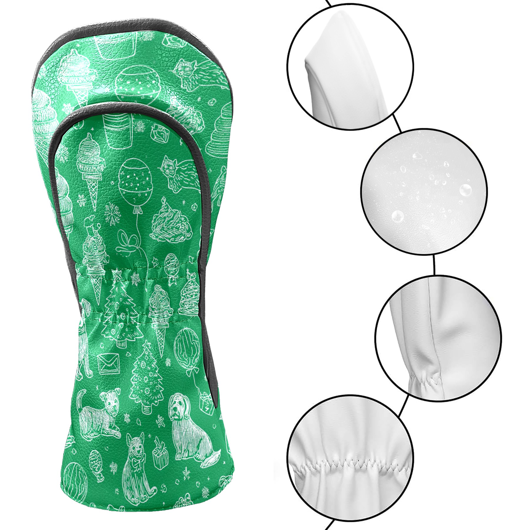 Golf Club Head Covers Green Background Pet Christmas Design for Driver & Hybrid, Waterproof PU Leather with Plush Velvet Lining, Scratch Protection & Secure Fit, Ideal Golf Gift for Men Women