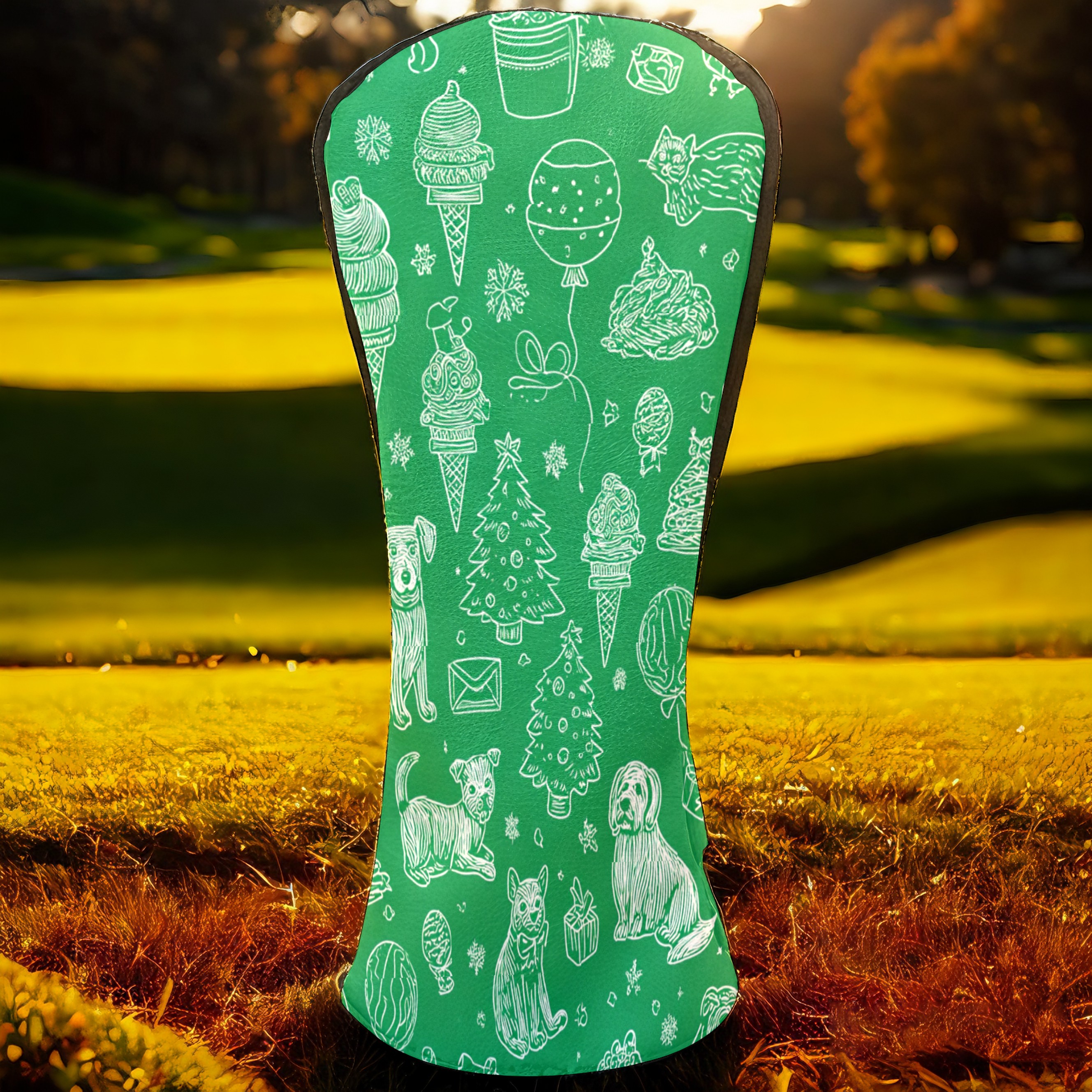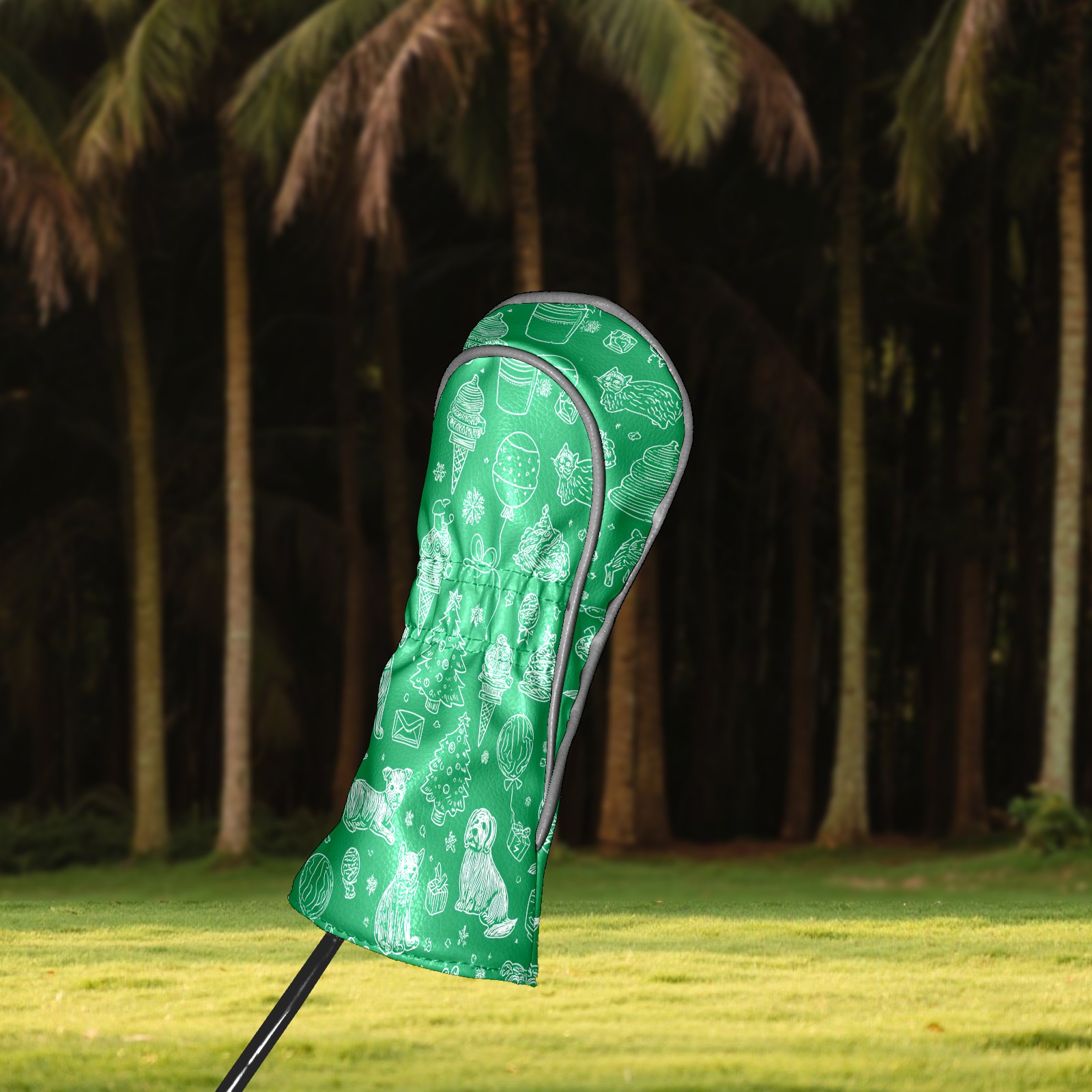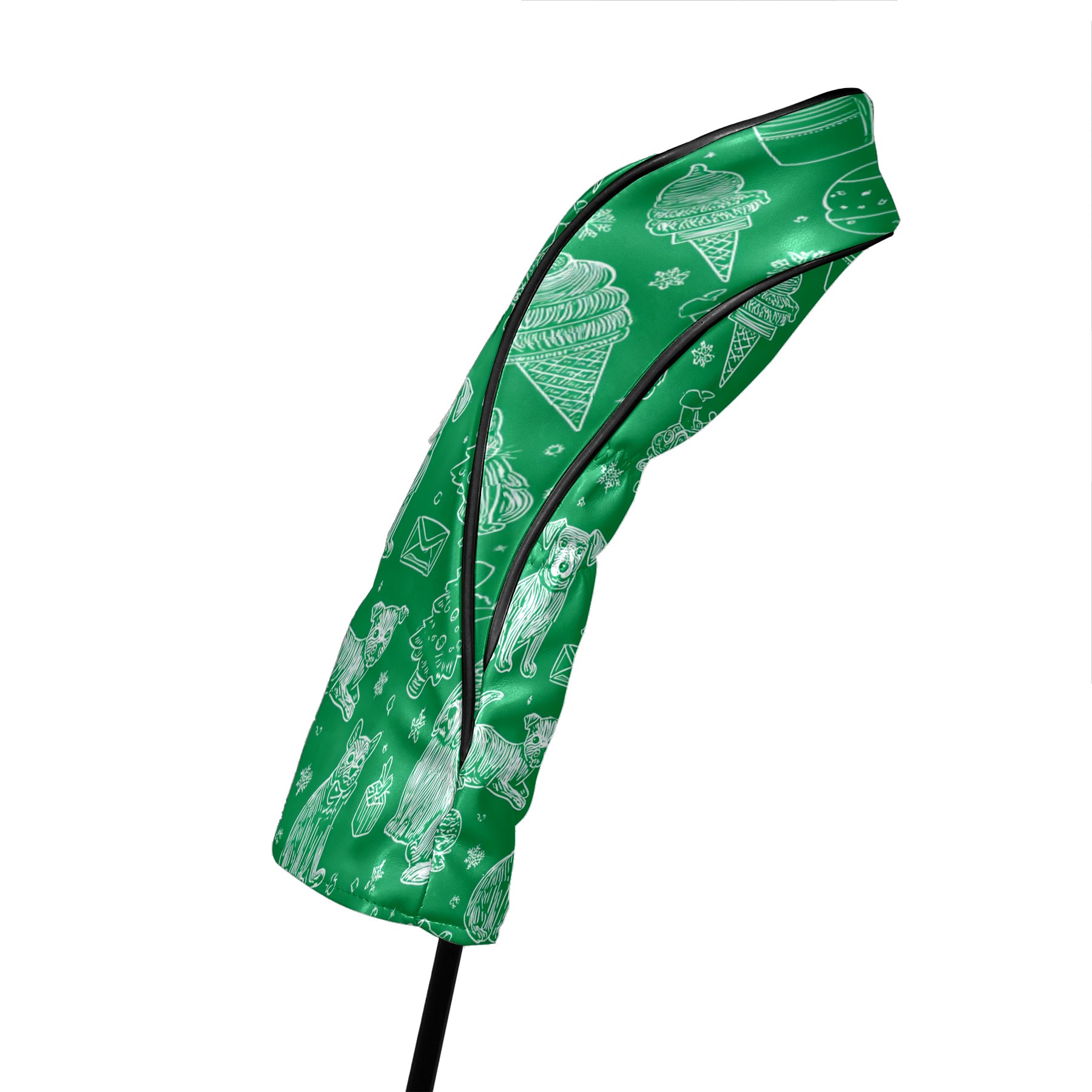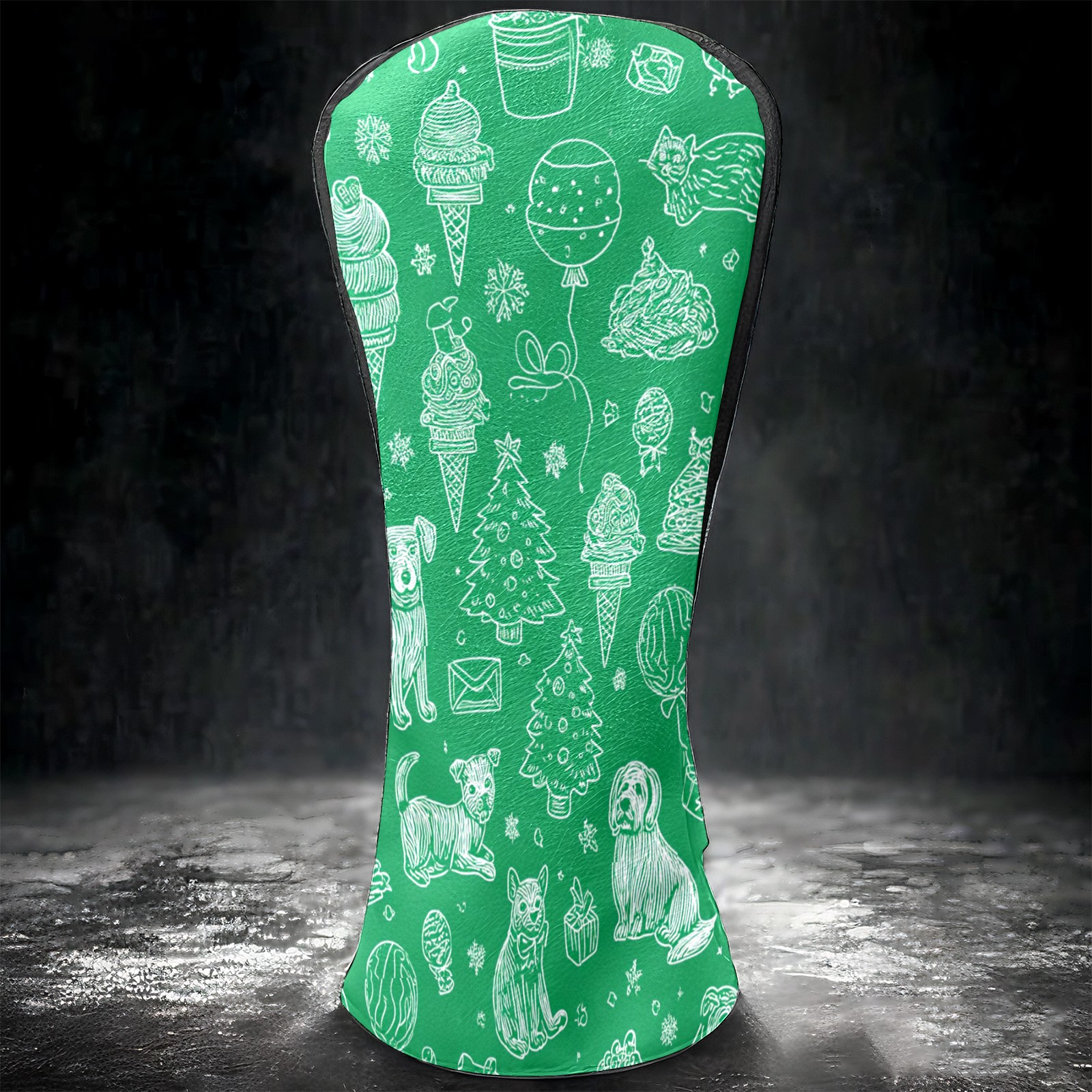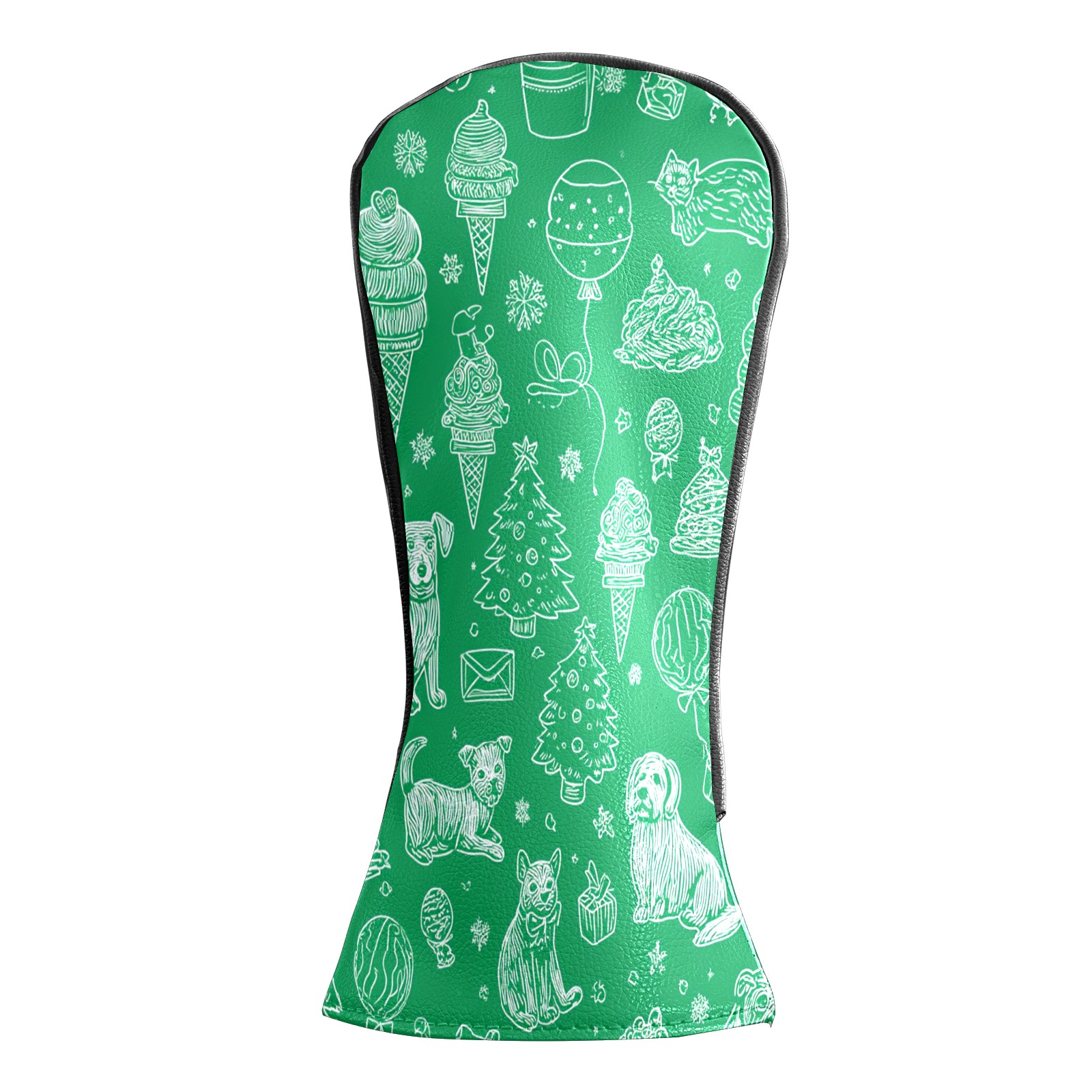 Golf Club Head Covers Green Background Pet Christmas Design for Driver & Hybrid, Waterproof PU Leather with Plush Velvet Lining, Scratch Protection & Secure Fit, Ideal Golf Gift for Men Women
