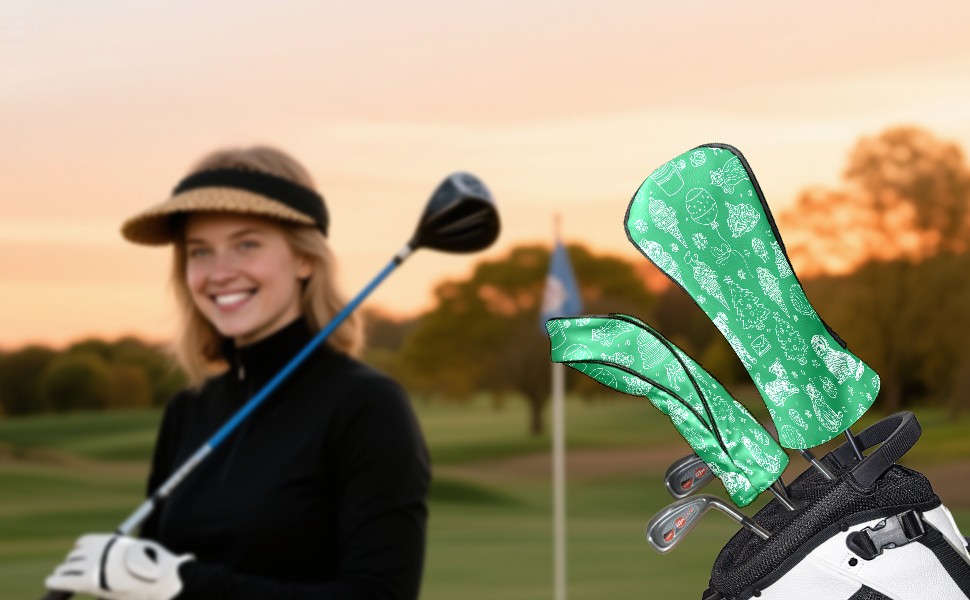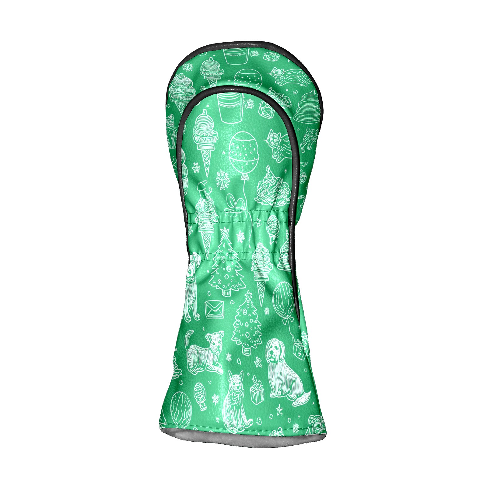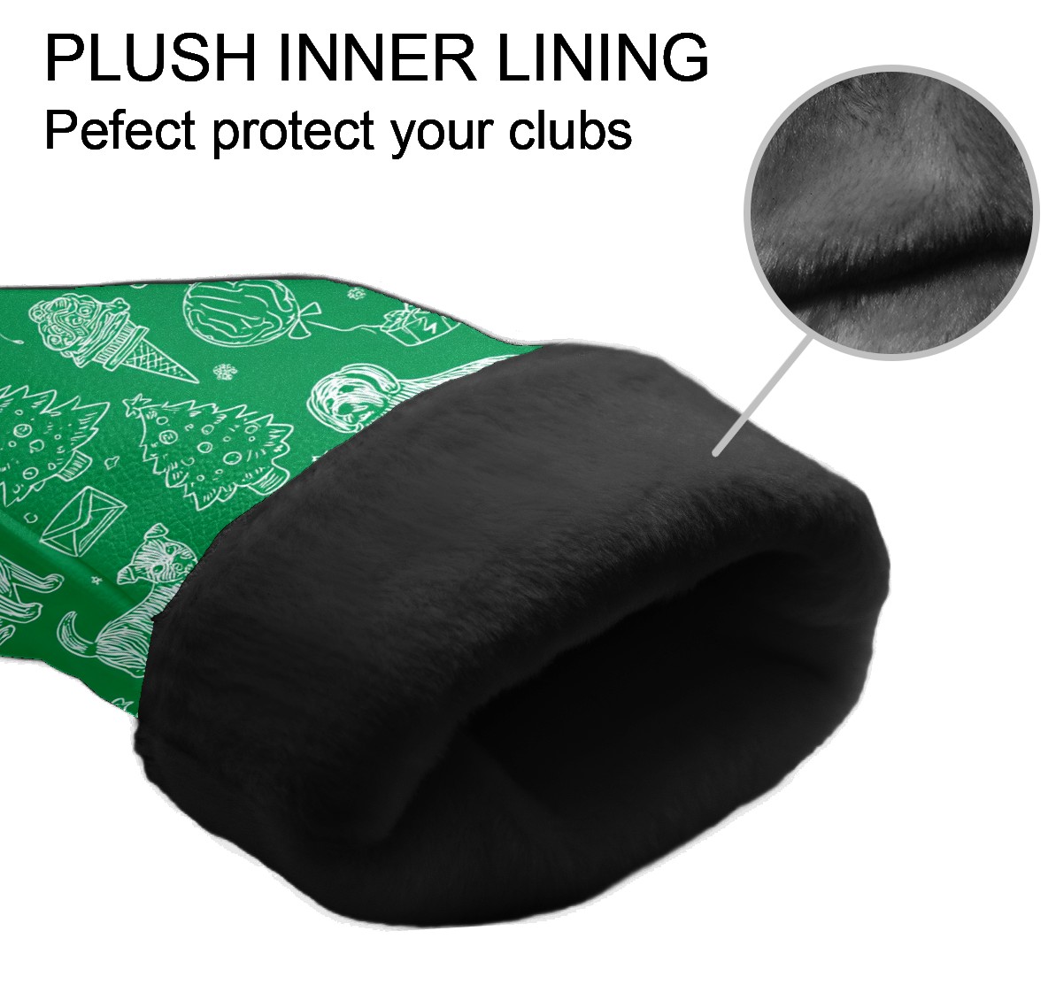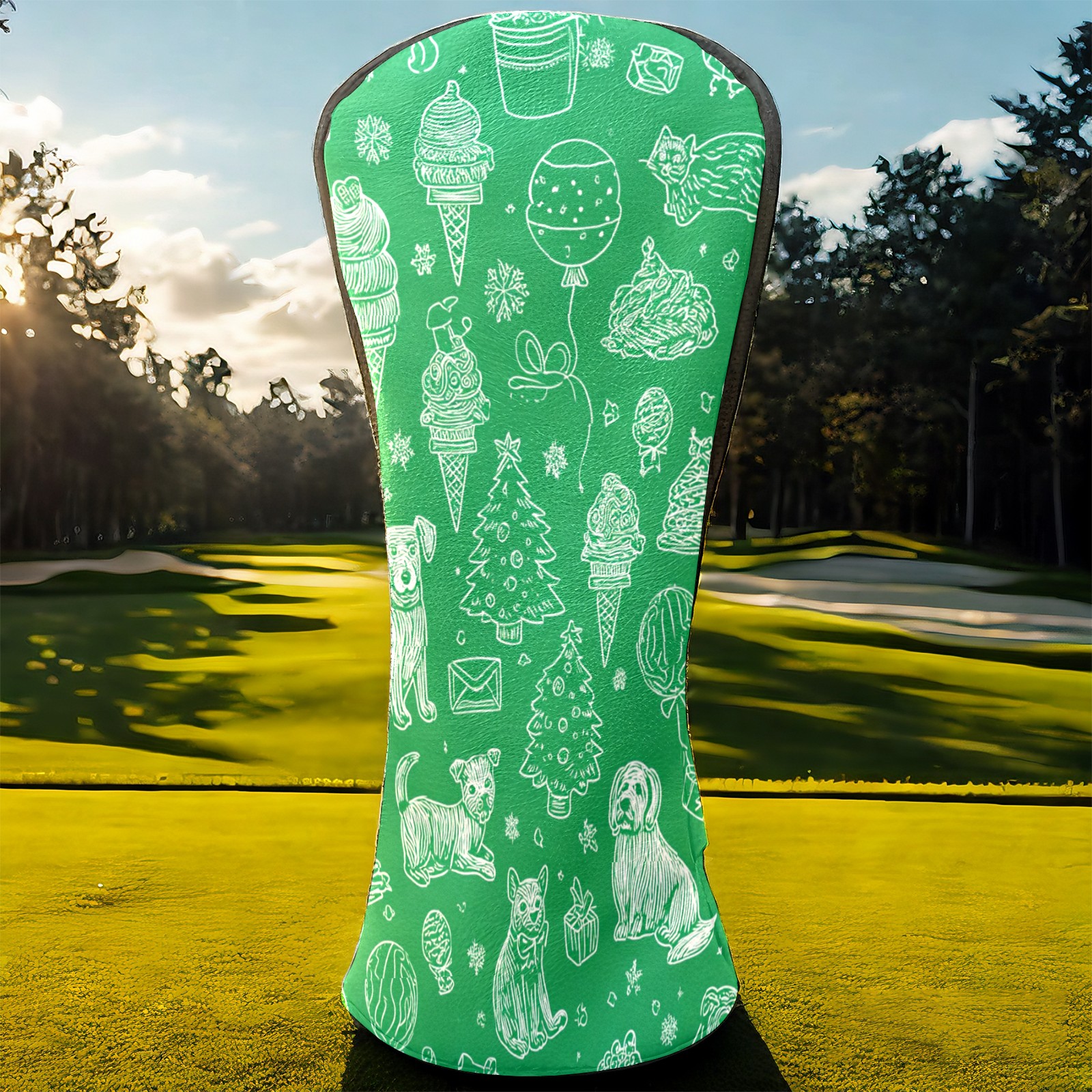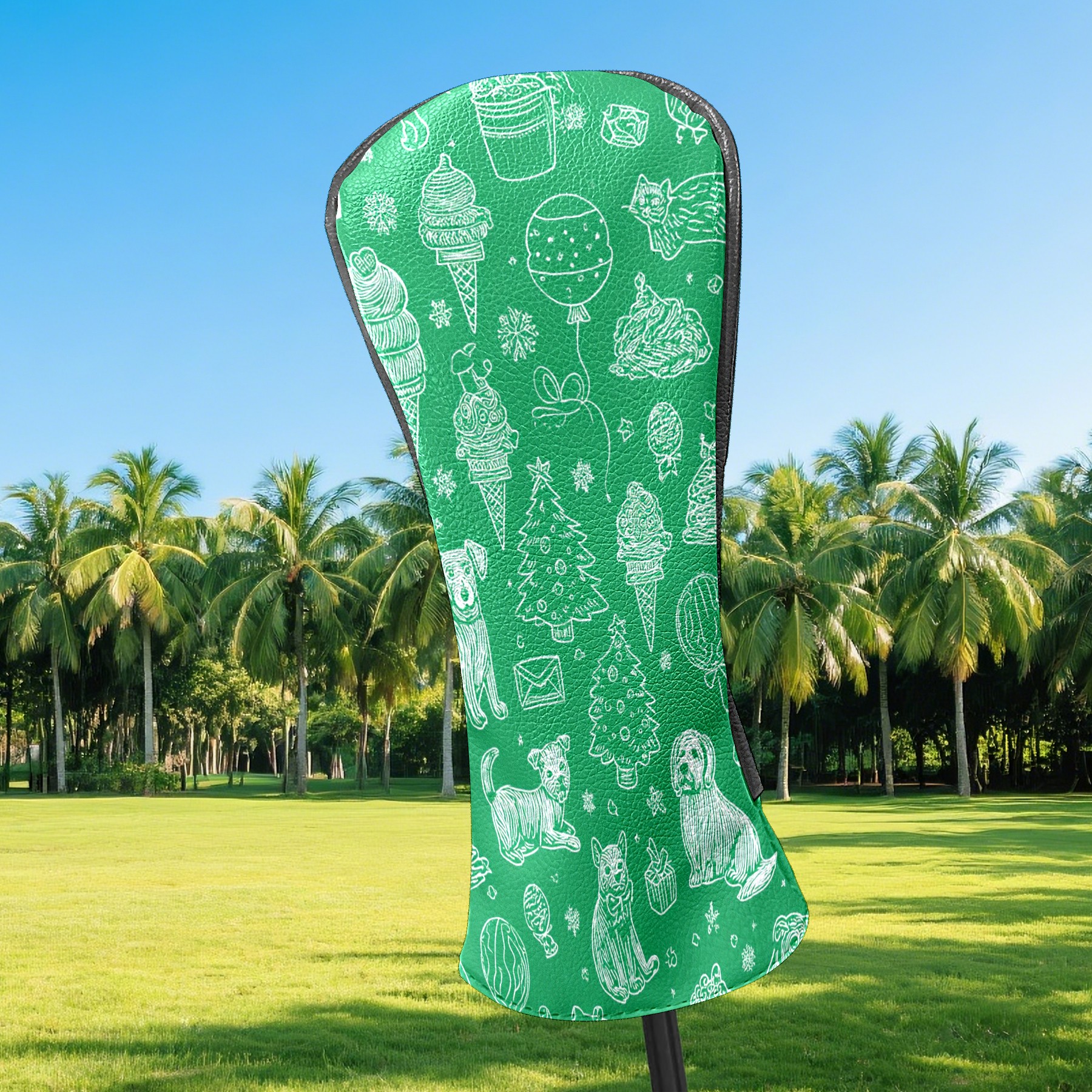 Golf Club Head Covers Green Background Pet Christmas Design for Driver & Hybrid, Waterproof PU Leather with Plush Velvet Lining, Scratch Protection & Secure Fit, Ideal Golf Gift for Men Women