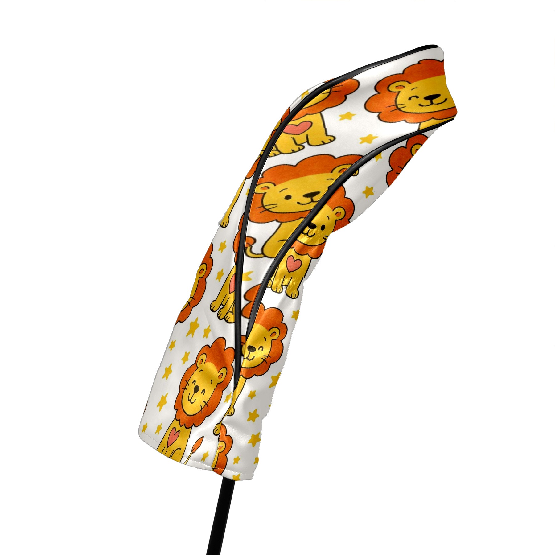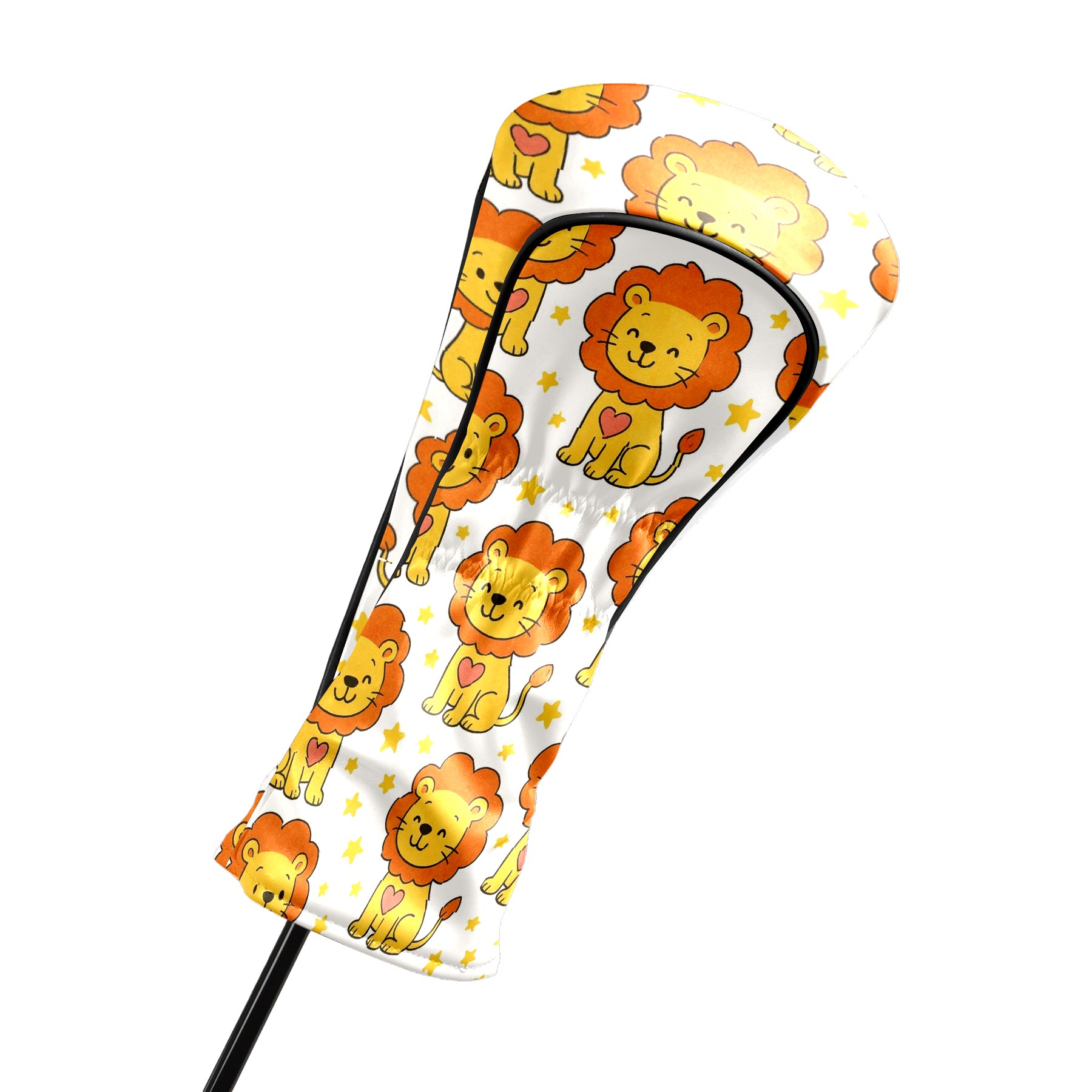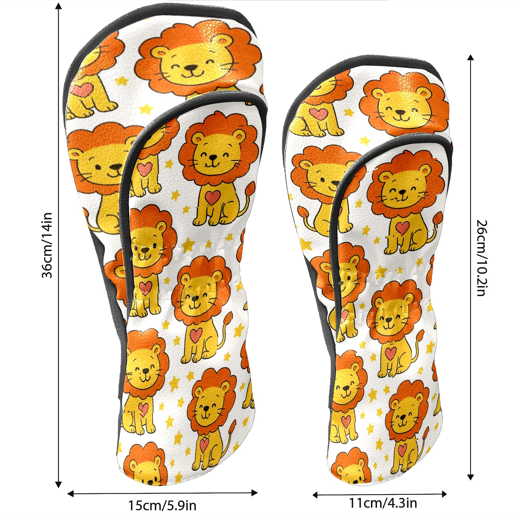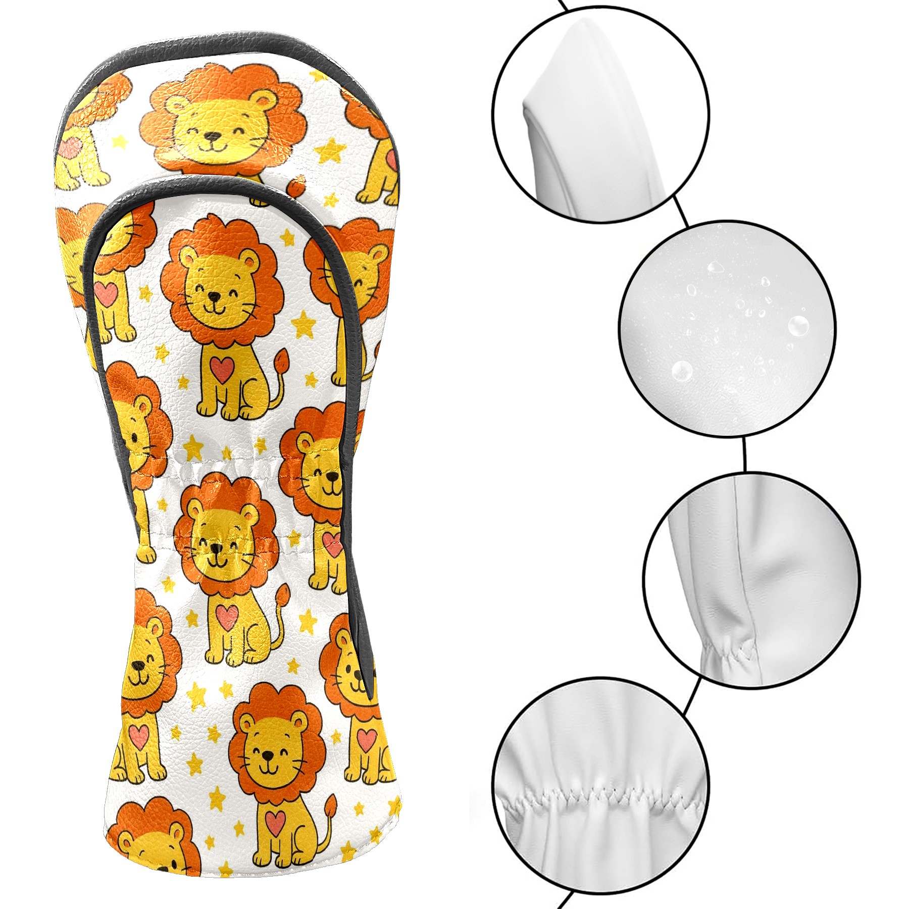 Golf Club Head Covers Yellow Background Lion Group Design for Driver & Hybrid, Waterproof PU Leather with Plush Velvet Lining, Scratch Protection & Secure Fit, Ideal Golf Gift for Men Women