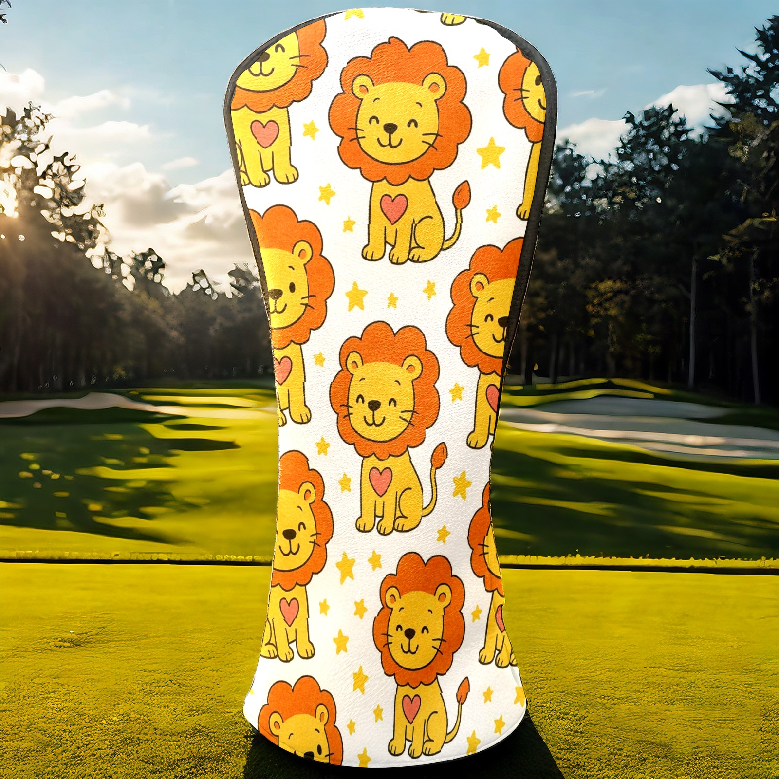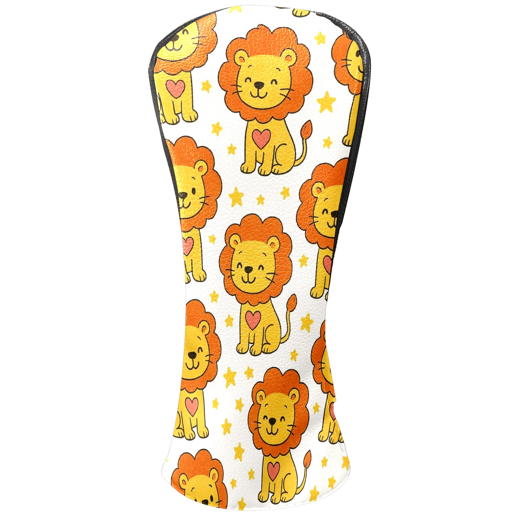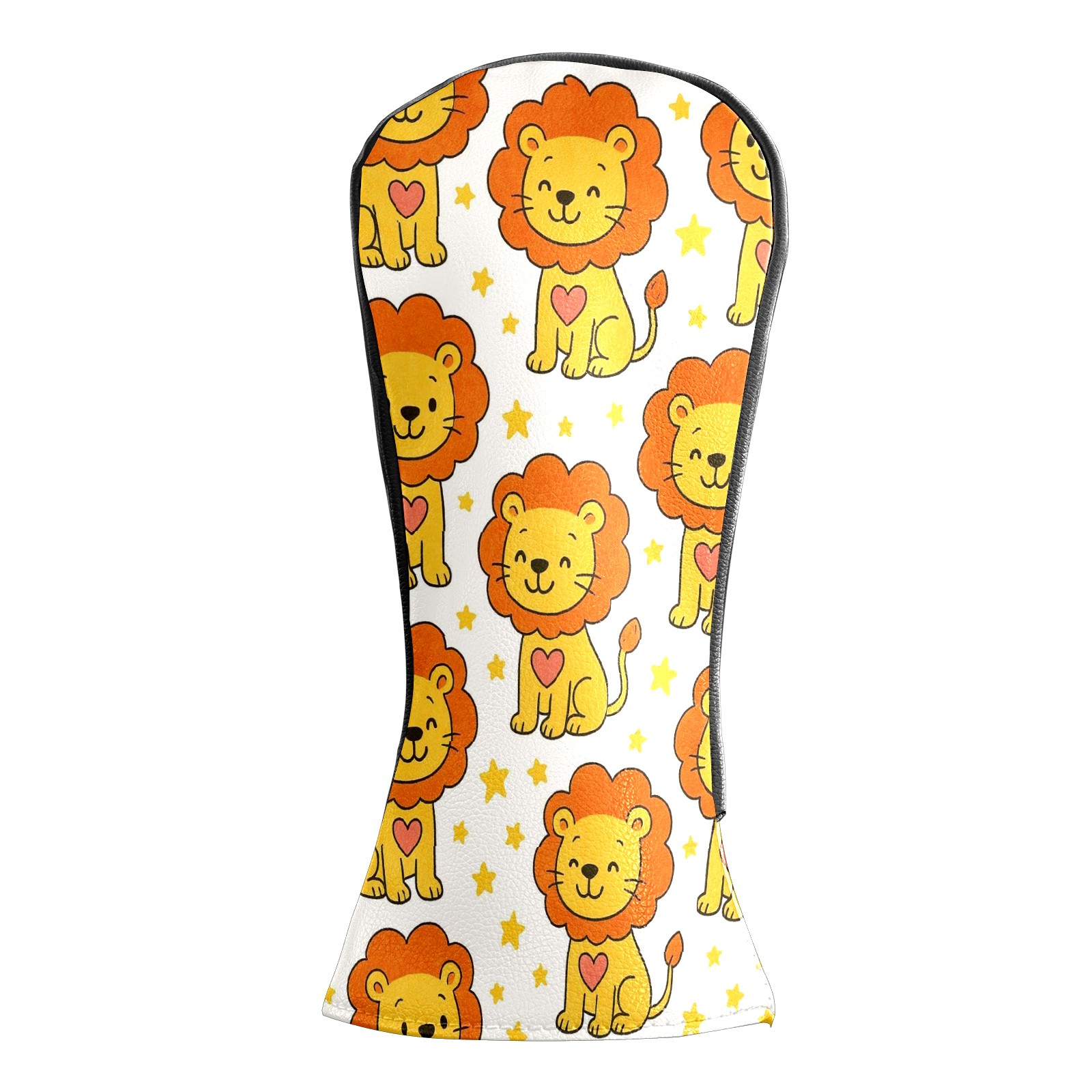 Golf Club Head Covers Yellow Background Lion Group Design for Driver & Hybrid, Waterproof PU Leather with Plush Velvet Lining, Scratch Protection & Secure Fit, Ideal Golf Gift for Men Women