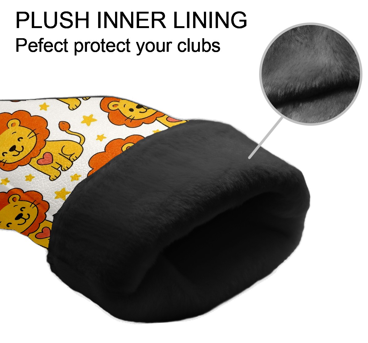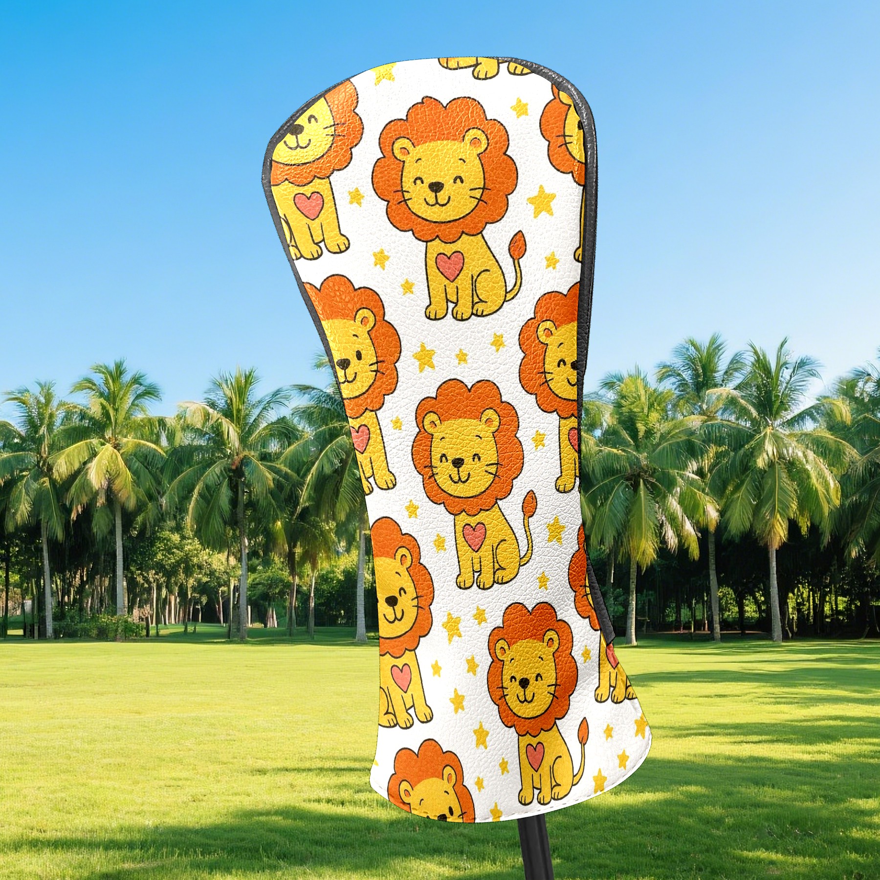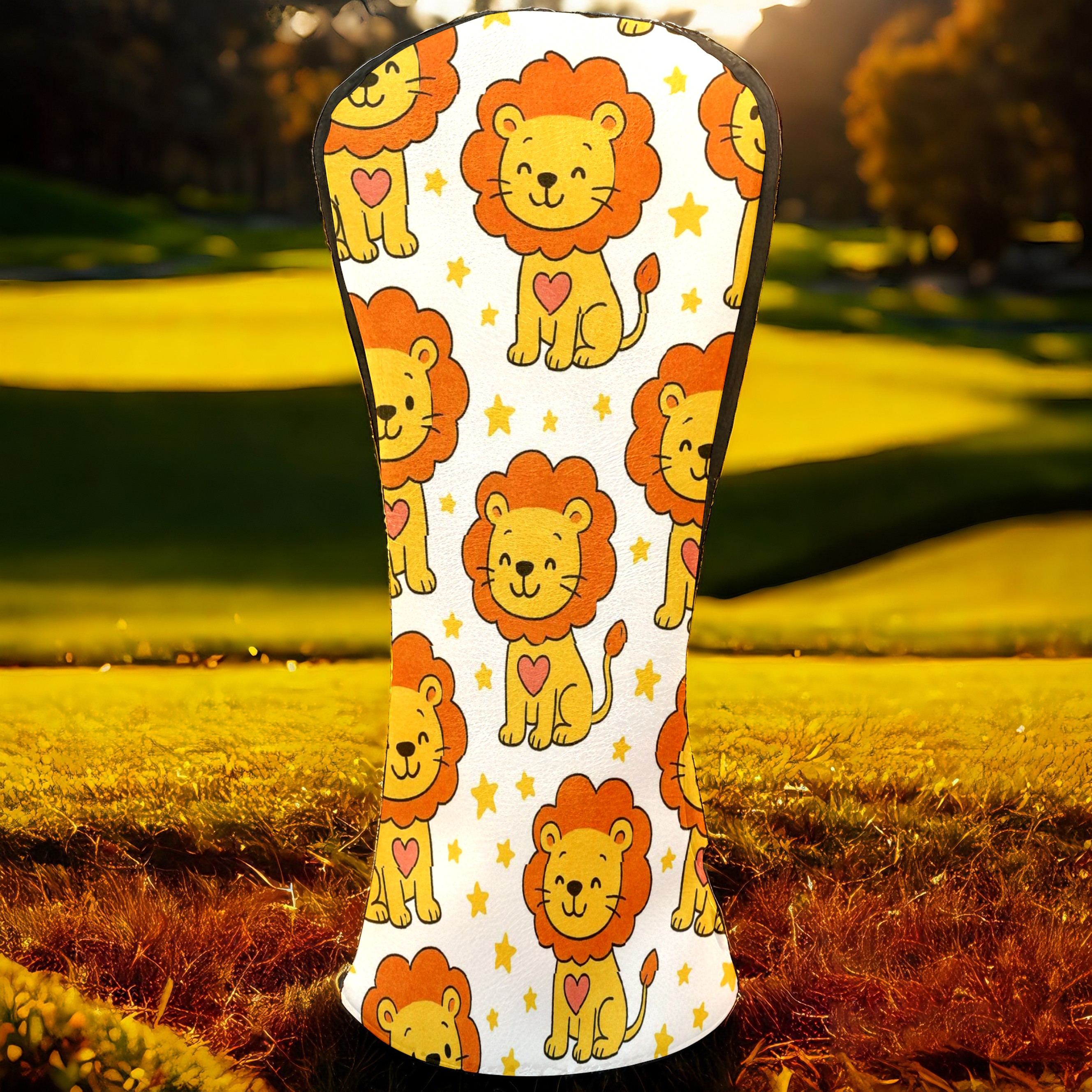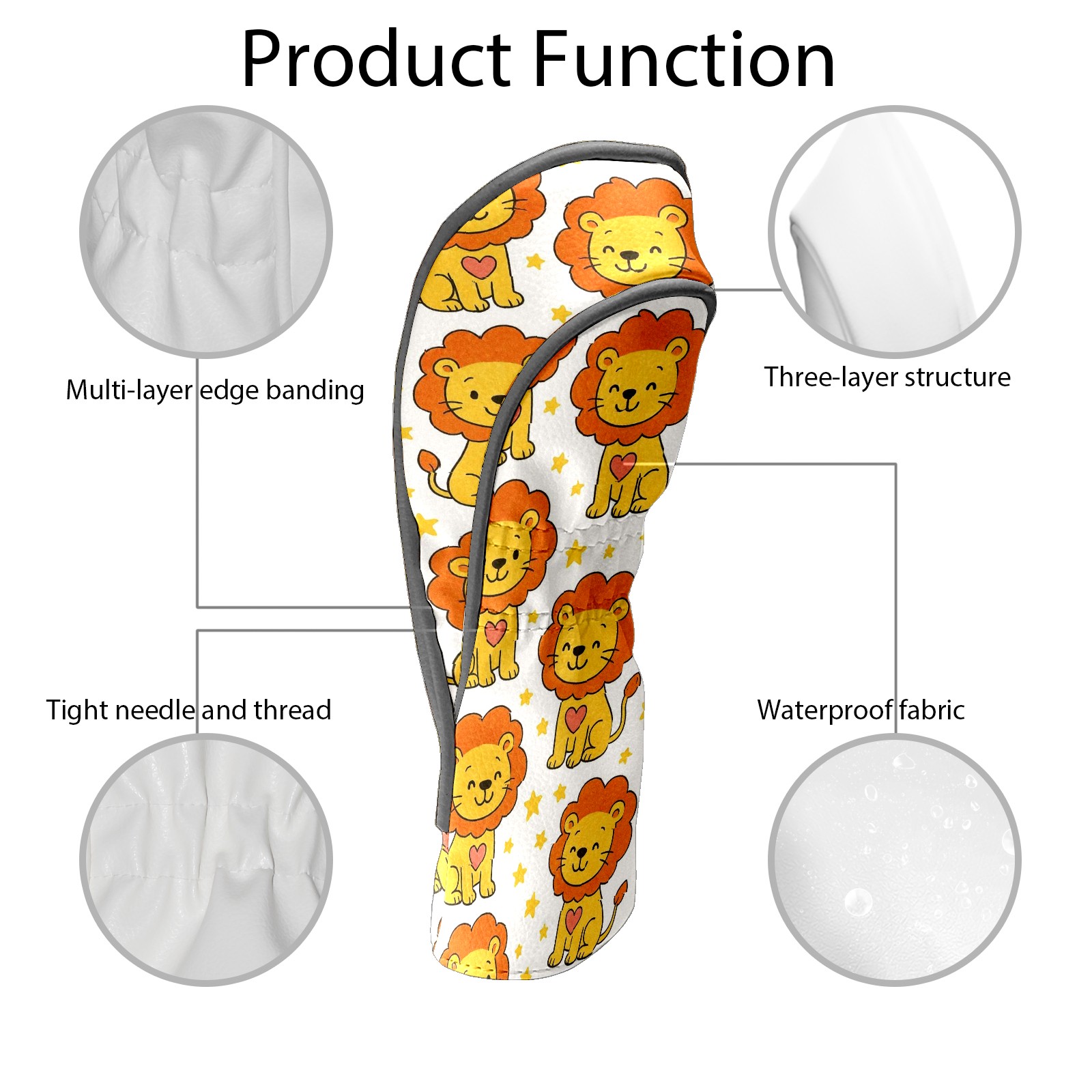 Golf Club Head Covers Yellow Background Lion Group Design for Driver & Hybrid, Waterproof PU Leather with Plush Velvet Lining, Scratch Protection & Secure Fit, Ideal Golf Gift for Men Women