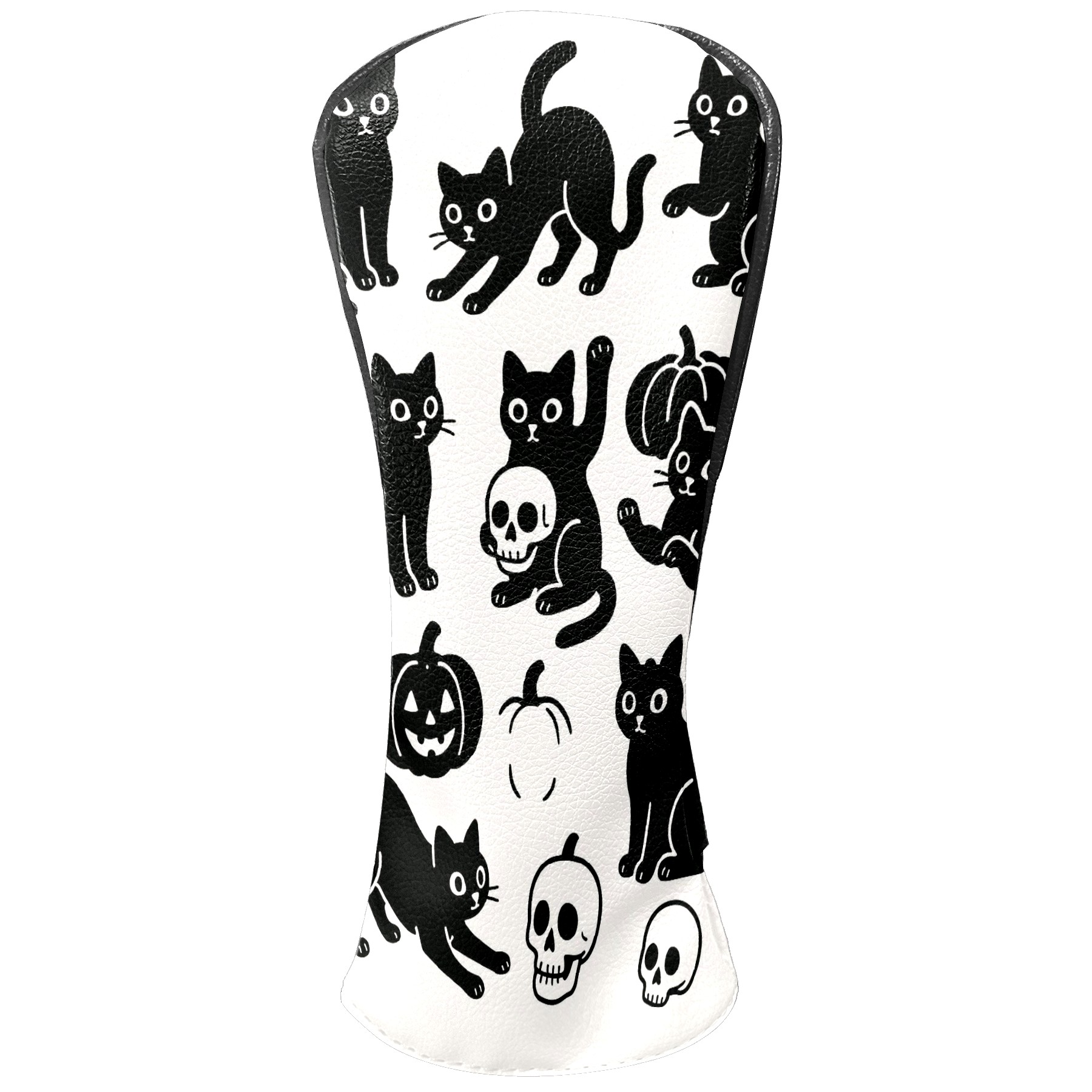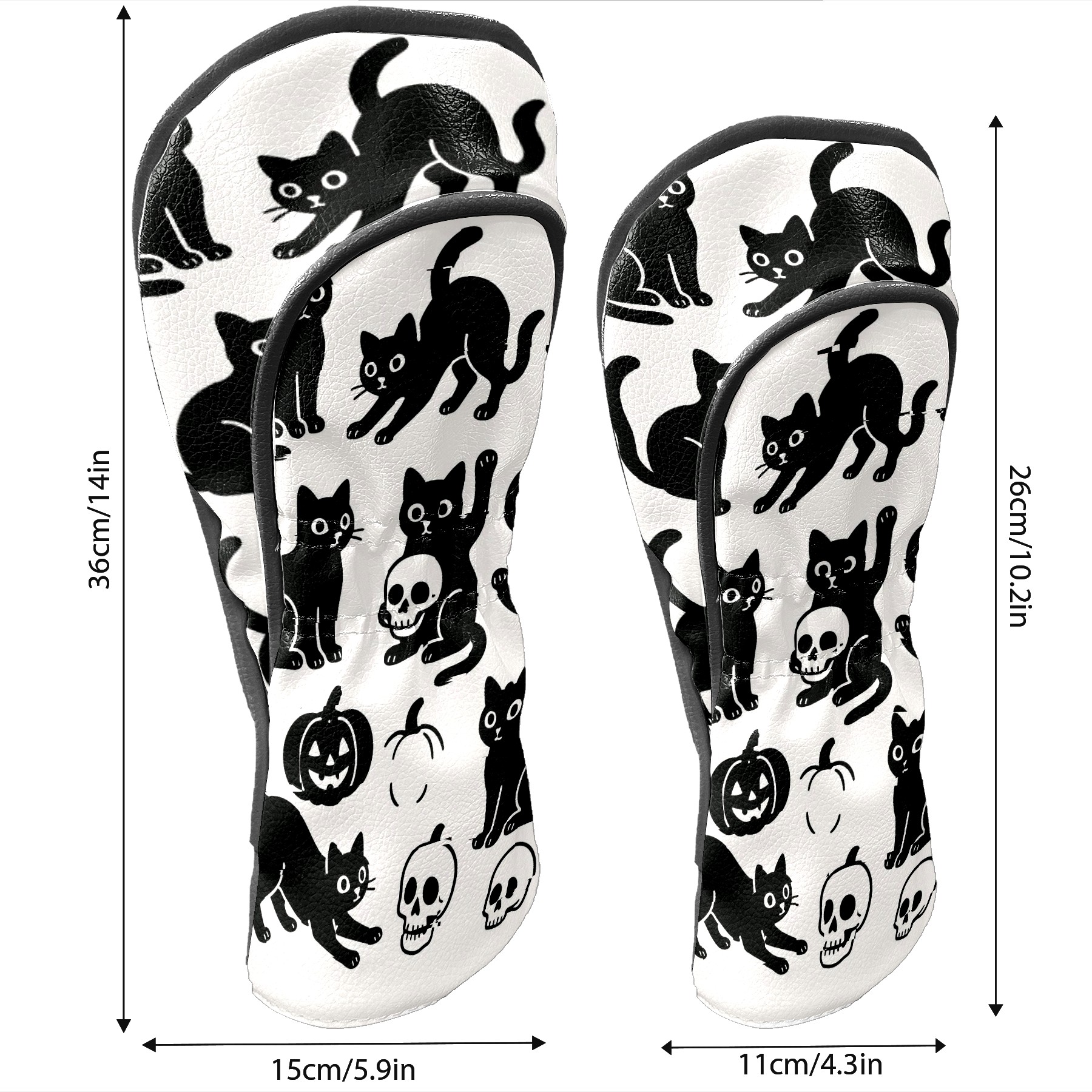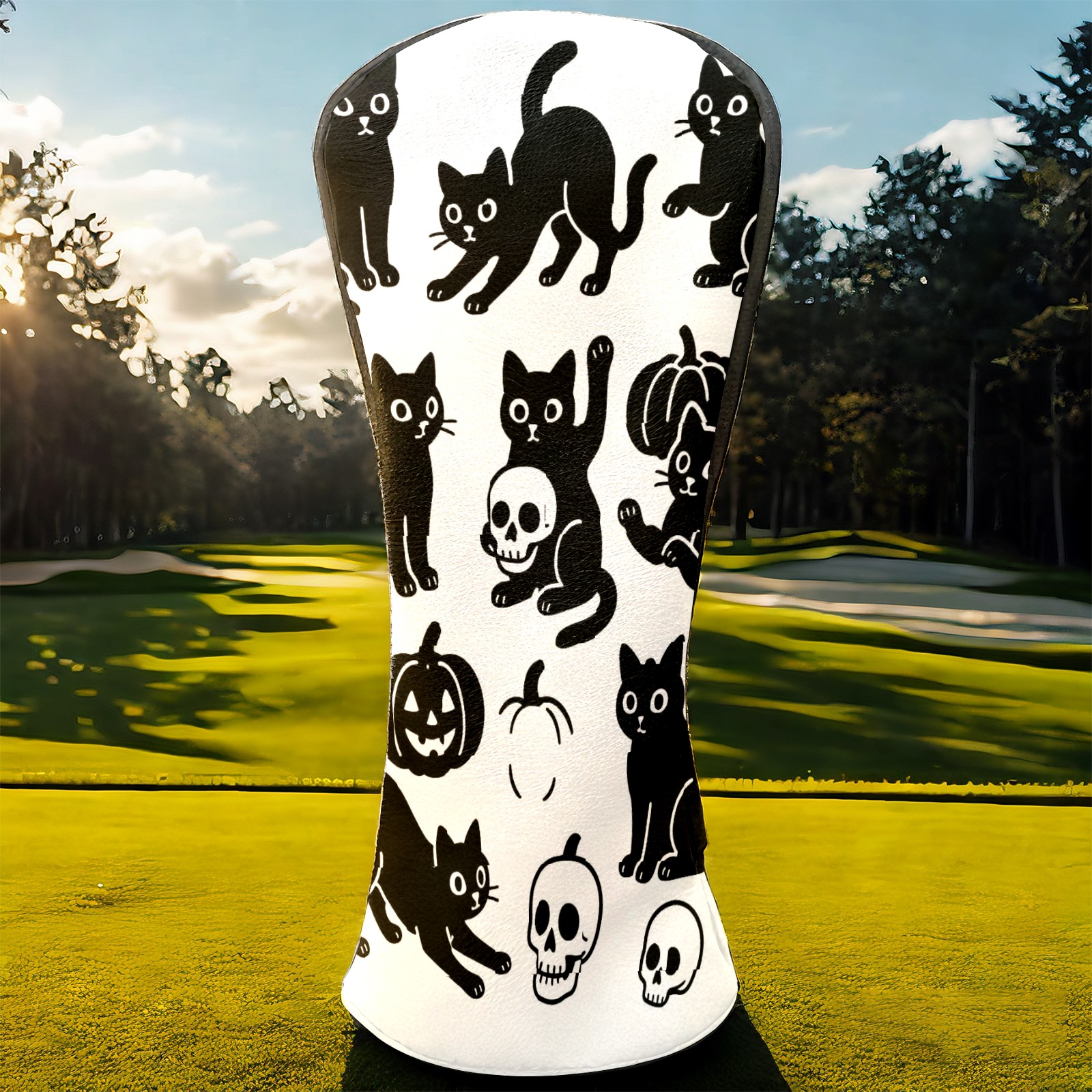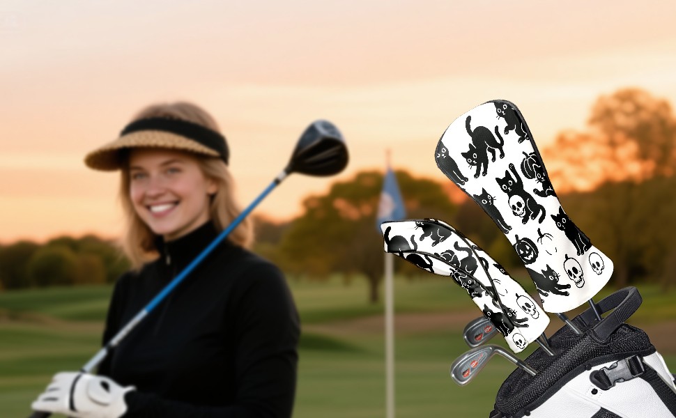 Golf Club Head Covers Halloween Black Cats Skulls Design for Driver & Hybrid, Waterproof PU Leather with Plush Velvet Lining, Scratch Protection & Secure Fit, Ideal Golf Gift for Men Women