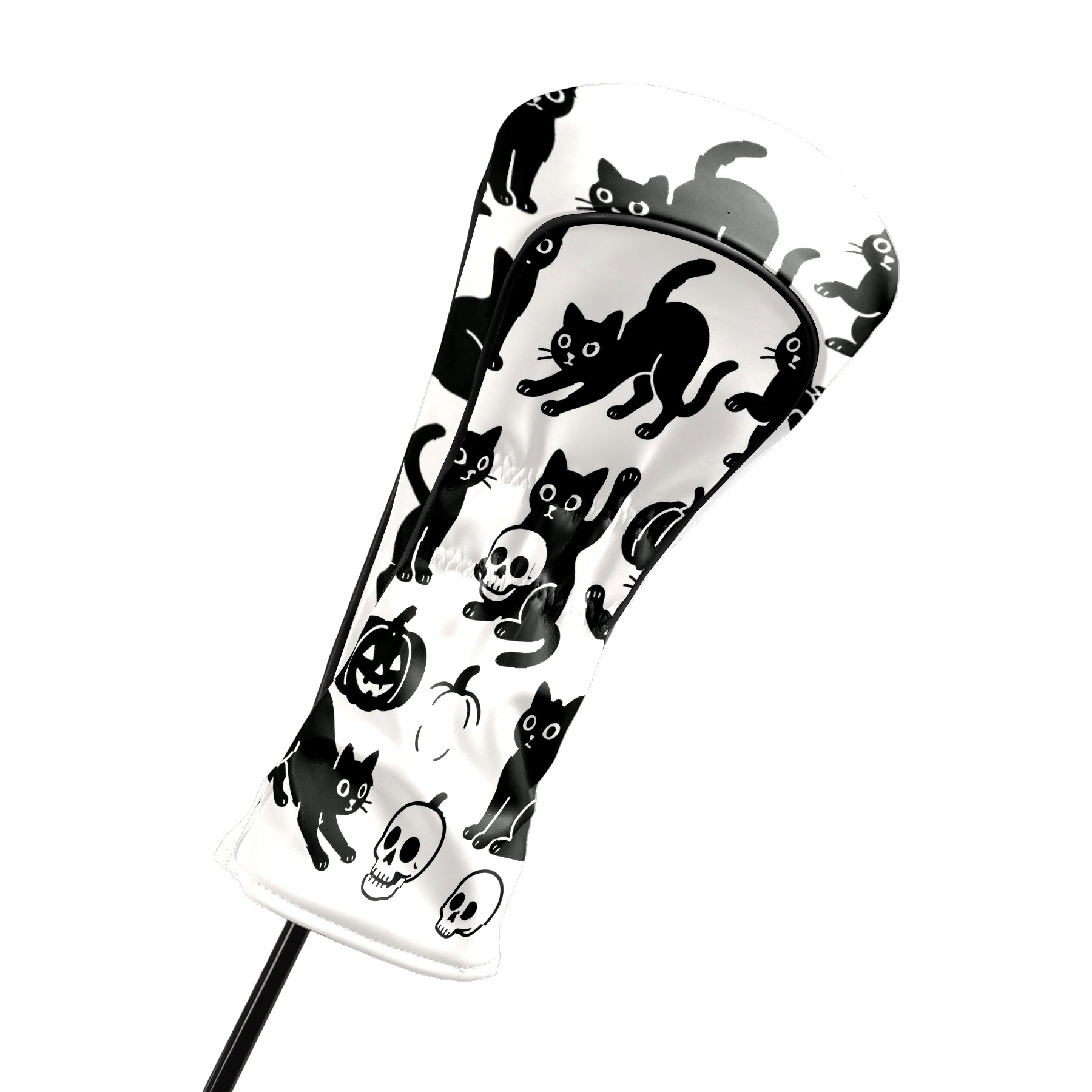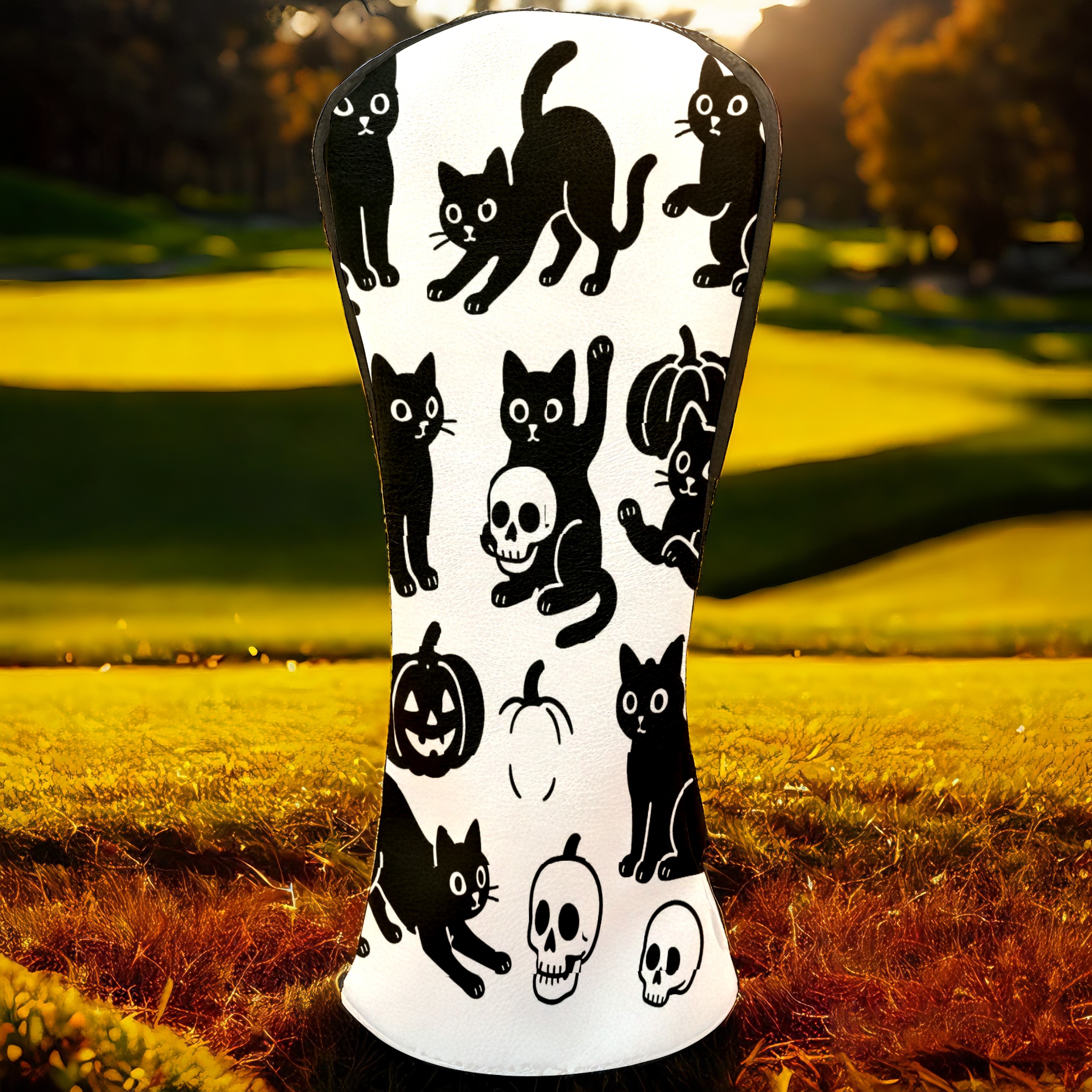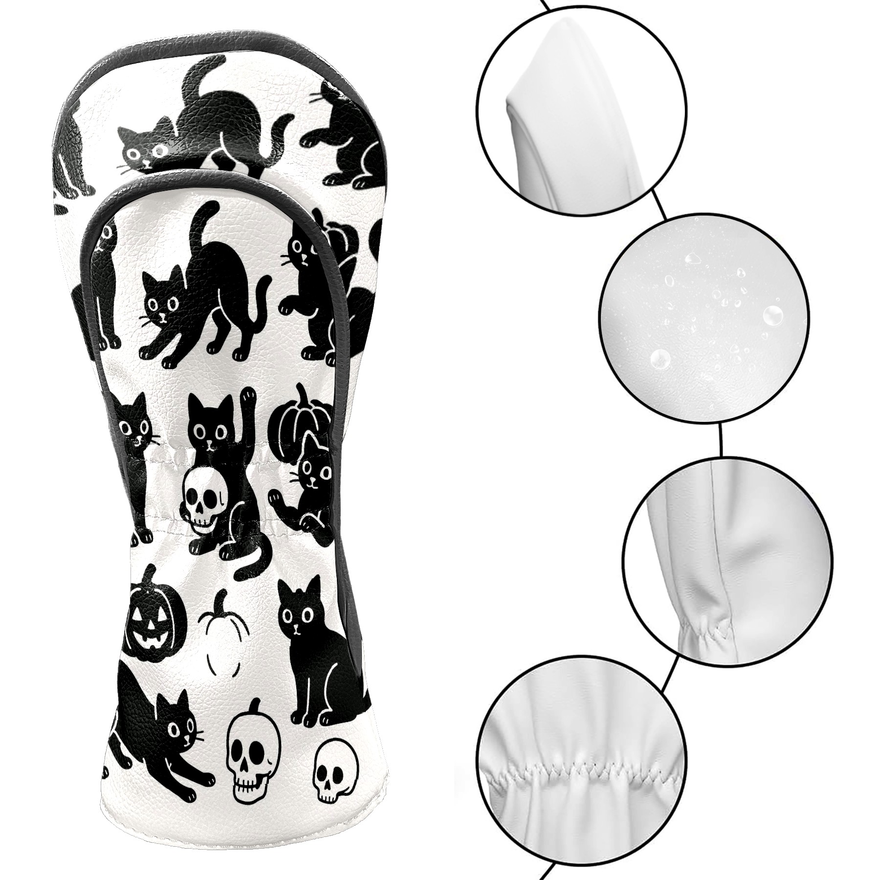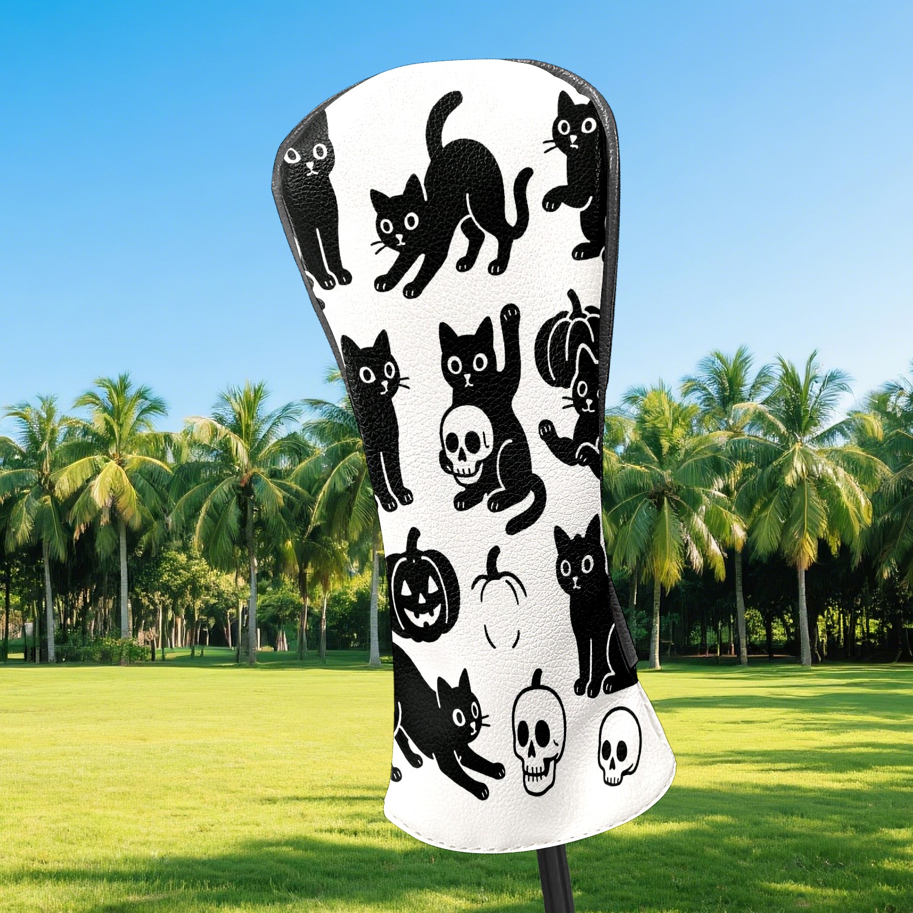 Golf Club Head Covers Halloween Black Cats Skulls Design for Driver & Hybrid, Waterproof PU Leather with Plush Velvet Lining, Scratch Protection & Secure Fit, Ideal Golf Gift for Men Women