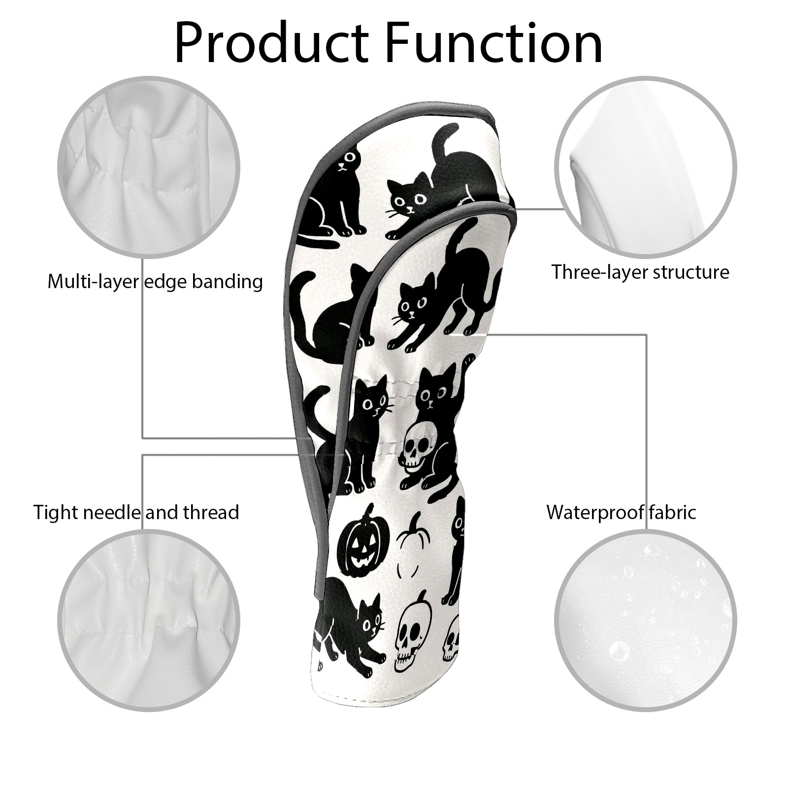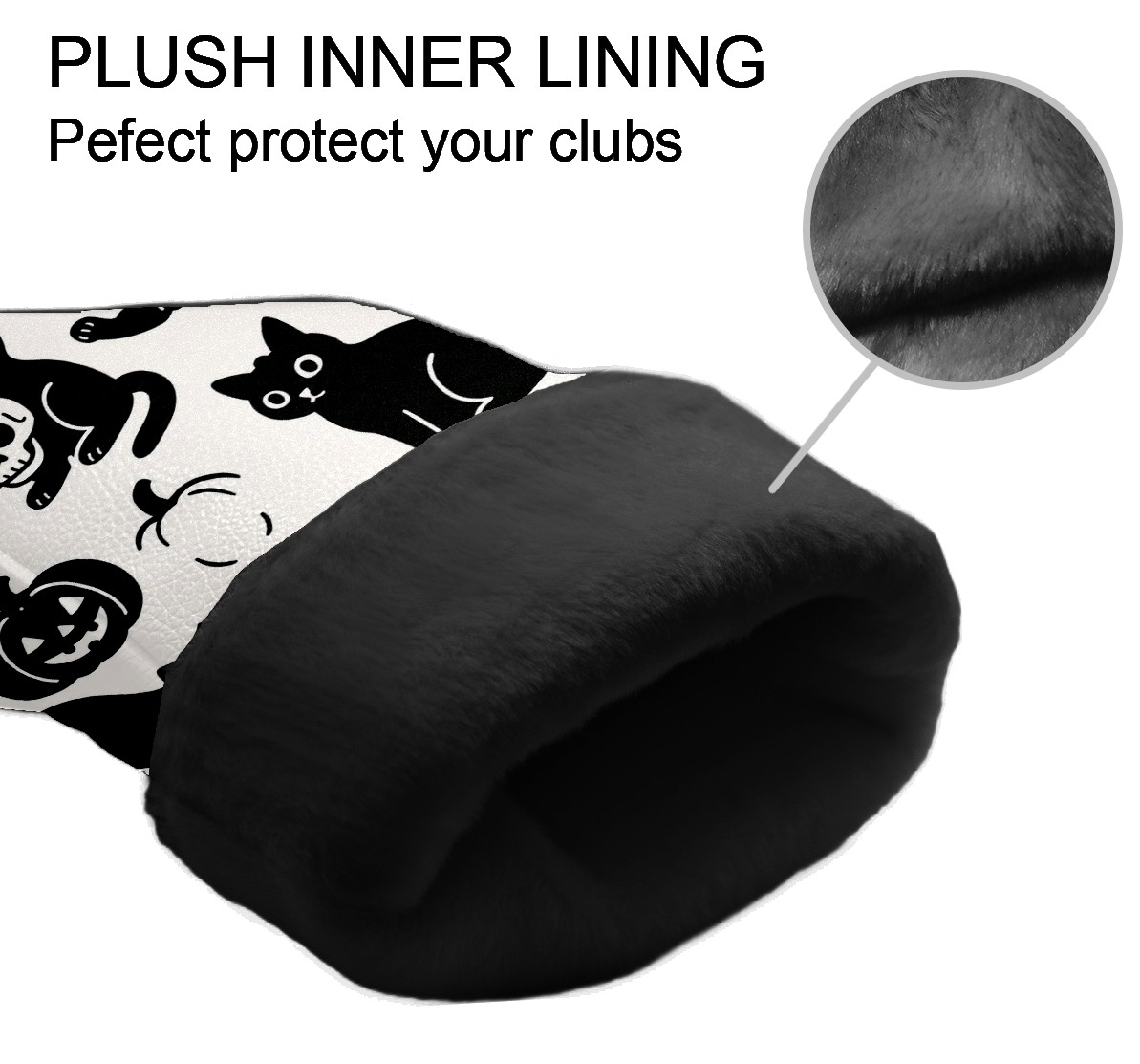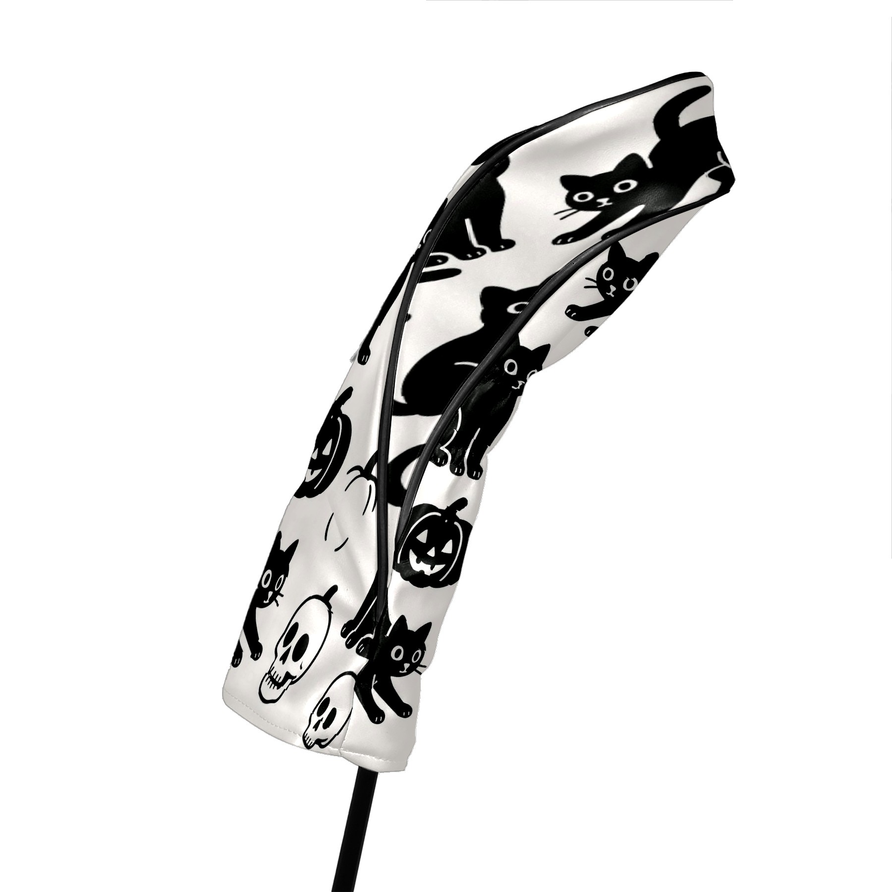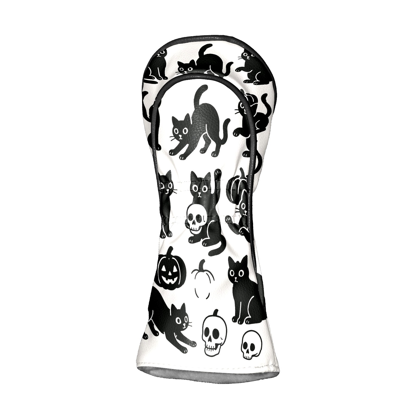 Golf Club Head Covers Halloween Black Cats Skulls Design for Driver & Hybrid, Waterproof PU Leather with Plush Velvet Lining, Scratch Protection & Secure Fit, Ideal Golf Gift for Men Women