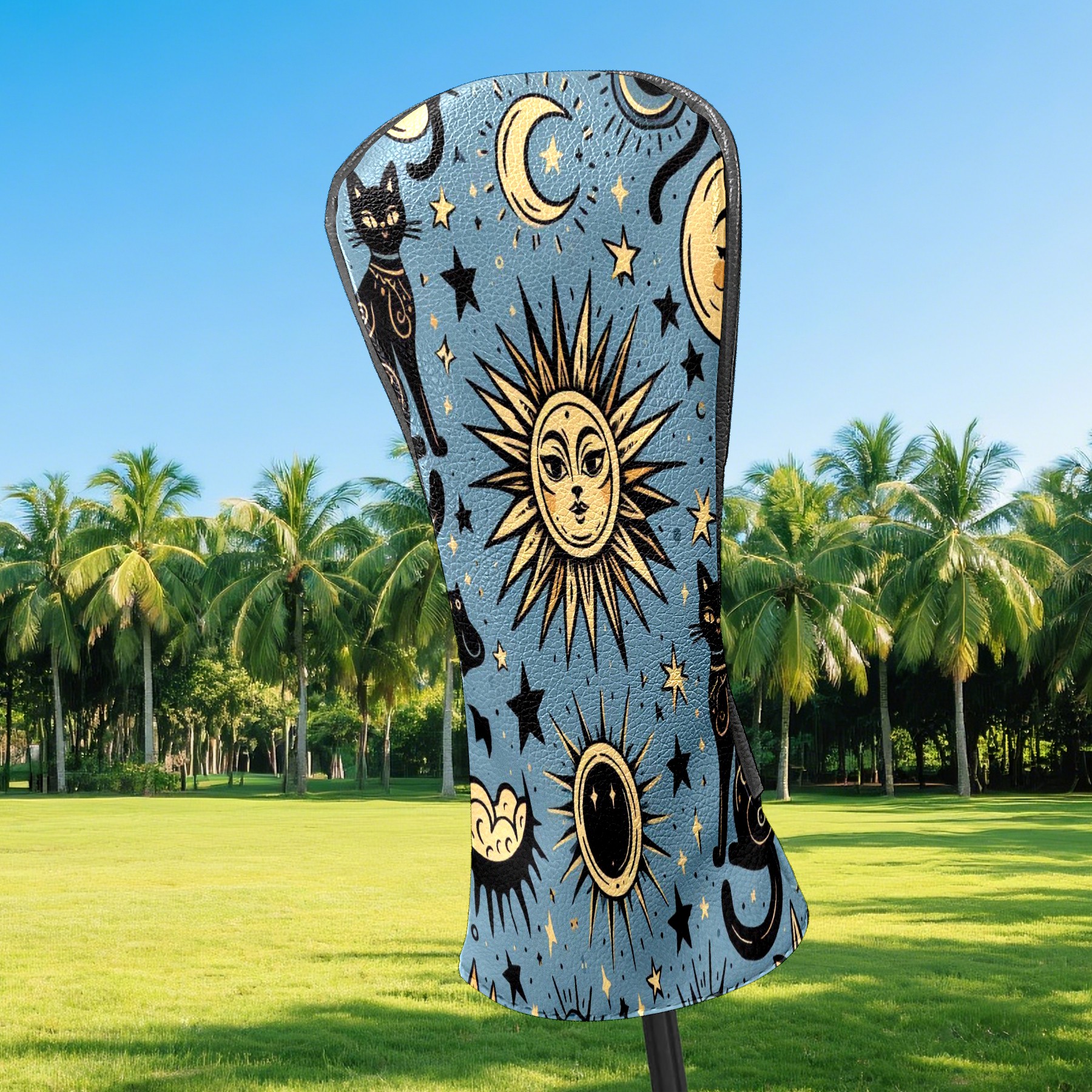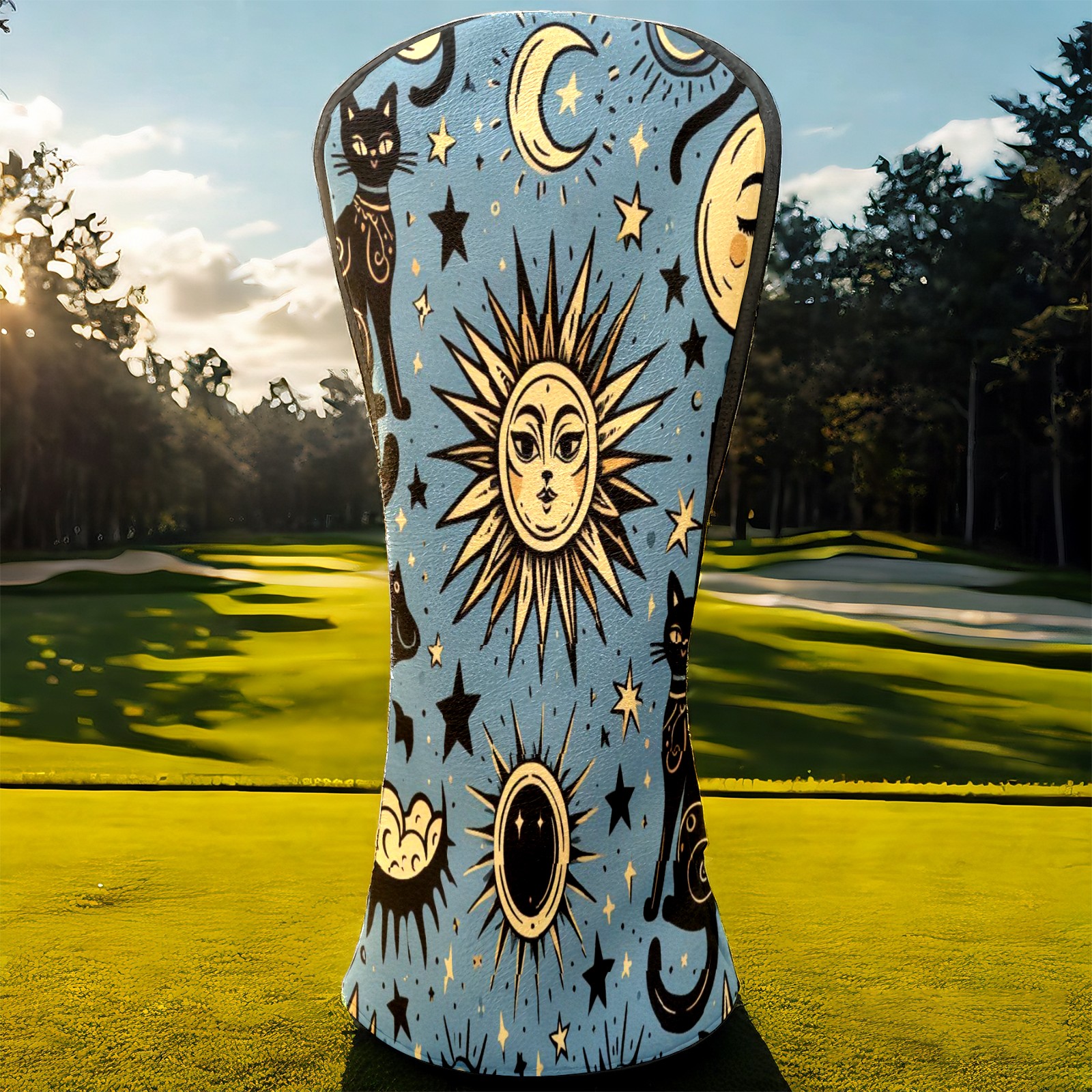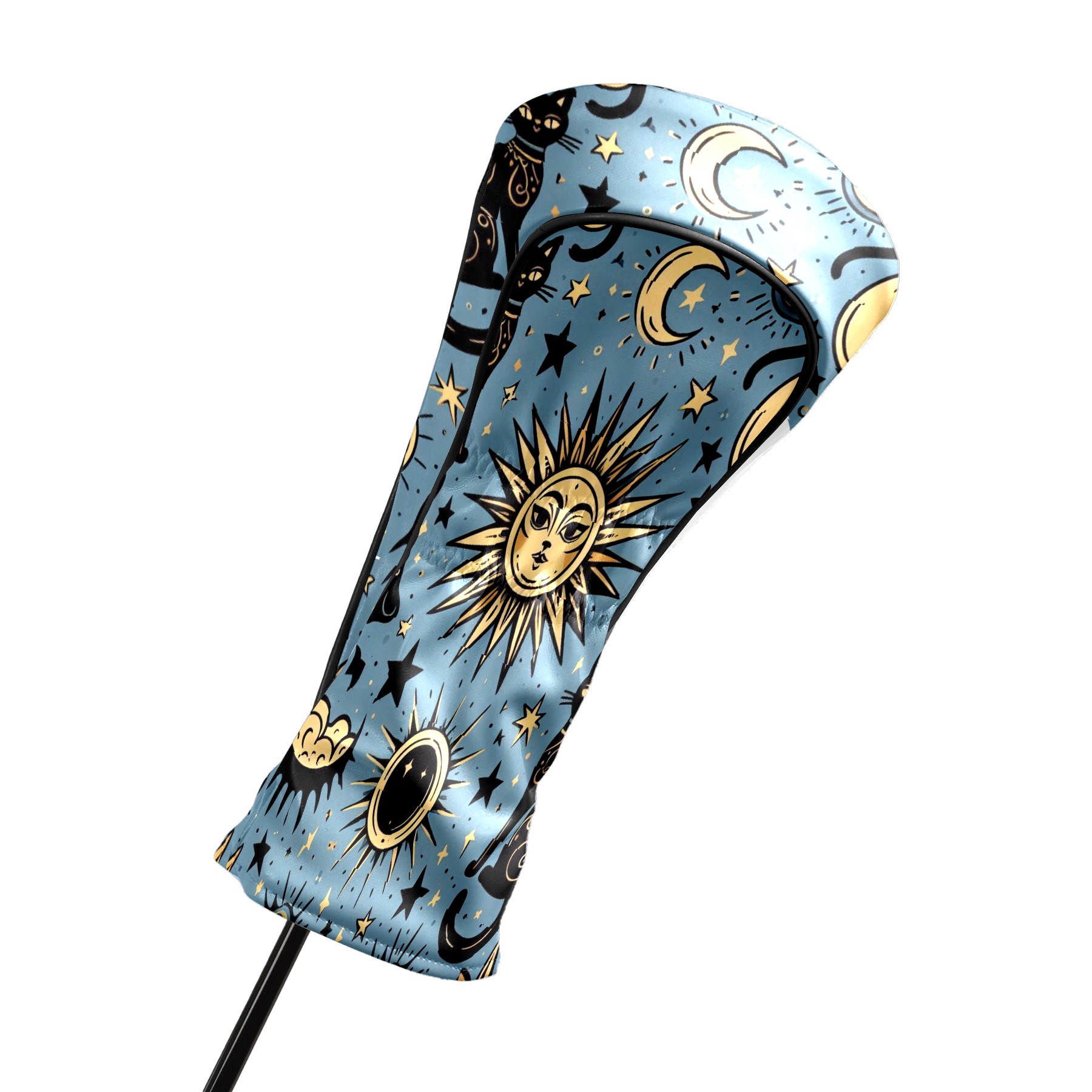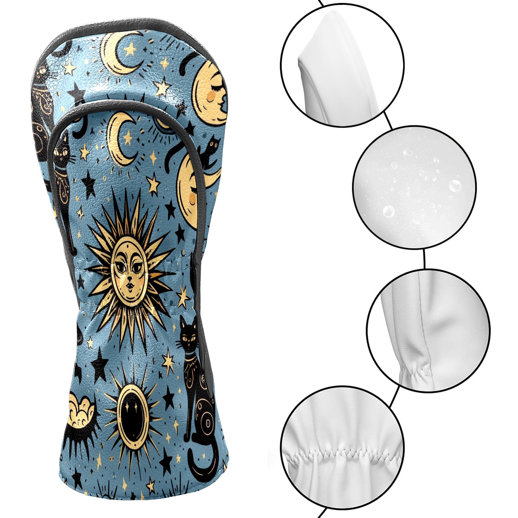 Golf Club Head Covers Celestial Moon Star Black Cats Design for Driver & Hybrid, Waterproof PU Leather with Plush Velvet Lining, Scratch Protection & Secure Fit, Ideal Golf Gift for Men Women