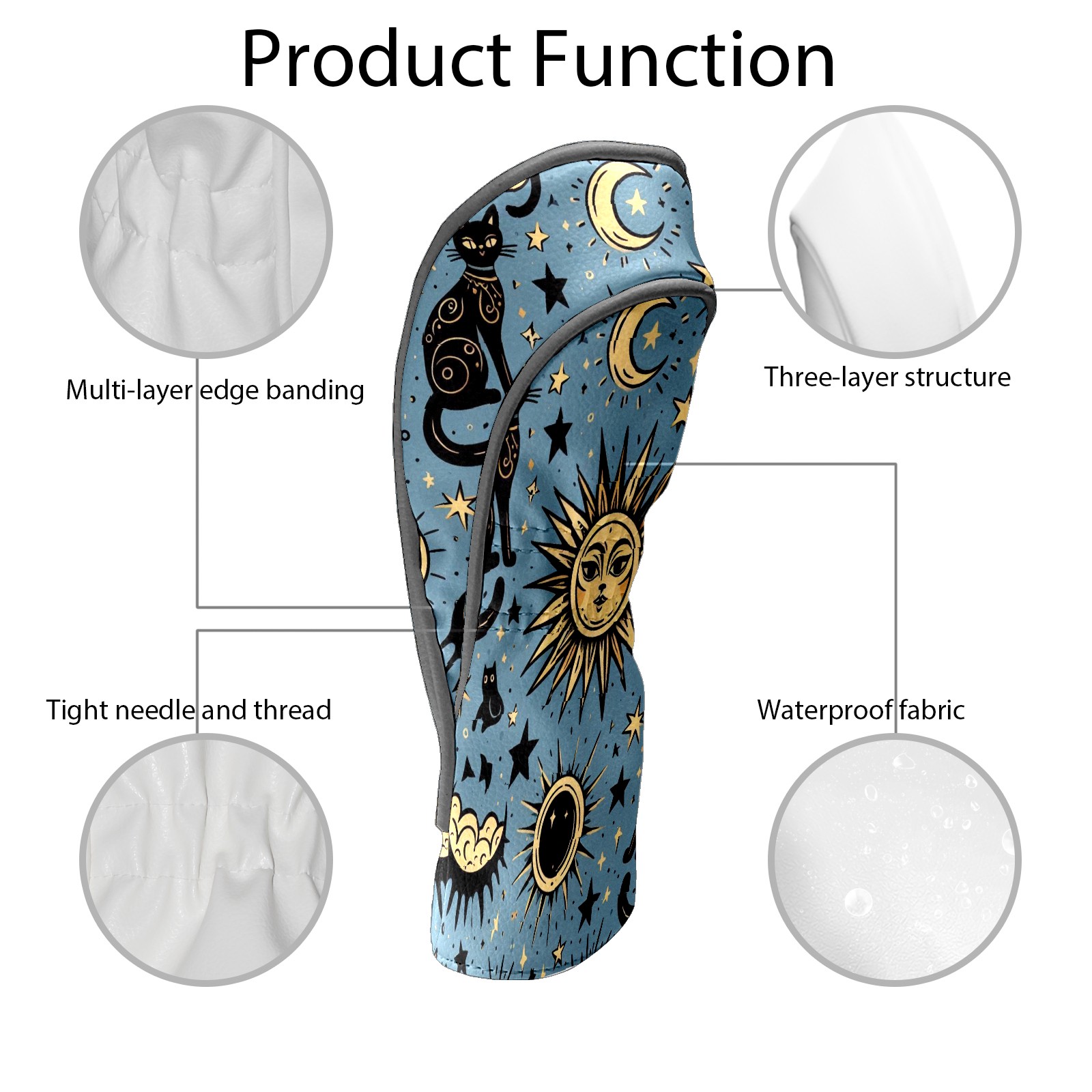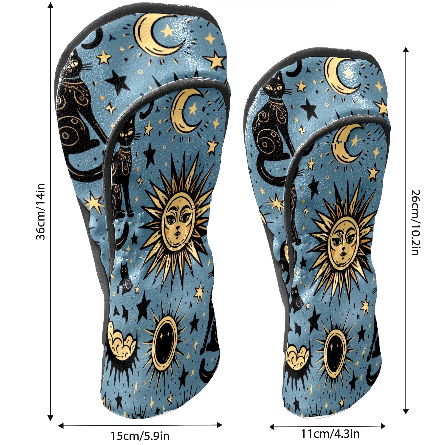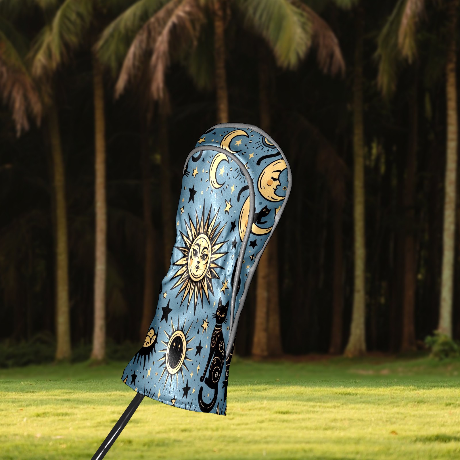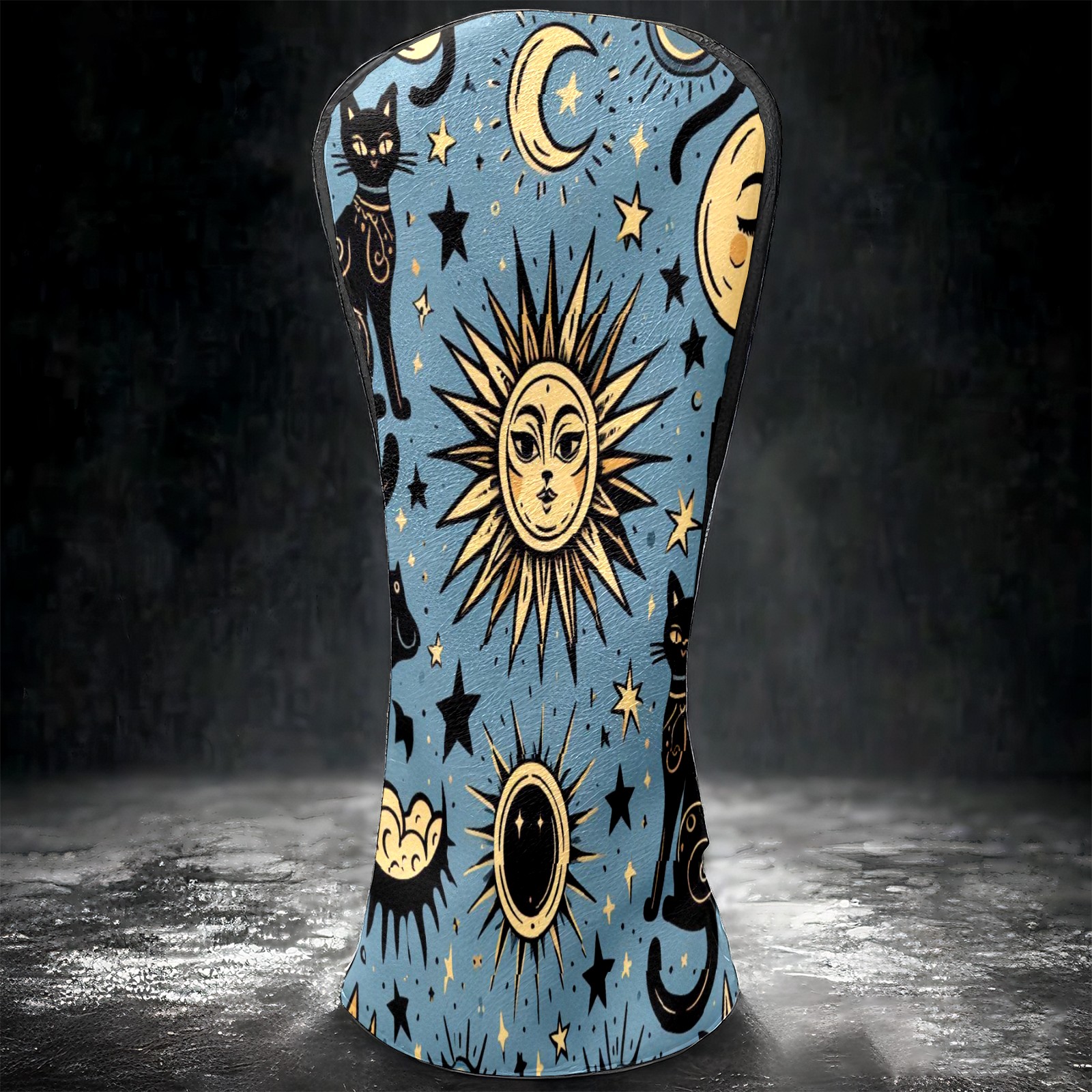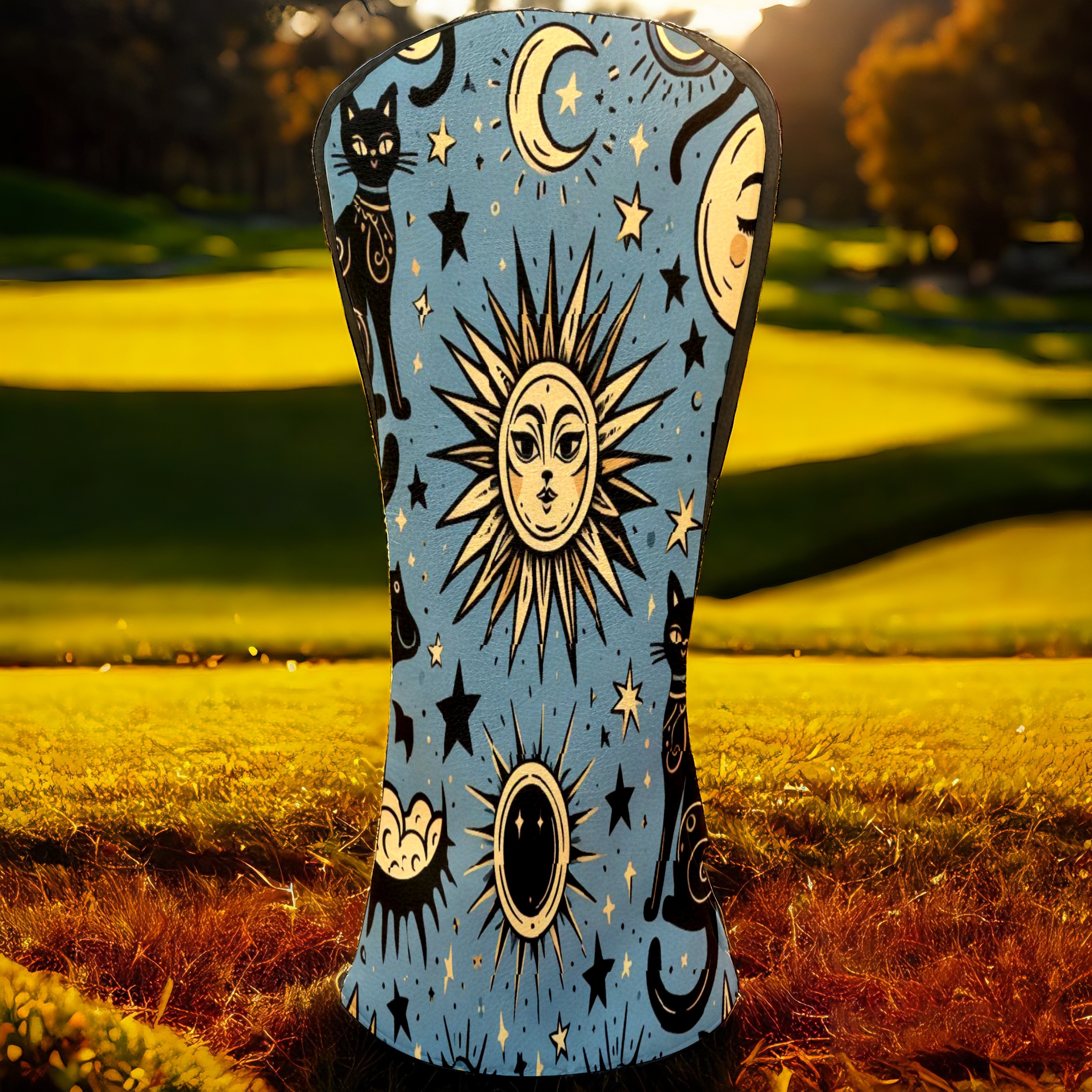 Golf Club Head Covers Celestial Moon Star Black Cats Design for Driver & Hybrid, Waterproof PU Leather with Plush Velvet Lining, Scratch Protection & Secure Fit, Ideal Golf Gift for Men Women