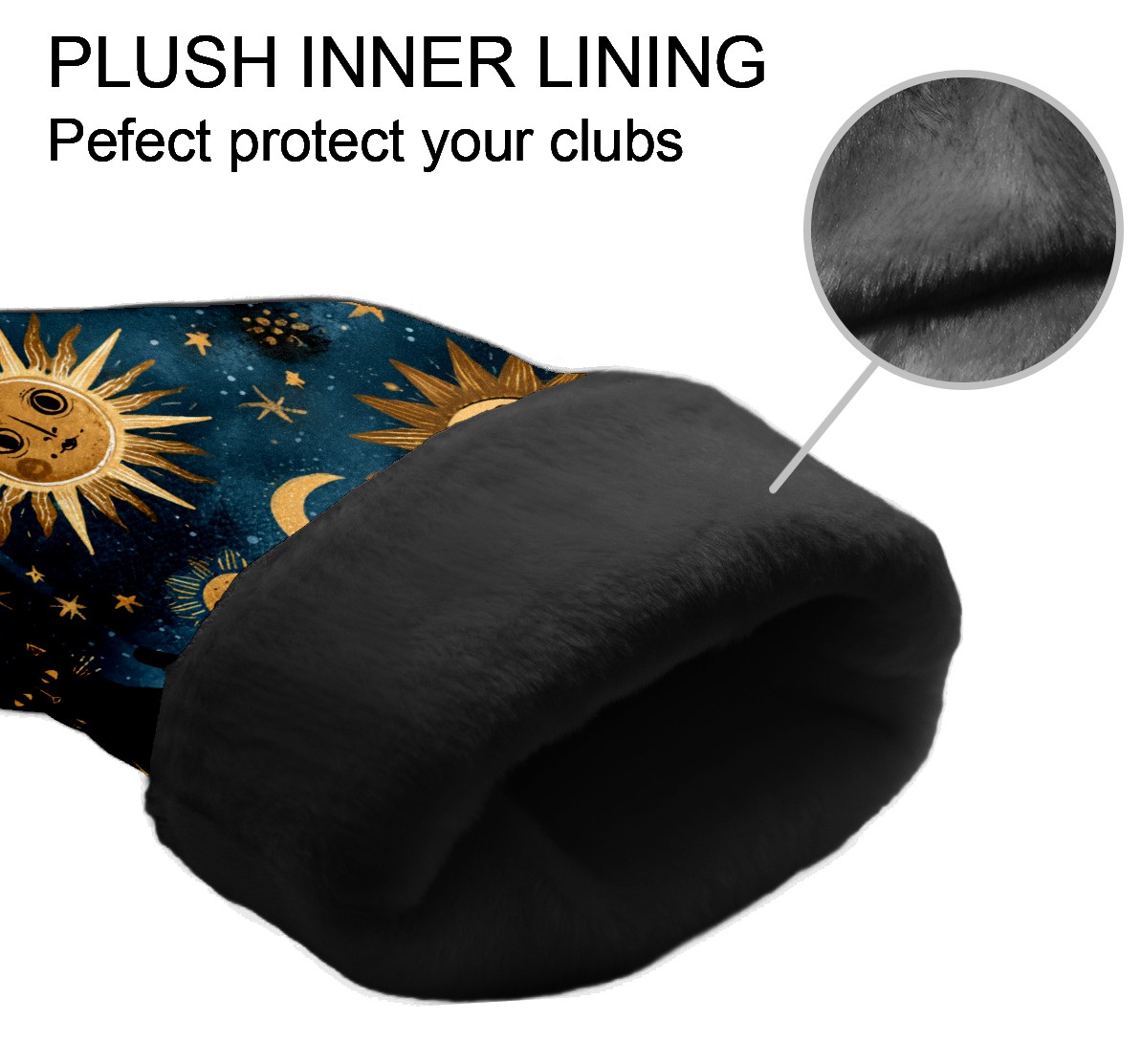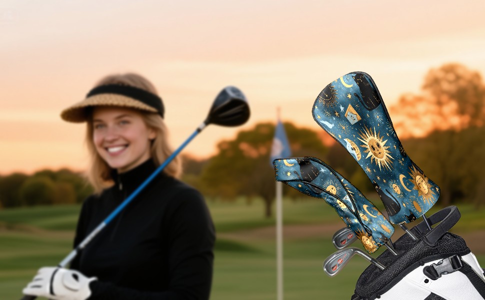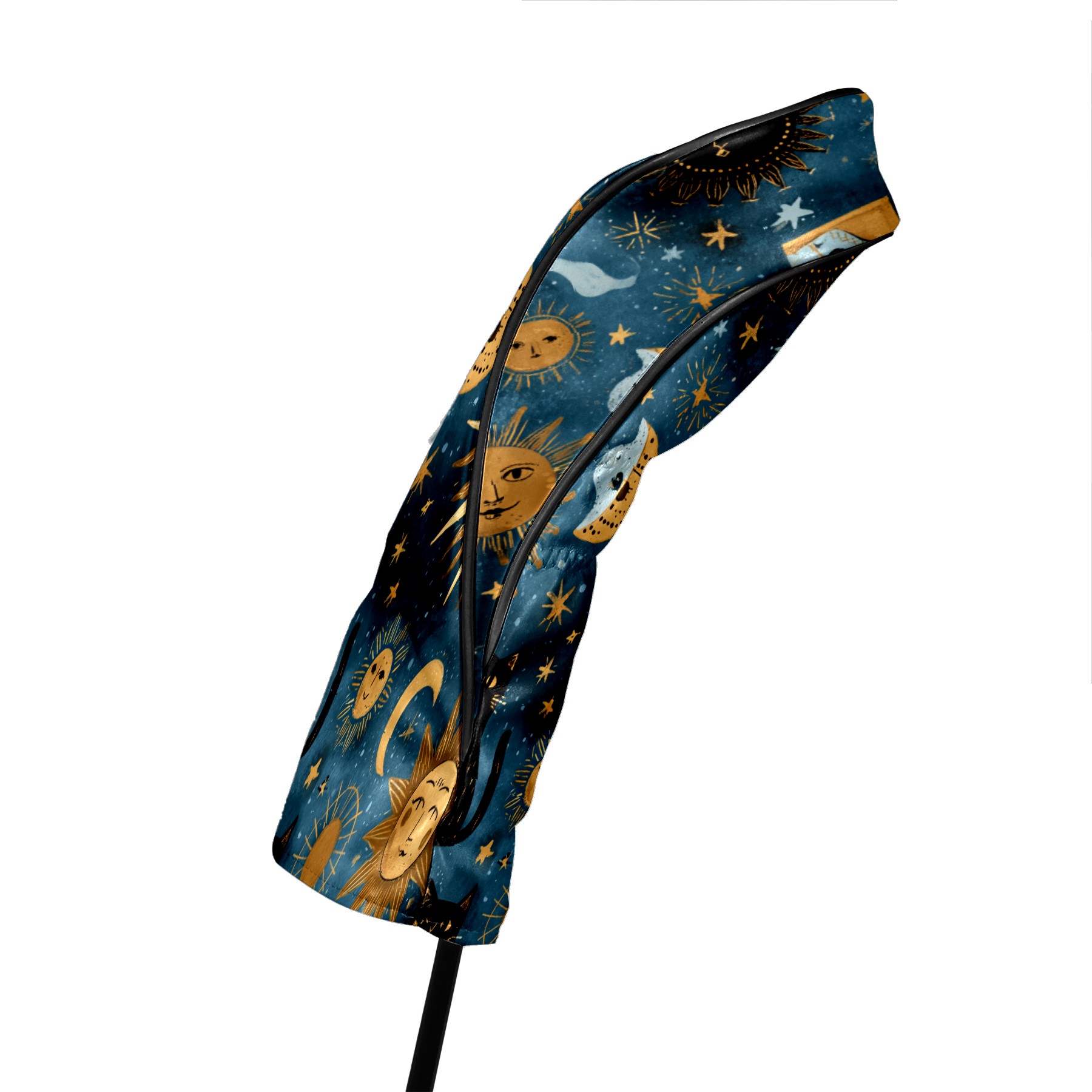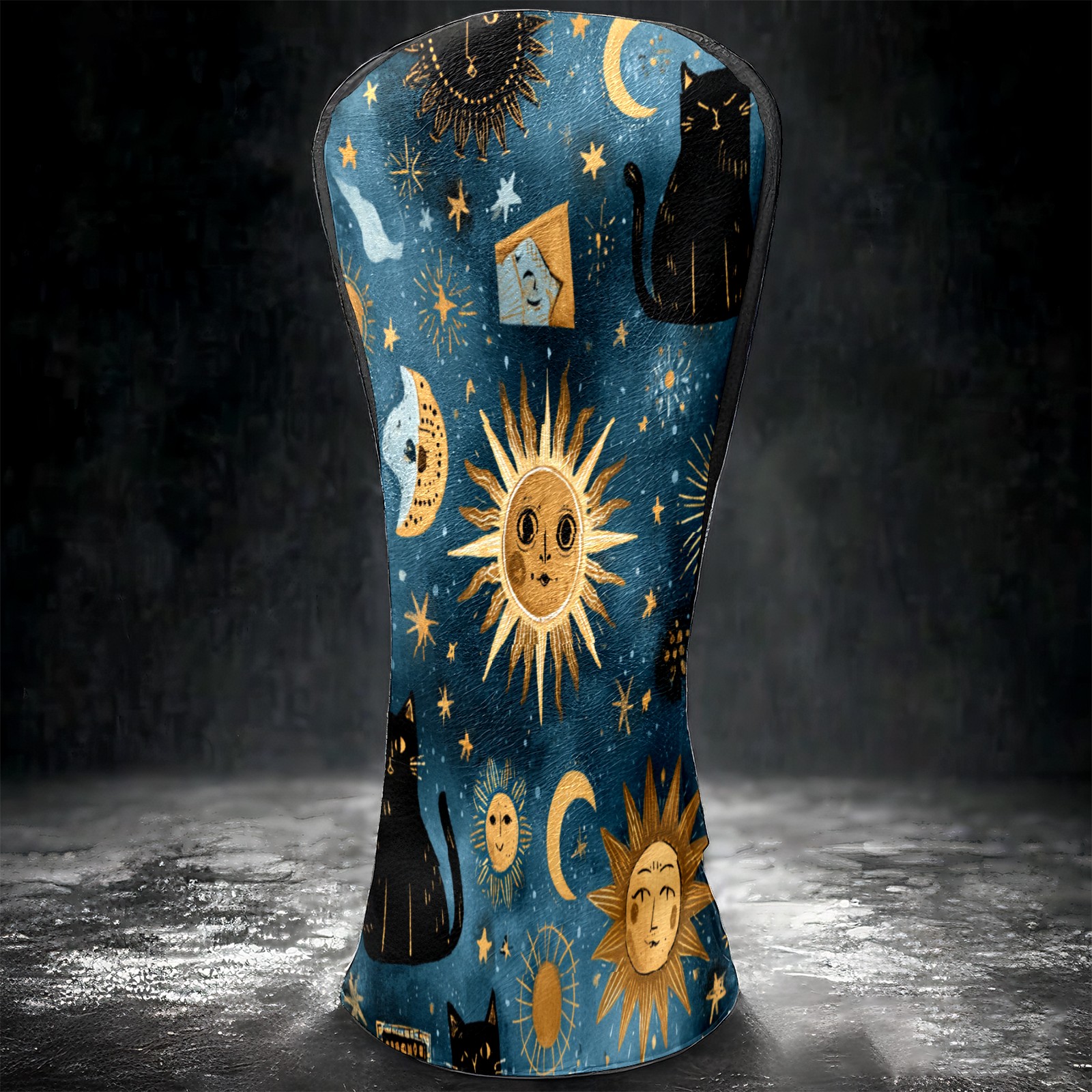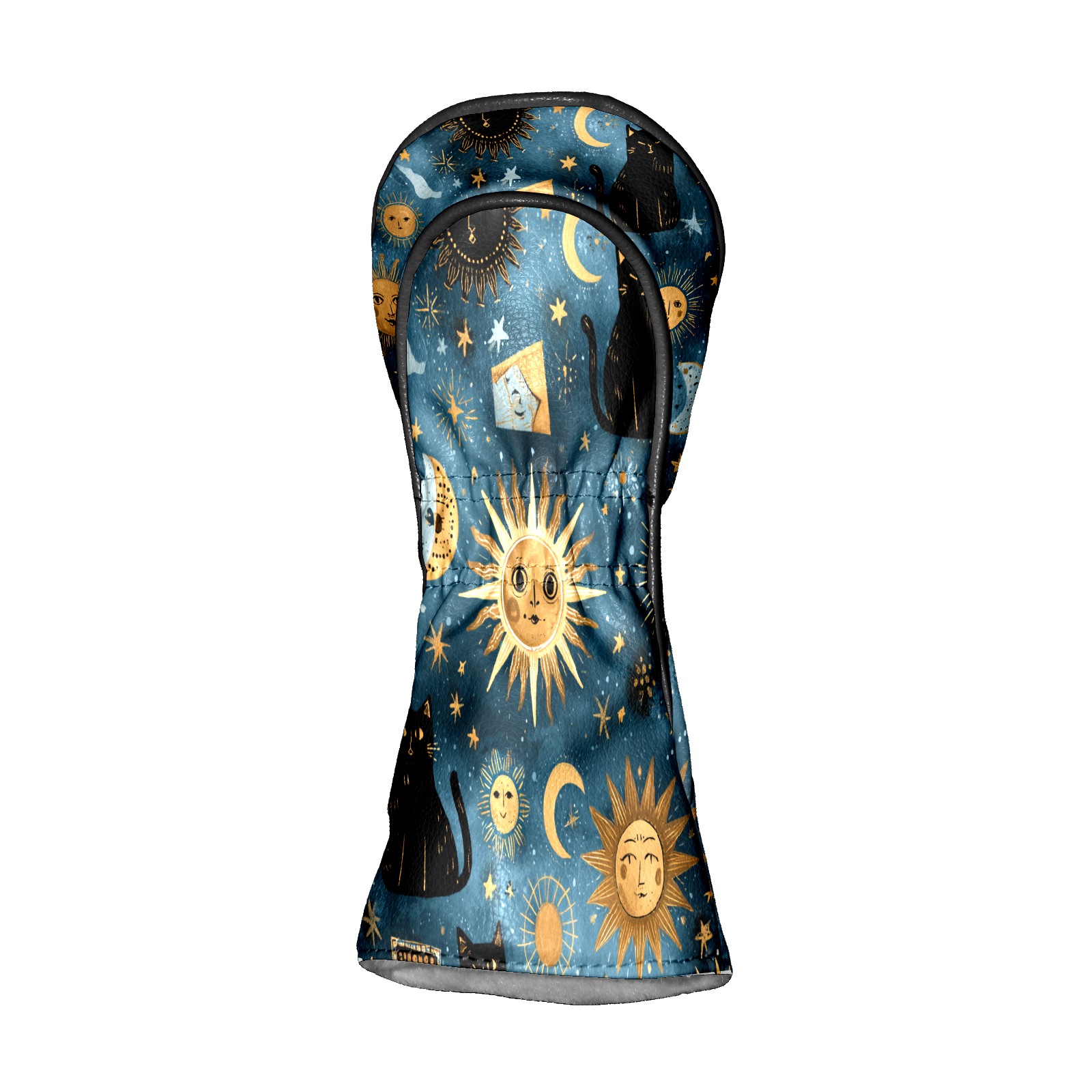 Golf Club Head Covers Dark Blue Sun Moon Black Cats Design for Driver & Hybrid, Waterproof PU Leather with Plush Velvet Lining, Scratch Protection & Secure Fit, Ideal Golf Gift for Men Women