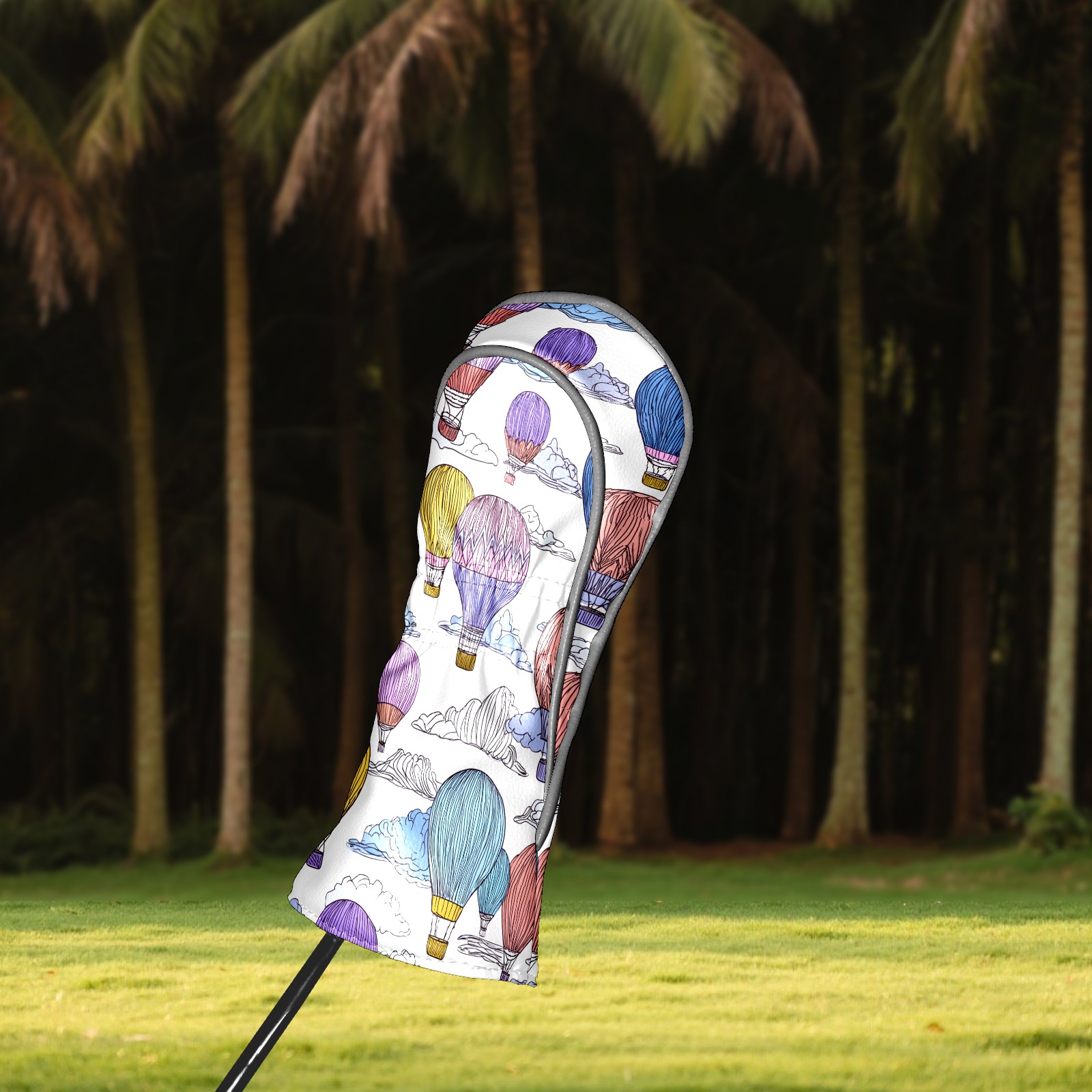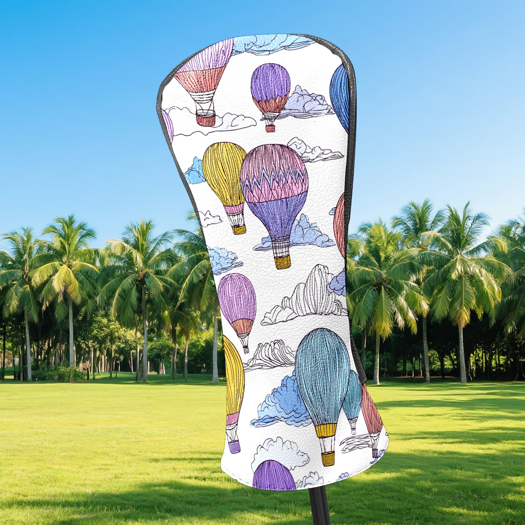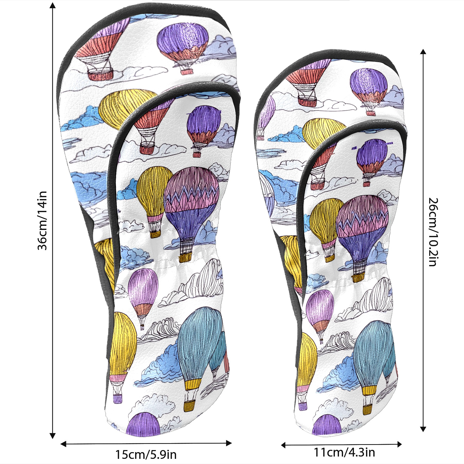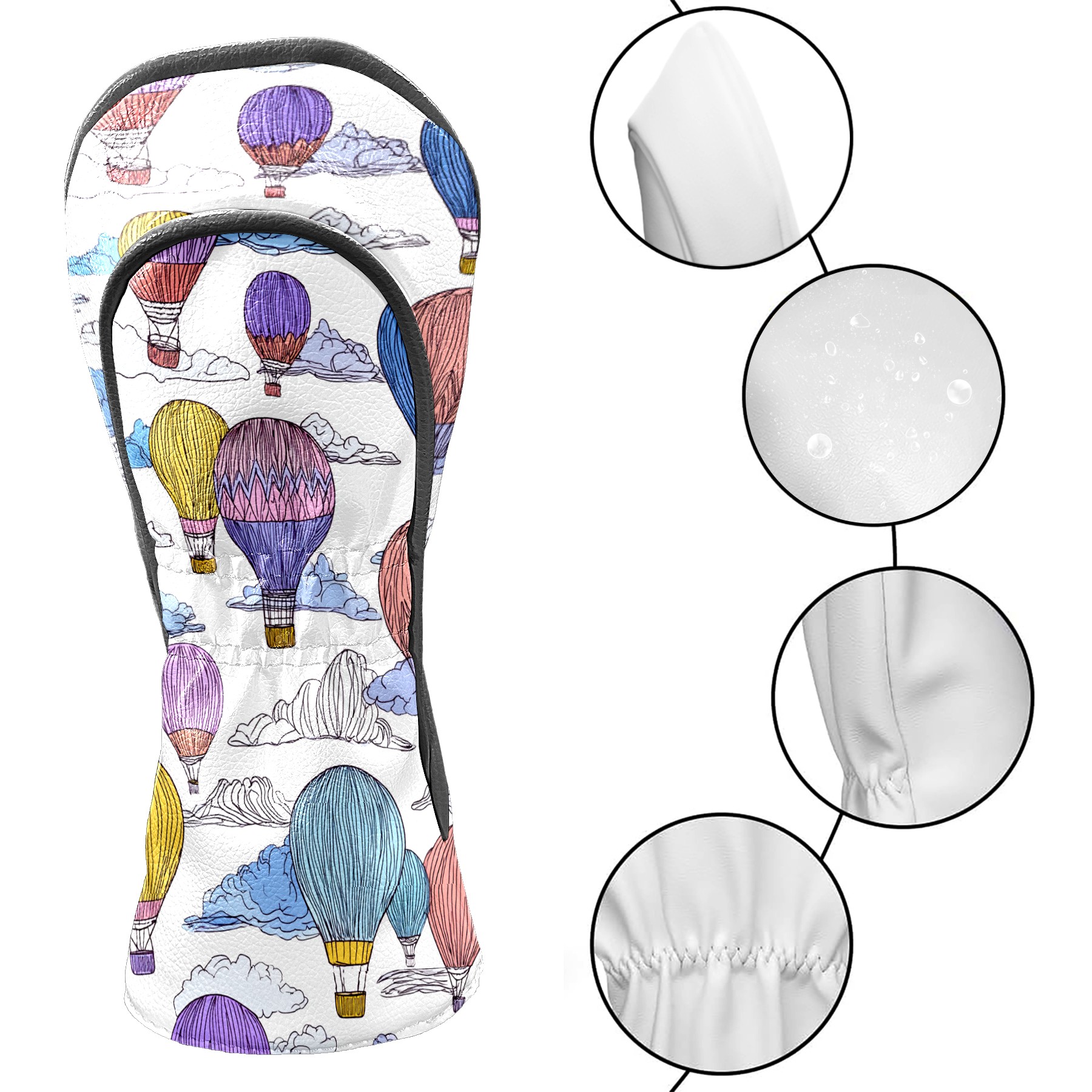 Golf Club Head Covers Colorful Hot Air Balloons Sky Design for Driver & Hybrid, Waterproof PU Leather with Plush Velvet Lining, Scratch Protection & Secure Fit, Ideal Golf Gift for Men Women