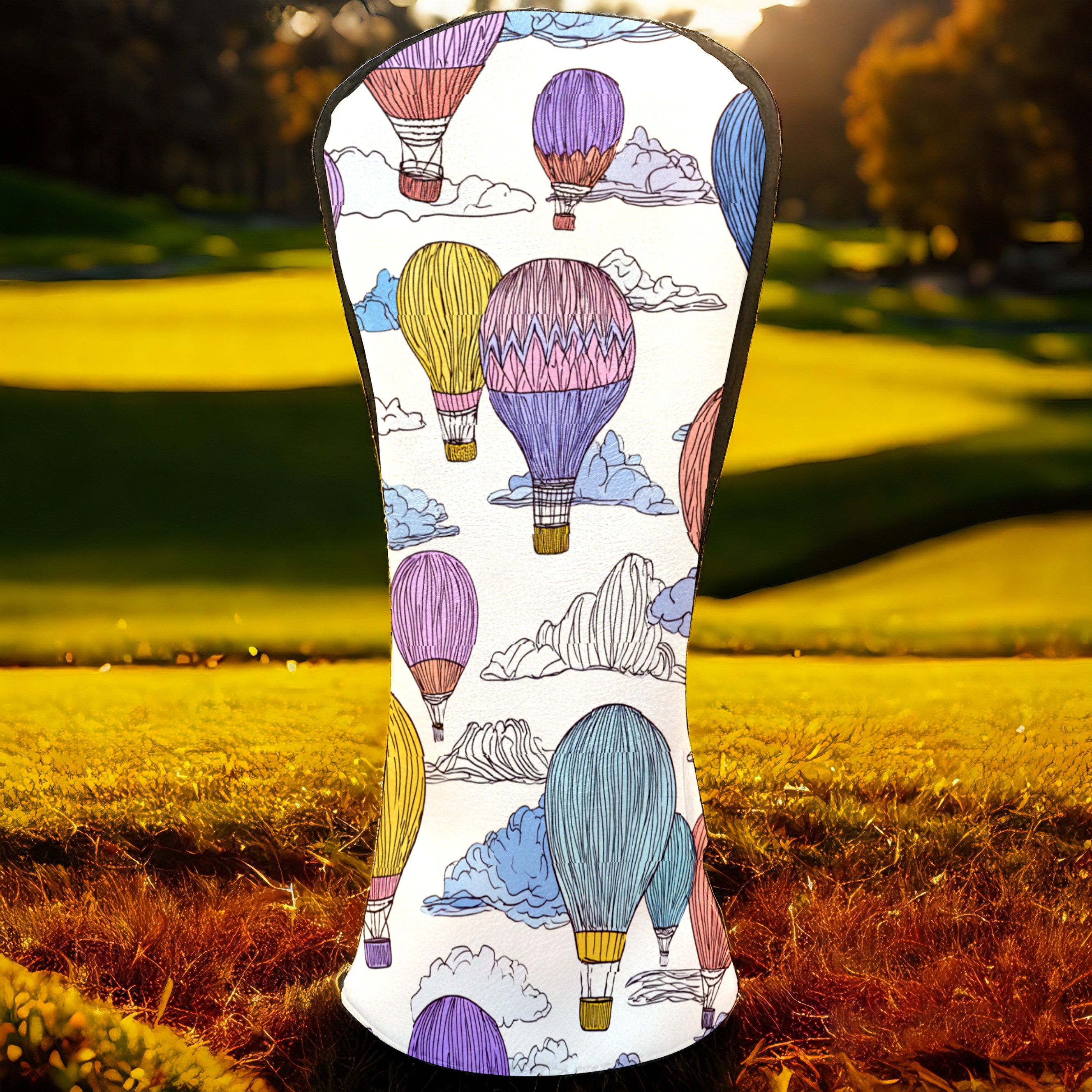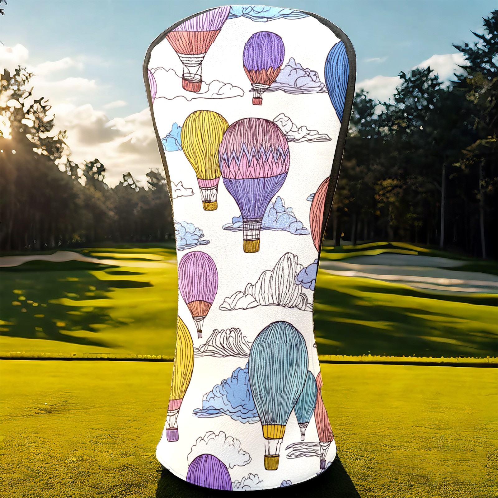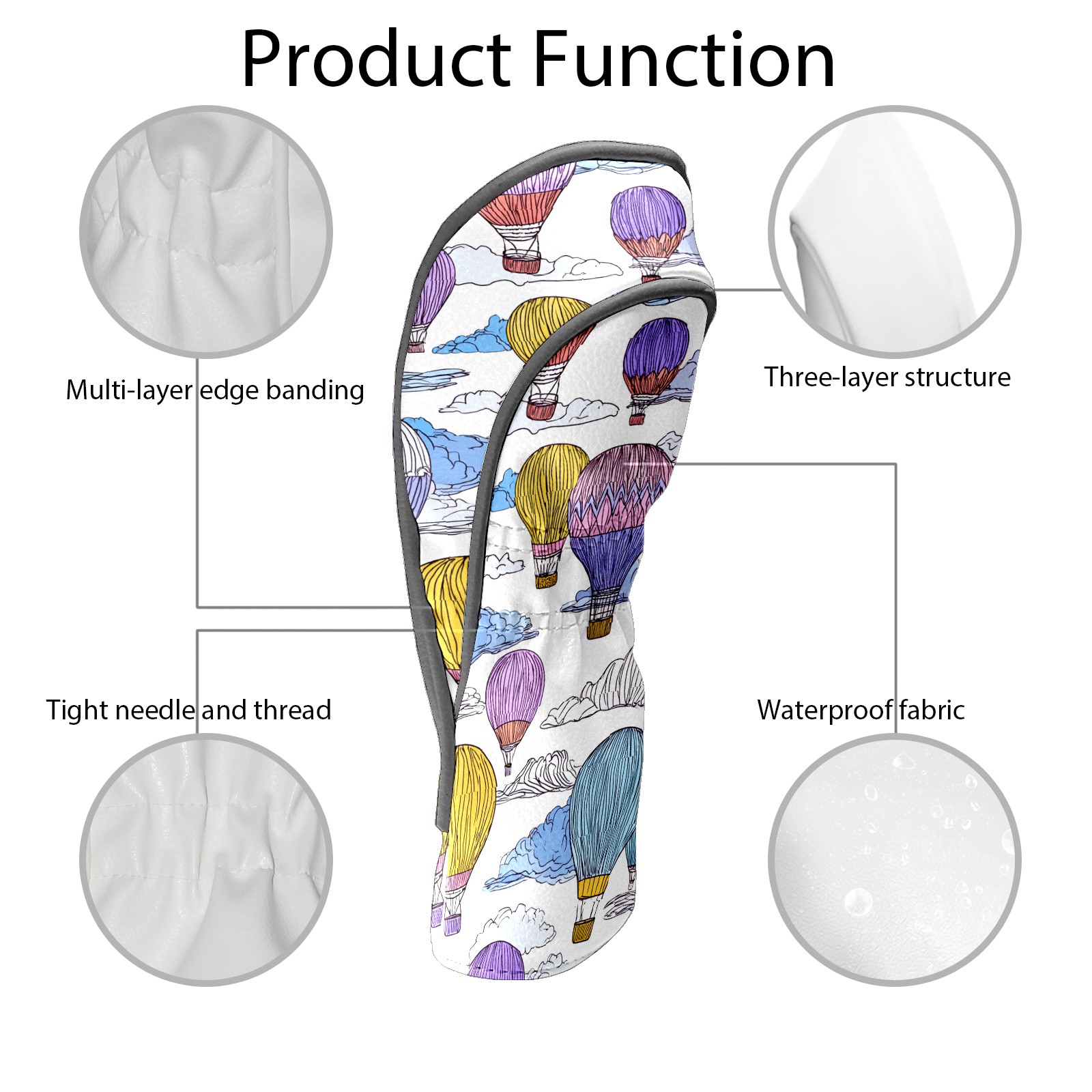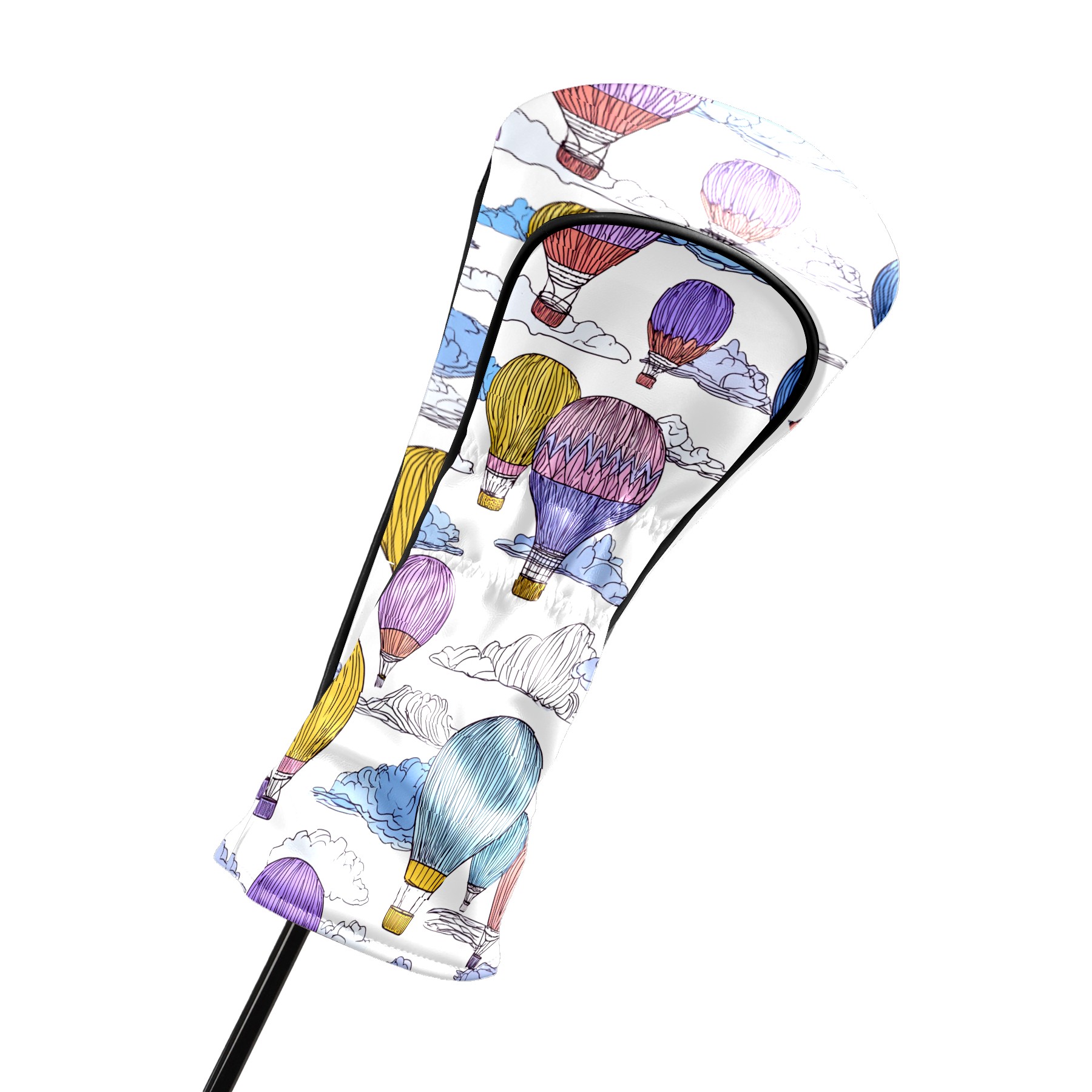 Golf Club Head Covers Colorful Hot Air Balloons Sky Design for Driver & Hybrid, Waterproof PU Leather with Plush Velvet Lining, Scratch Protection & Secure Fit, Ideal Golf Gift for Men Women