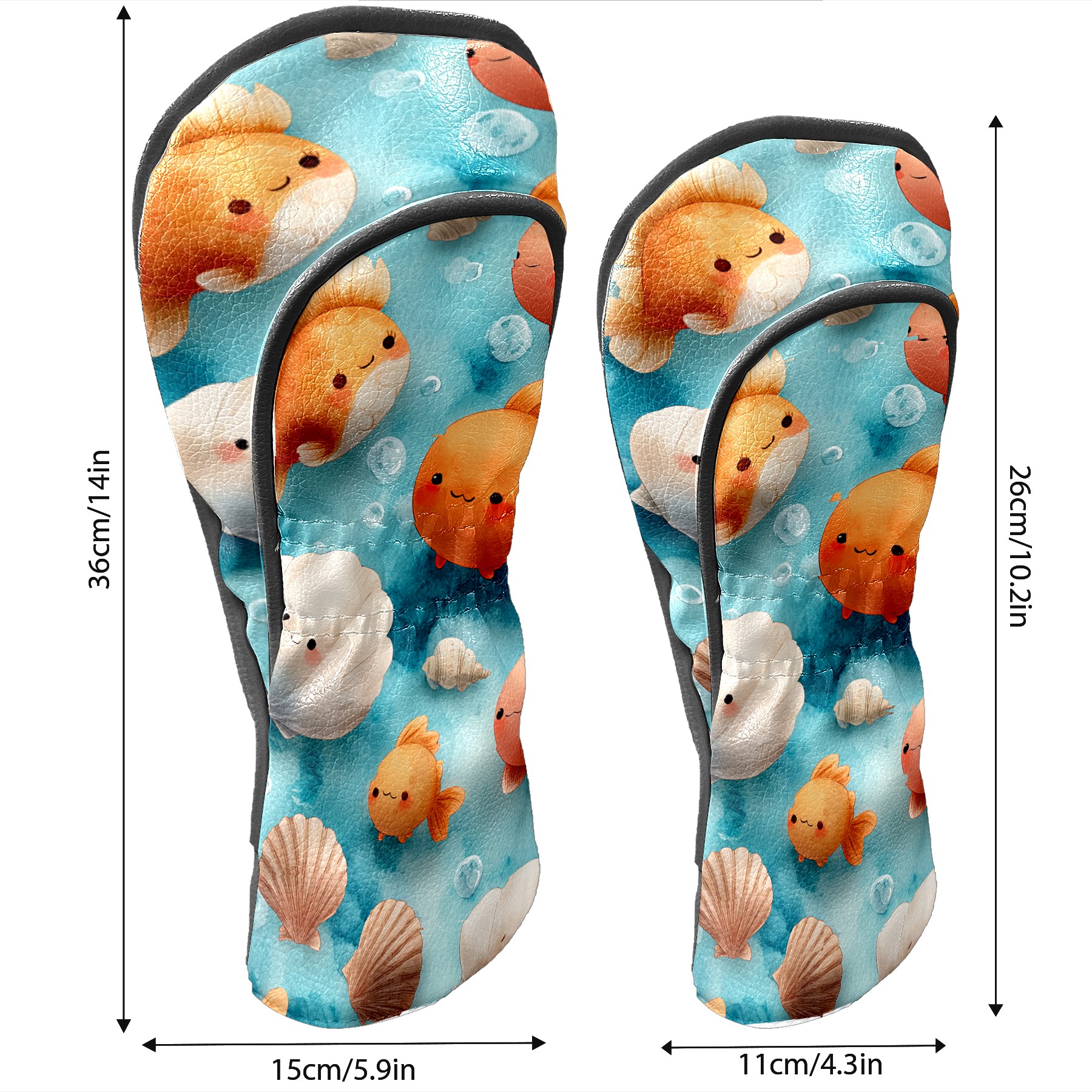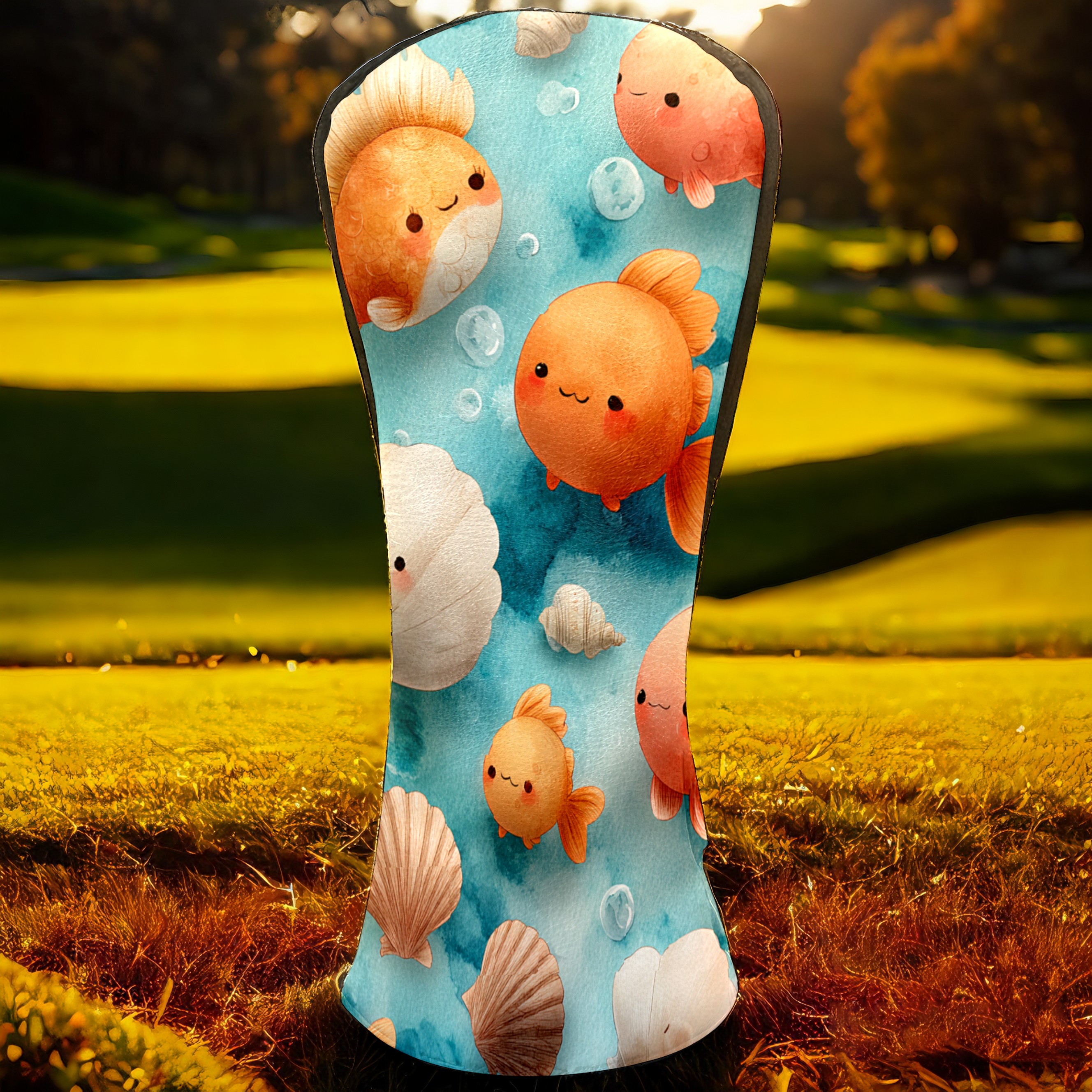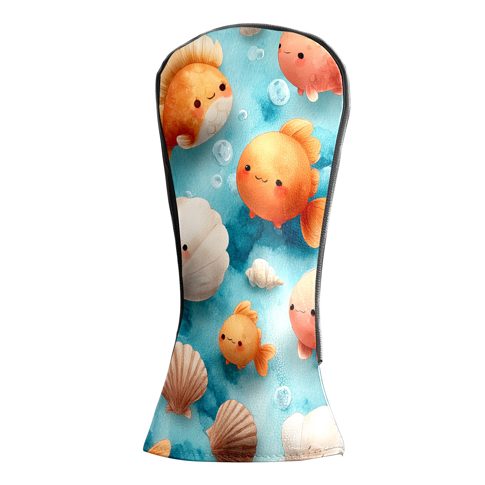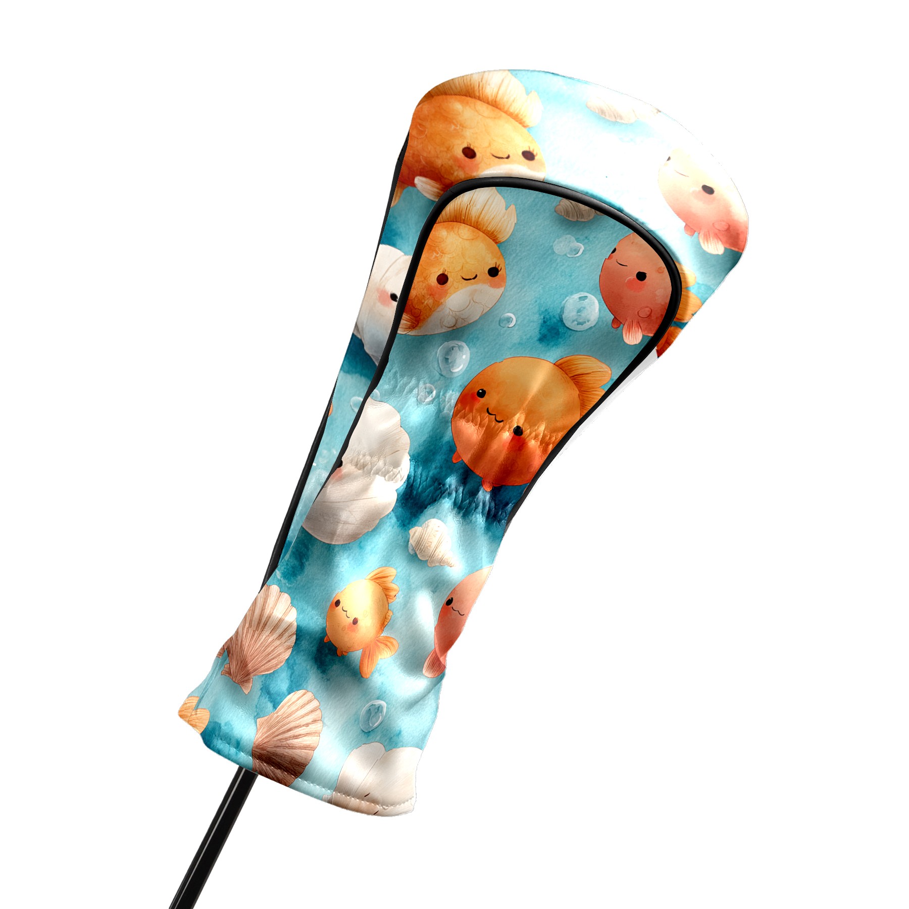 Golf Club Head Covers Blue Background Goldfish Shells Design for Driver & Hybrid, Waterproof PU Leather with Plush Velvet Lining, Scratch Protection & Secure Fit, Ideal Golf Gift for Men Women