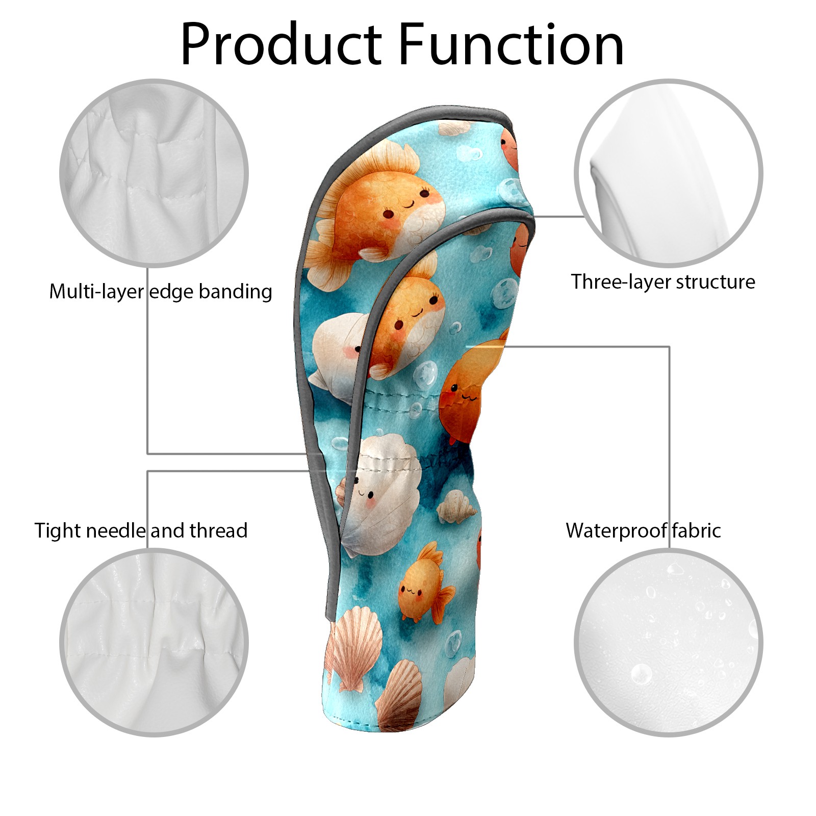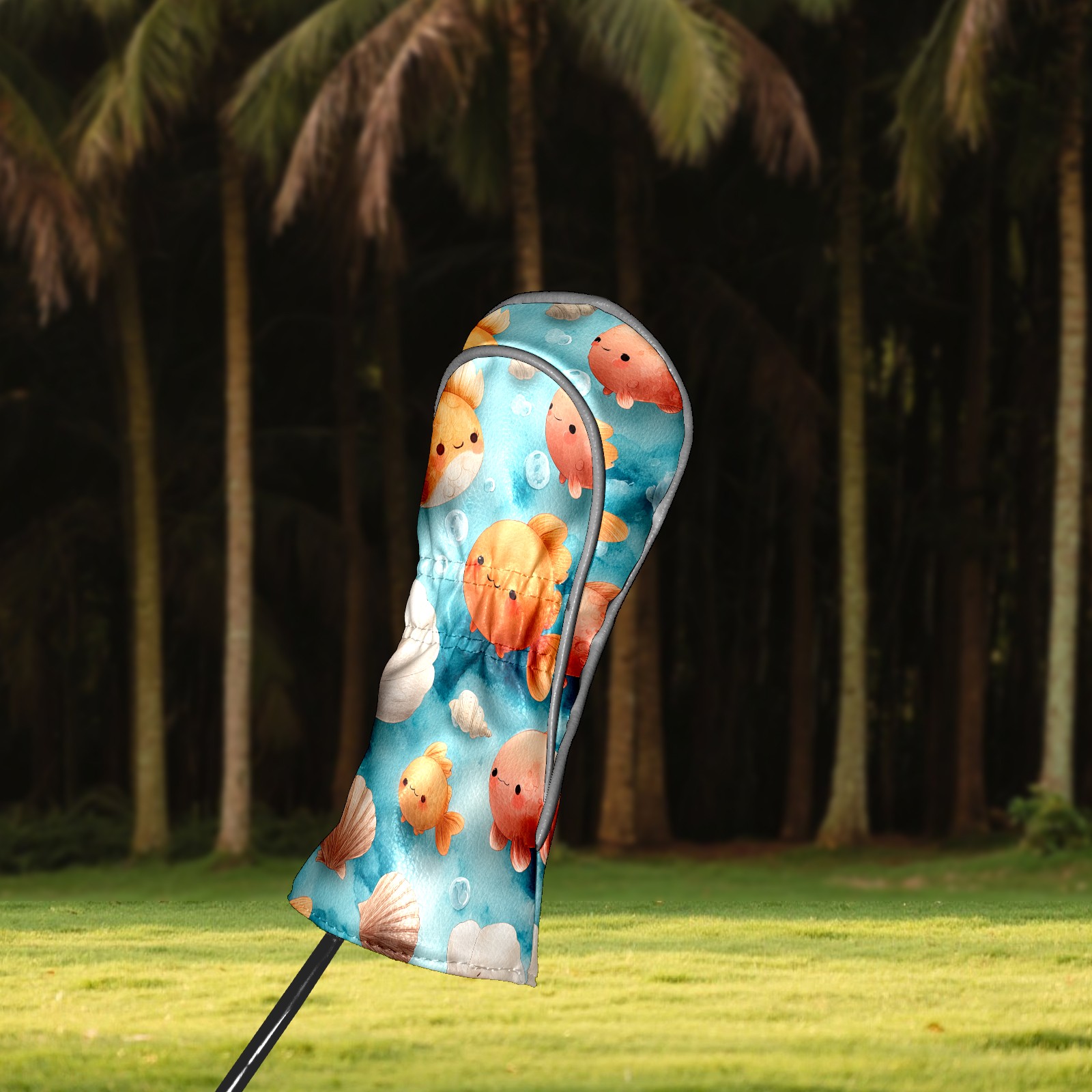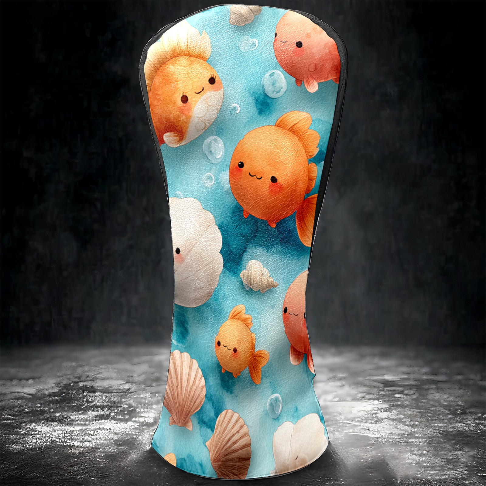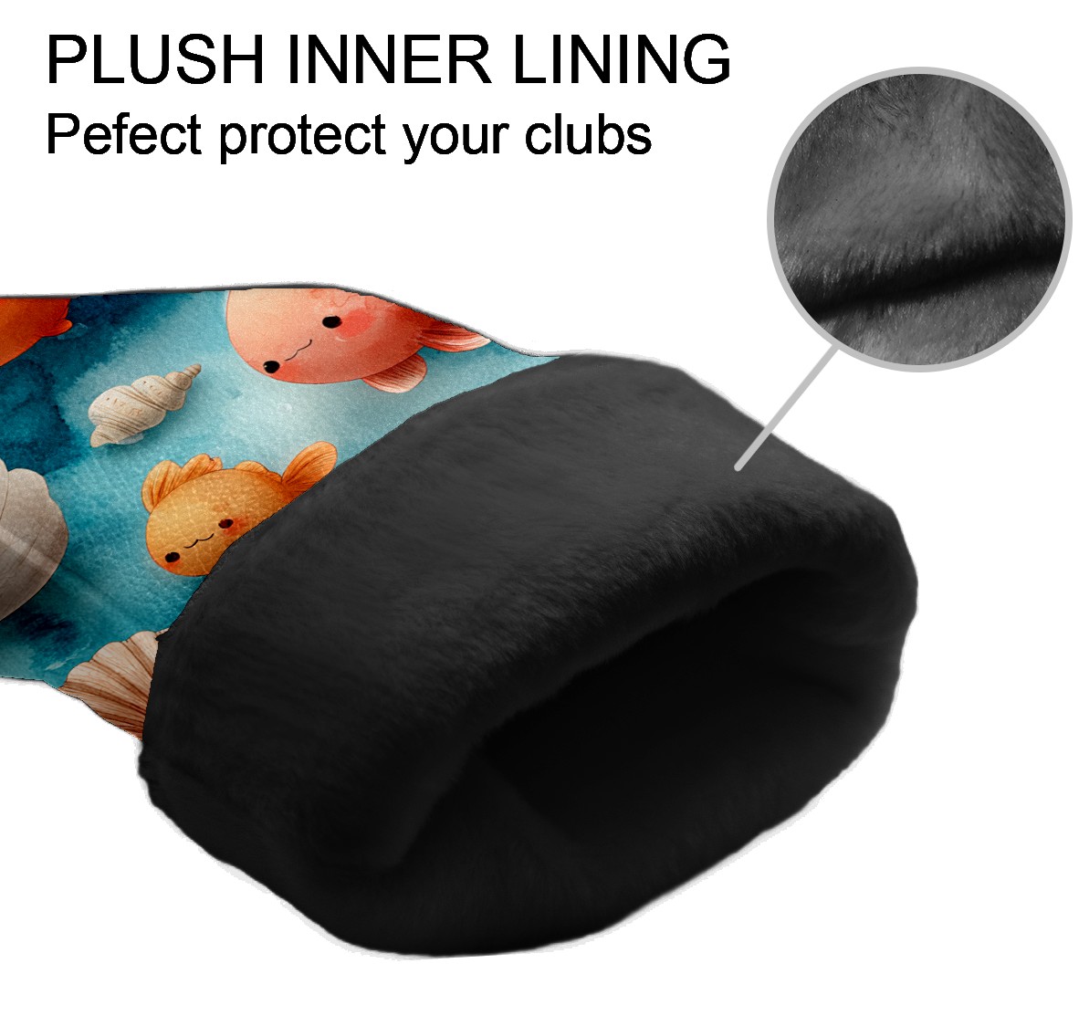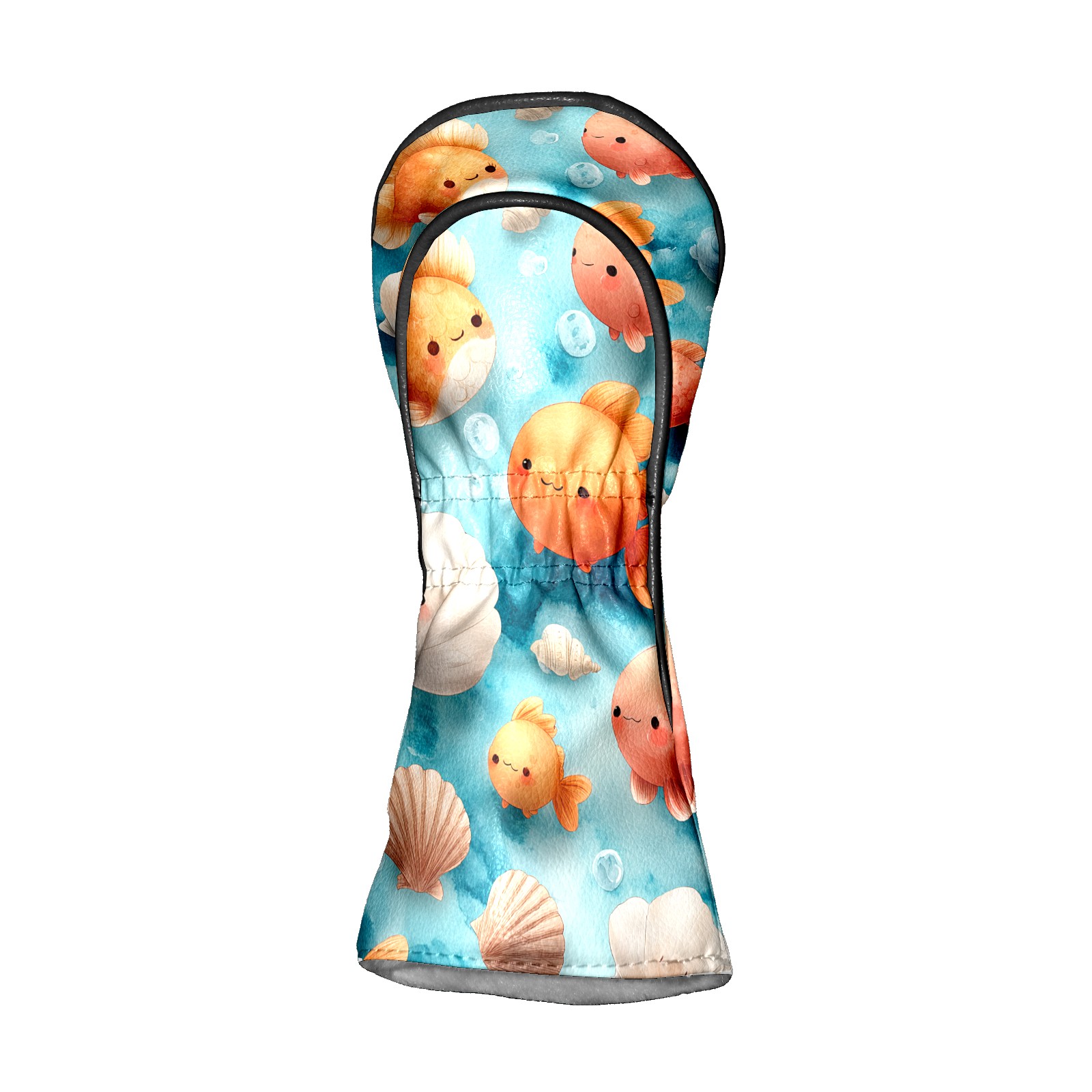 Golf Club Head Covers Blue Background Goldfish Shells Design for Driver & Hybrid, Waterproof PU Leather with Plush Velvet Lining, Scratch Protection & Secure Fit, Ideal Golf Gift for Men Women