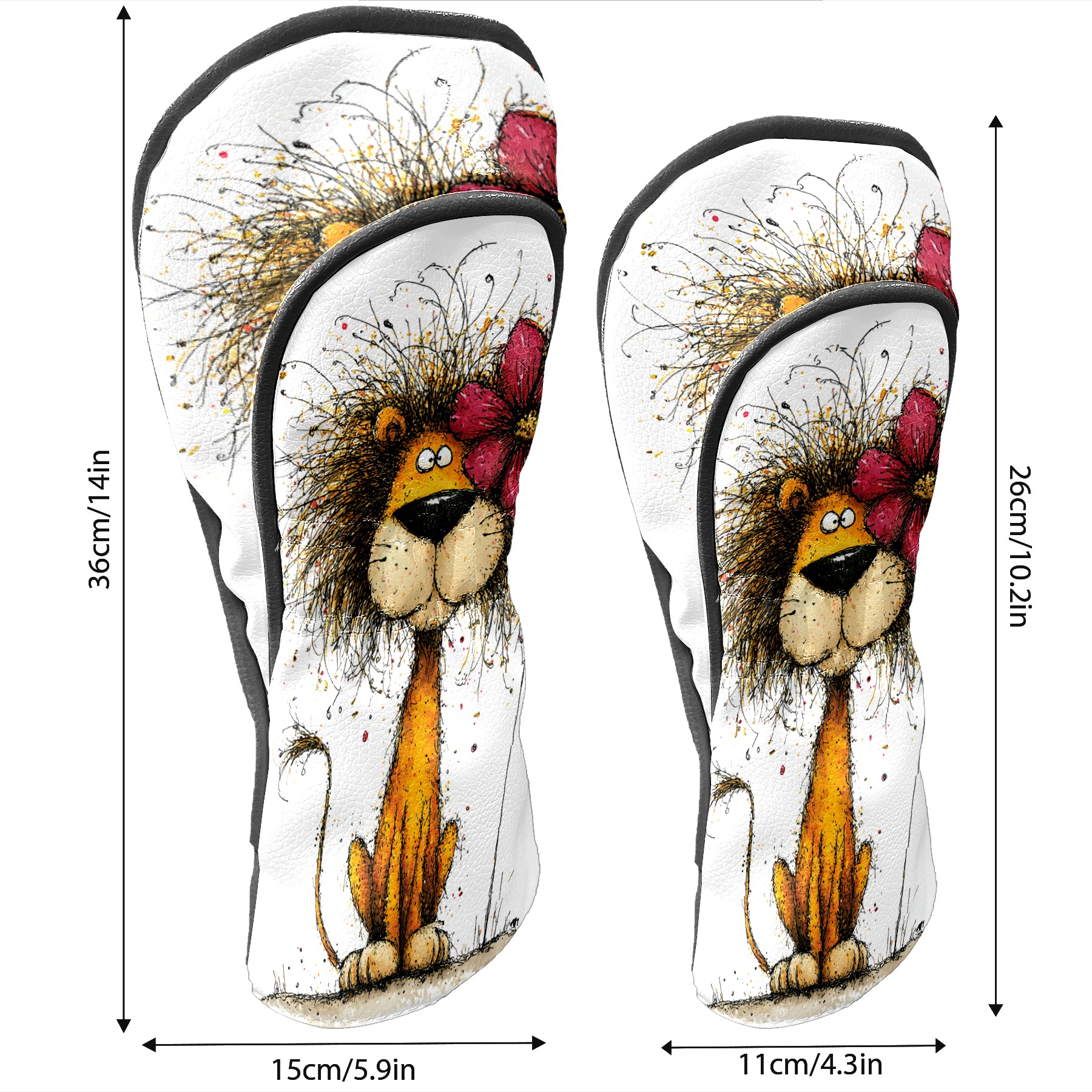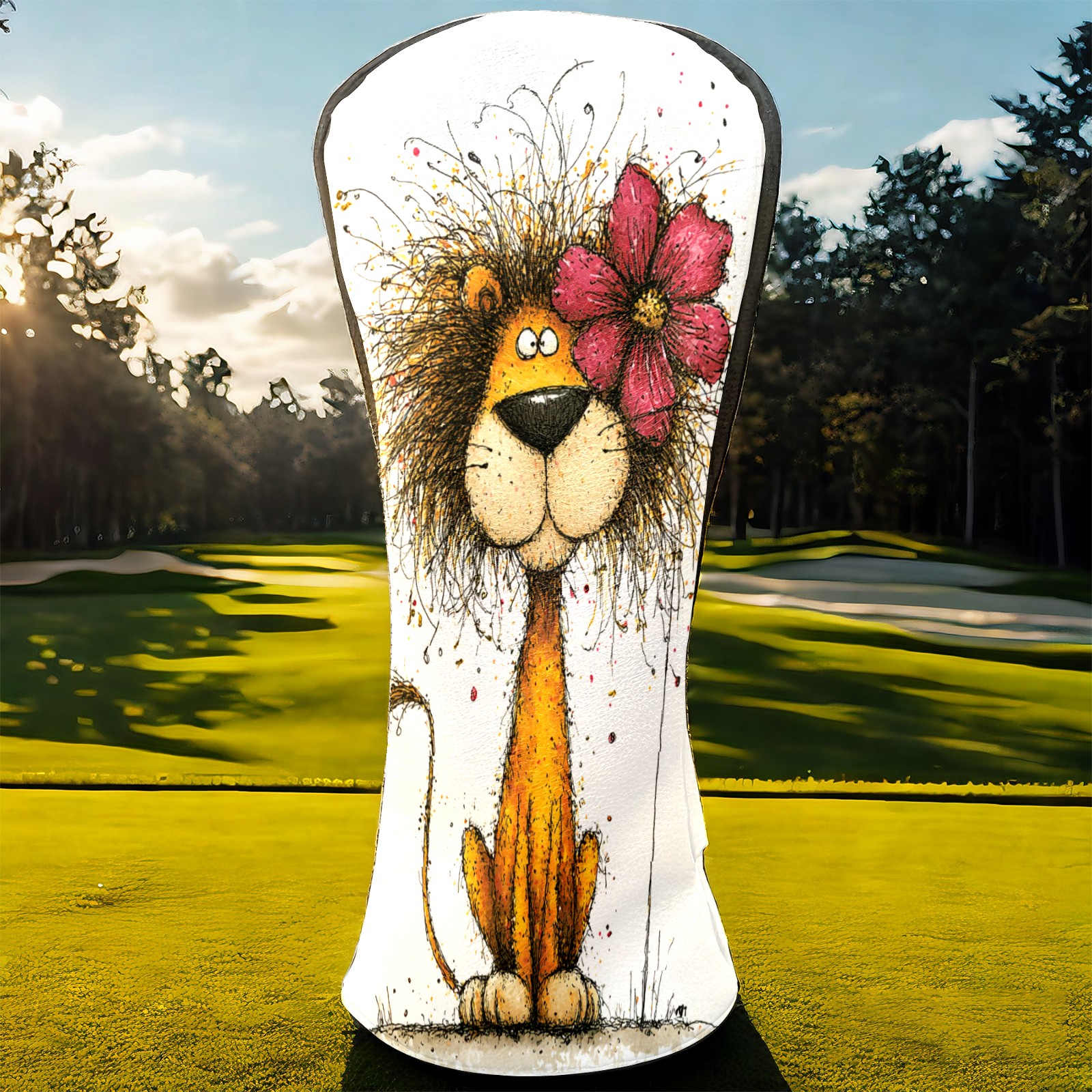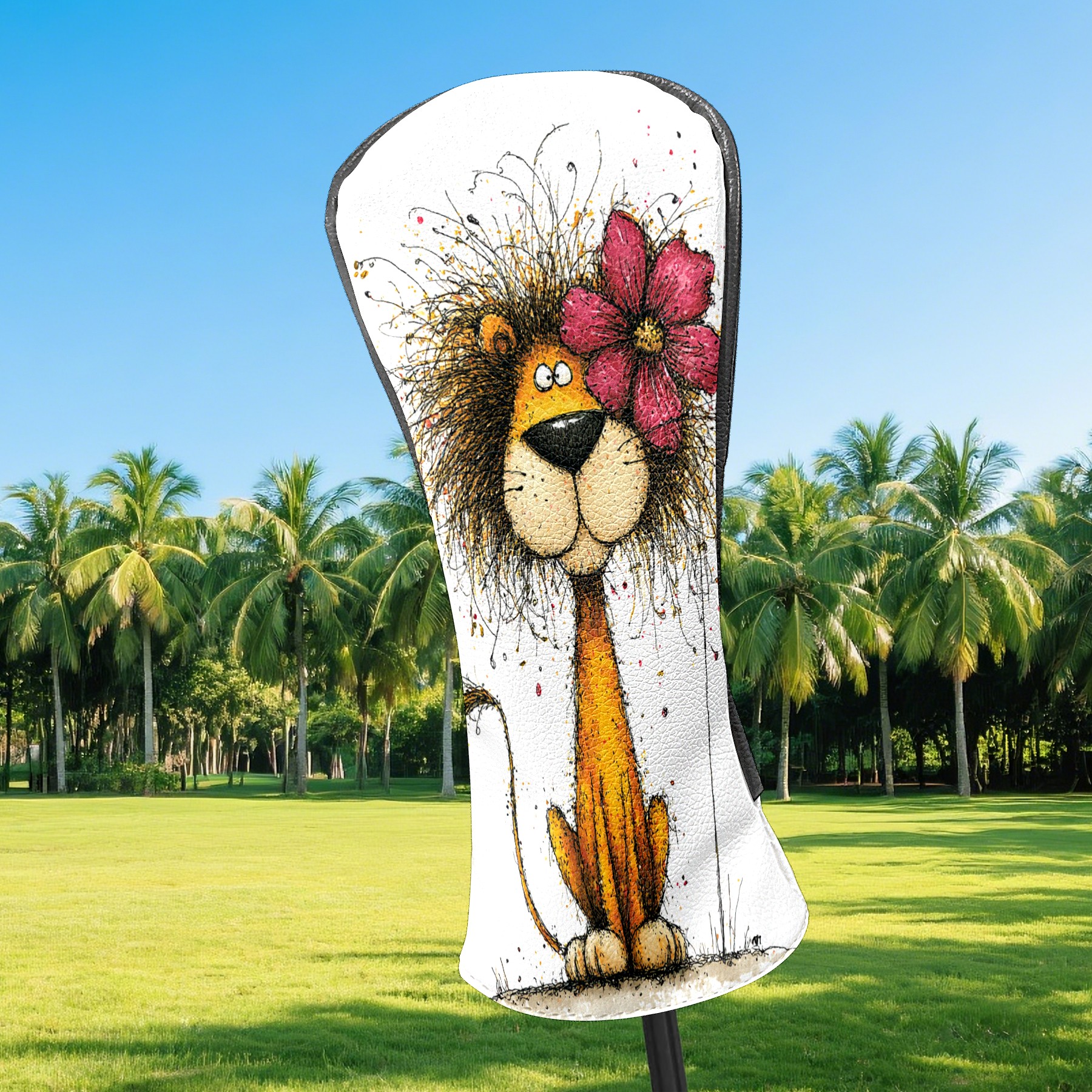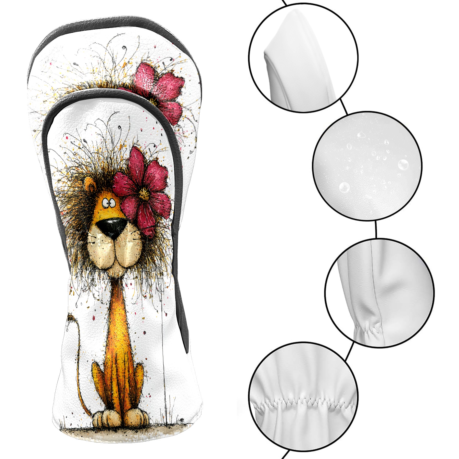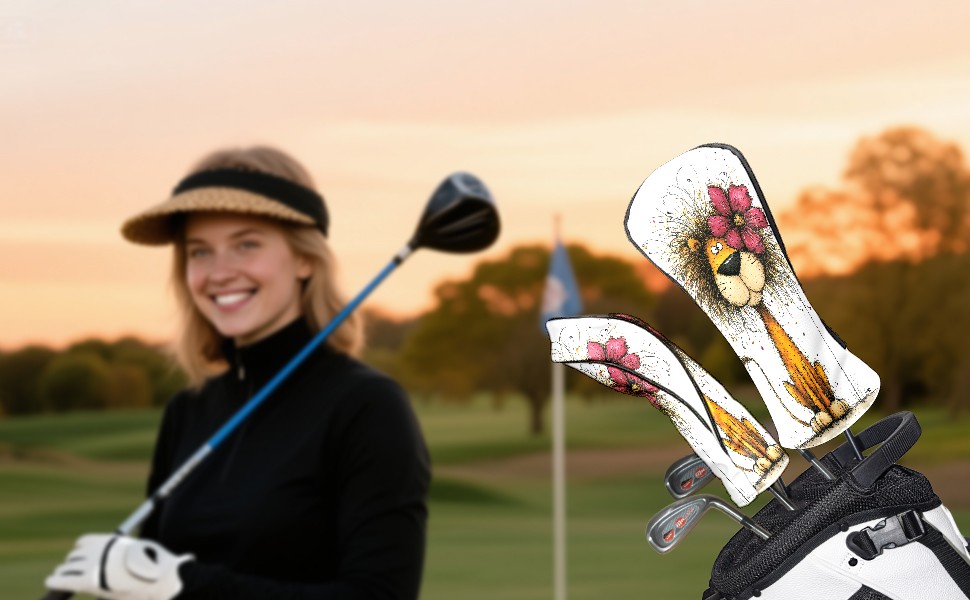 Golf Club Head Covers Floral Lion Art Style Design for Driver & Hybrid, Waterproof PU Leather with Plush Velvet Lining, Scratch Protection & Secure Fit, Ideal Golf Gift for Men Women